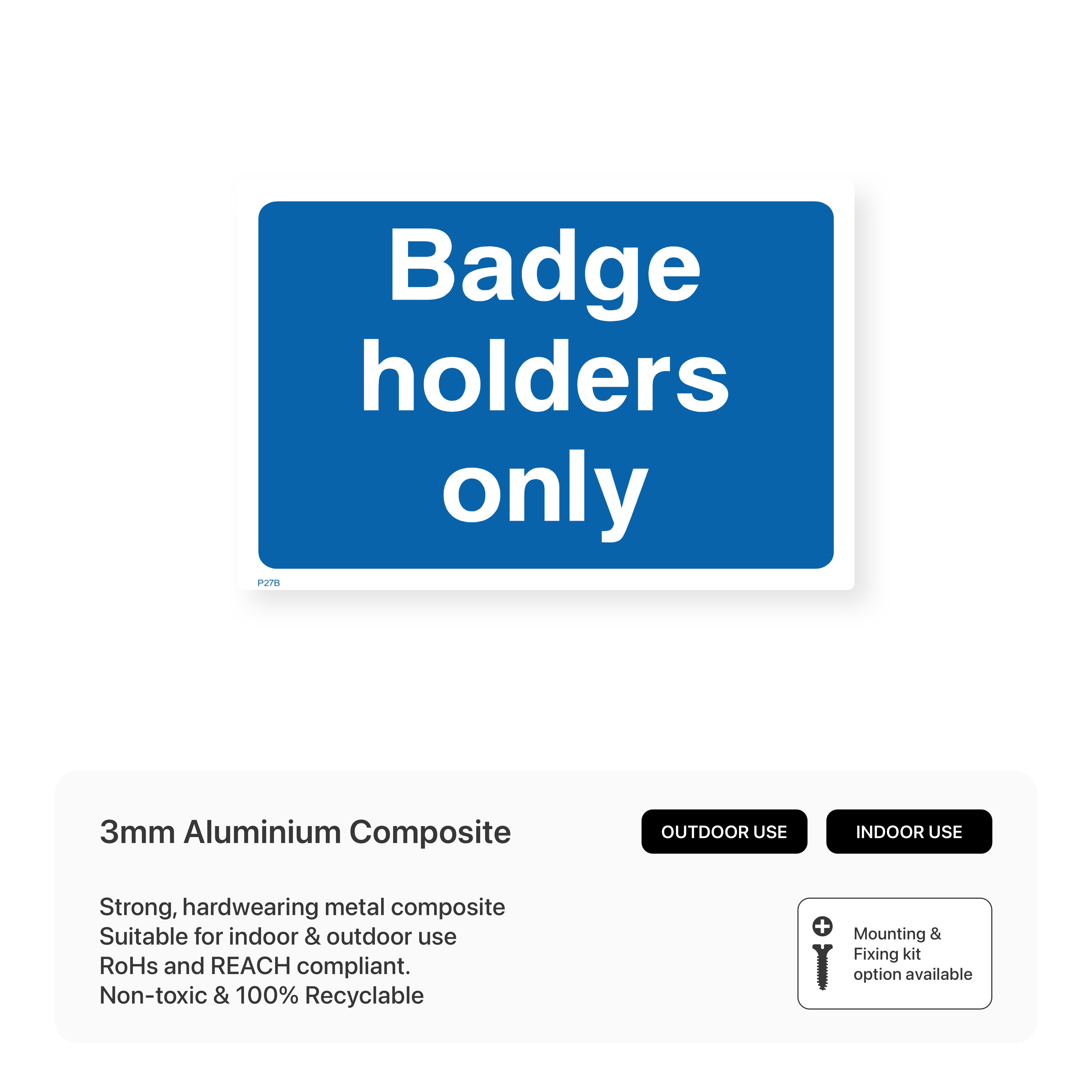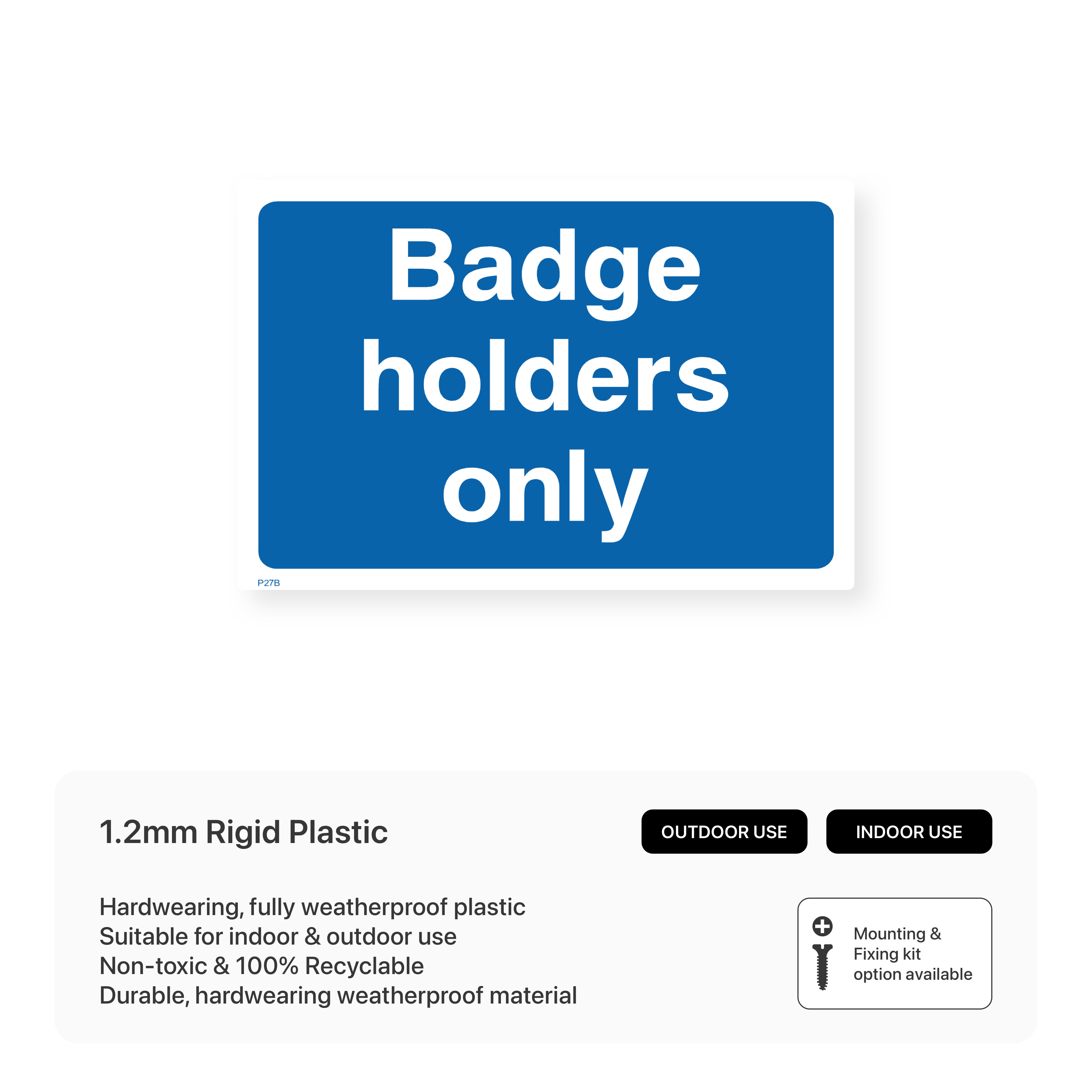 Ensure that only authorised vehicles park in designated areas with our "Badge Holders Only" sign. This sign clearly communicates that parking is restricted to those with valid badges, maintaining order and security in your car park. Choose from various sizes and materials to suit your specific needs and enforce parking restrictions effectively.