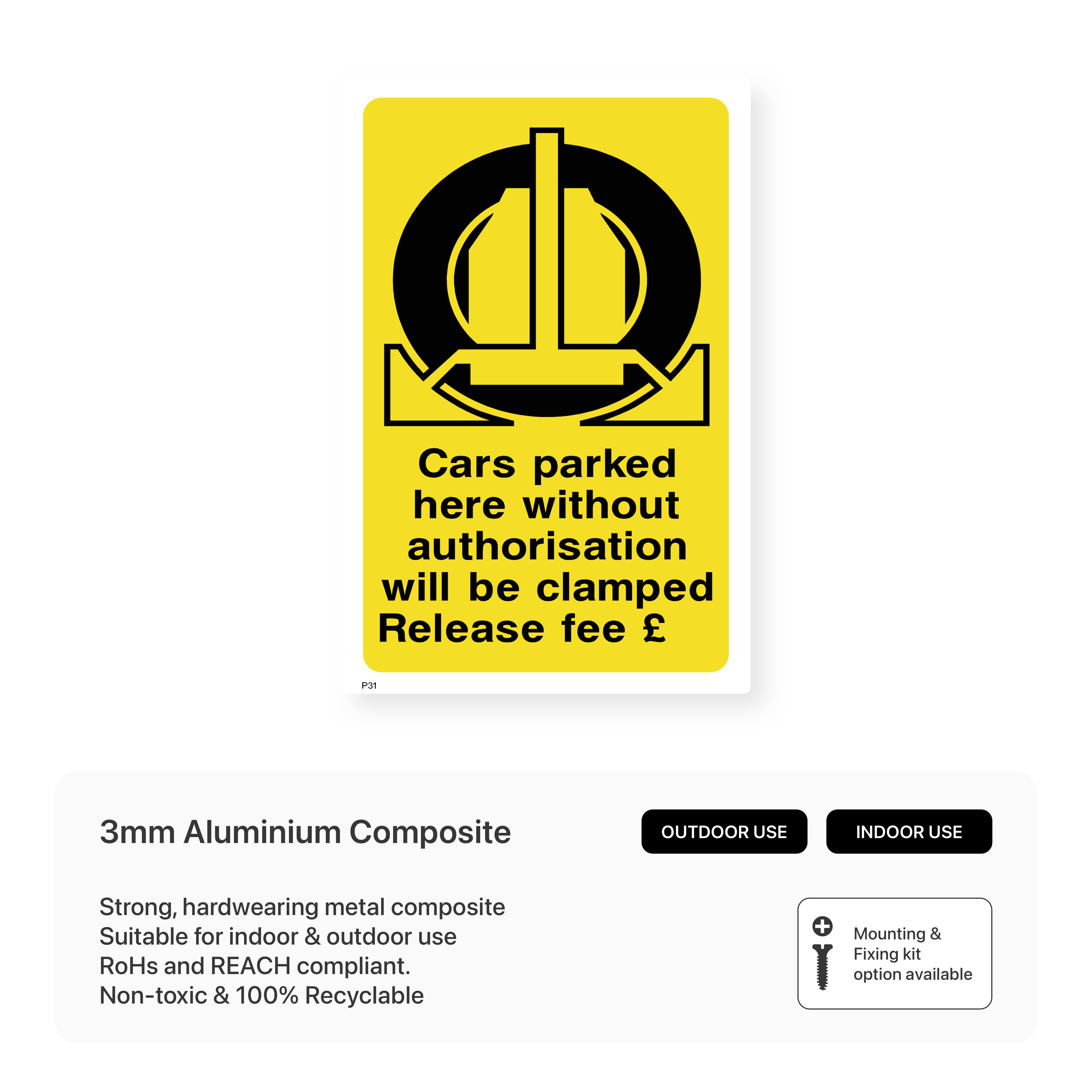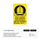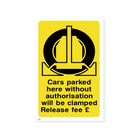 Effectively deter unauthorised parking with our "Cars Parked Here Without Authorisation Will Be Clamped - Release Fee £..." portrait sign. This sign clearly displays the consequences of unauthorised parking, including clamping and the associated release fee. Ensure proper parking management and maintain order in your car park with this highly visible and informative sign.