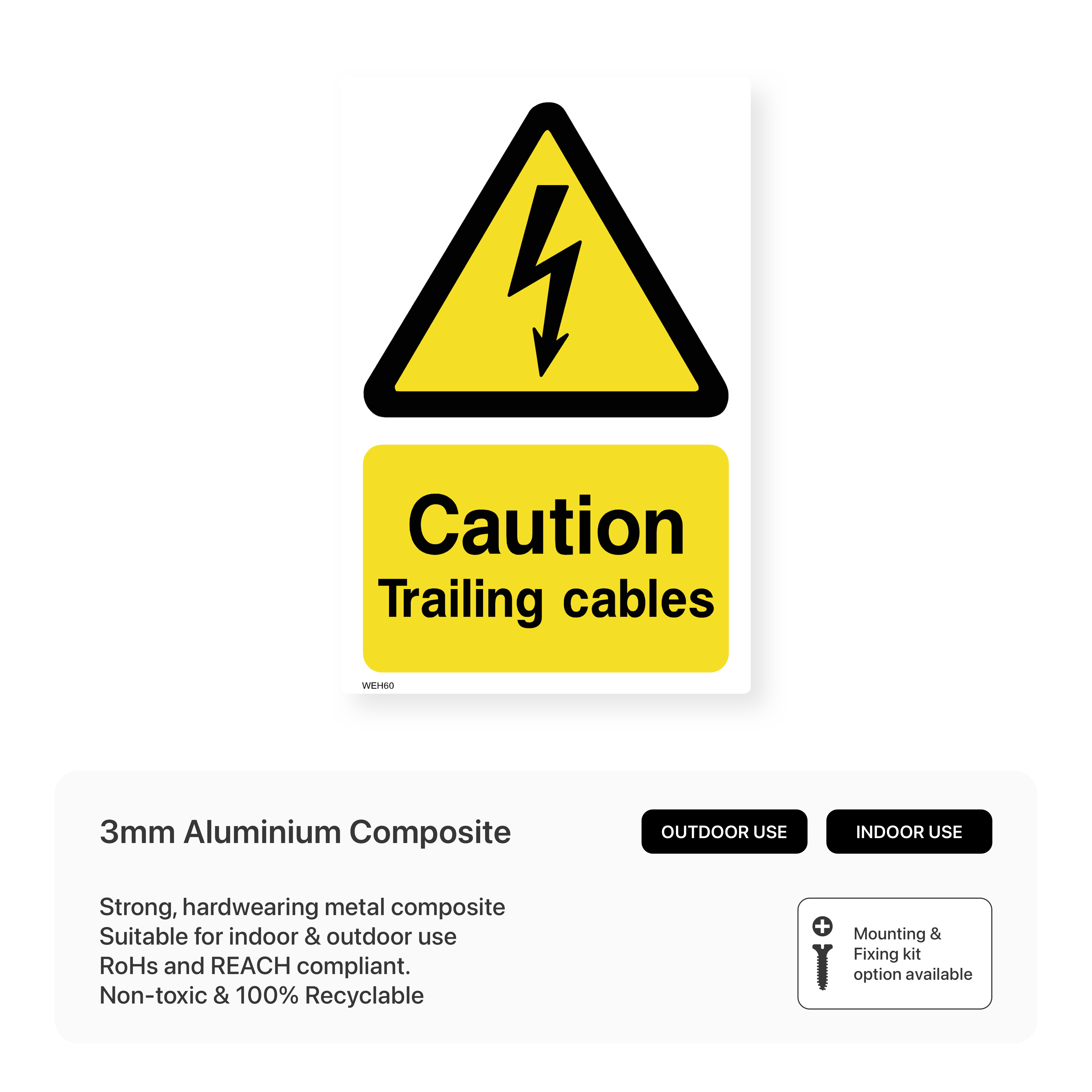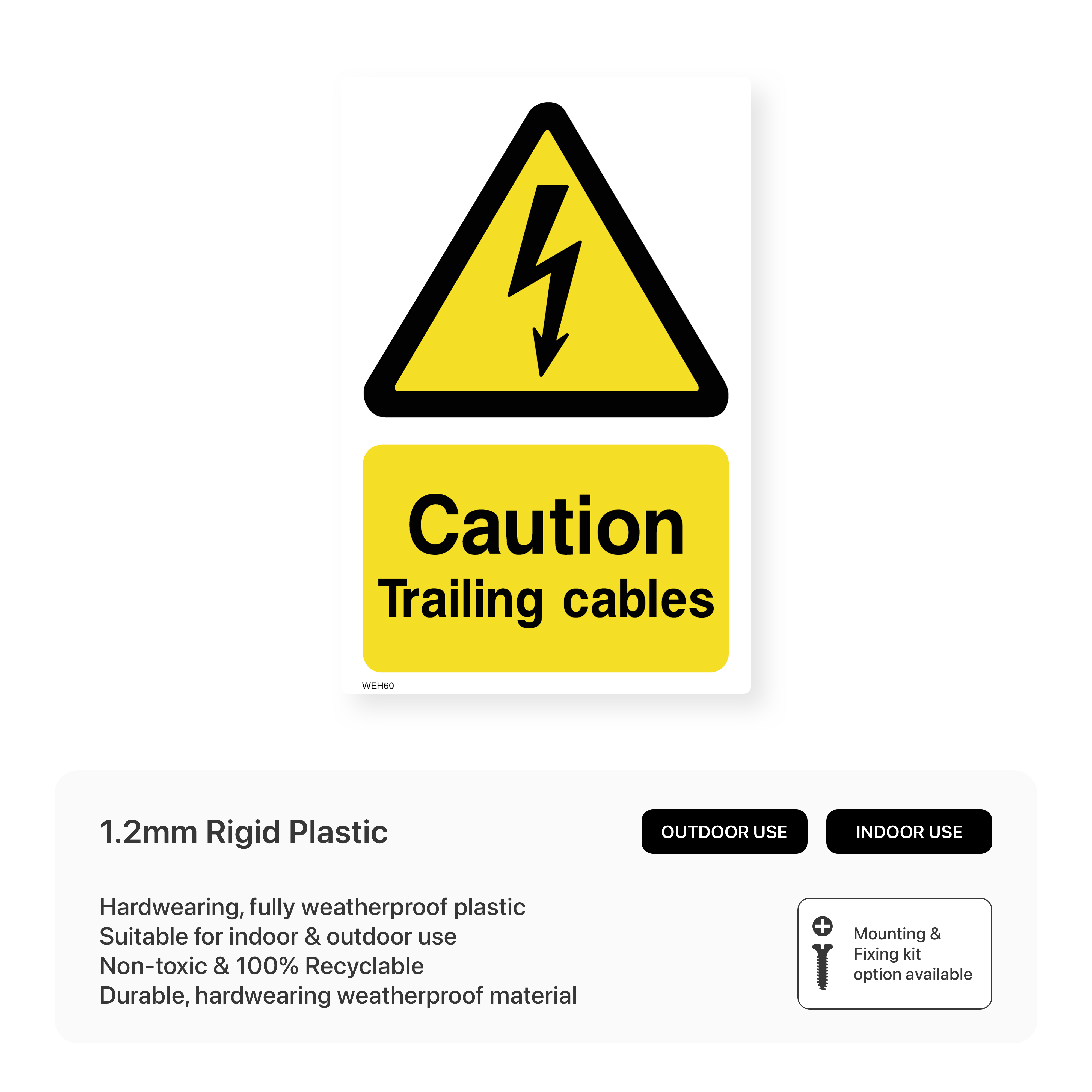 Remind employees and visitors to watch out for trailing cables with this portrait-oriented caution sign. This sign helps to prevent tripping hazards and accidents in workplaces where cables are present.