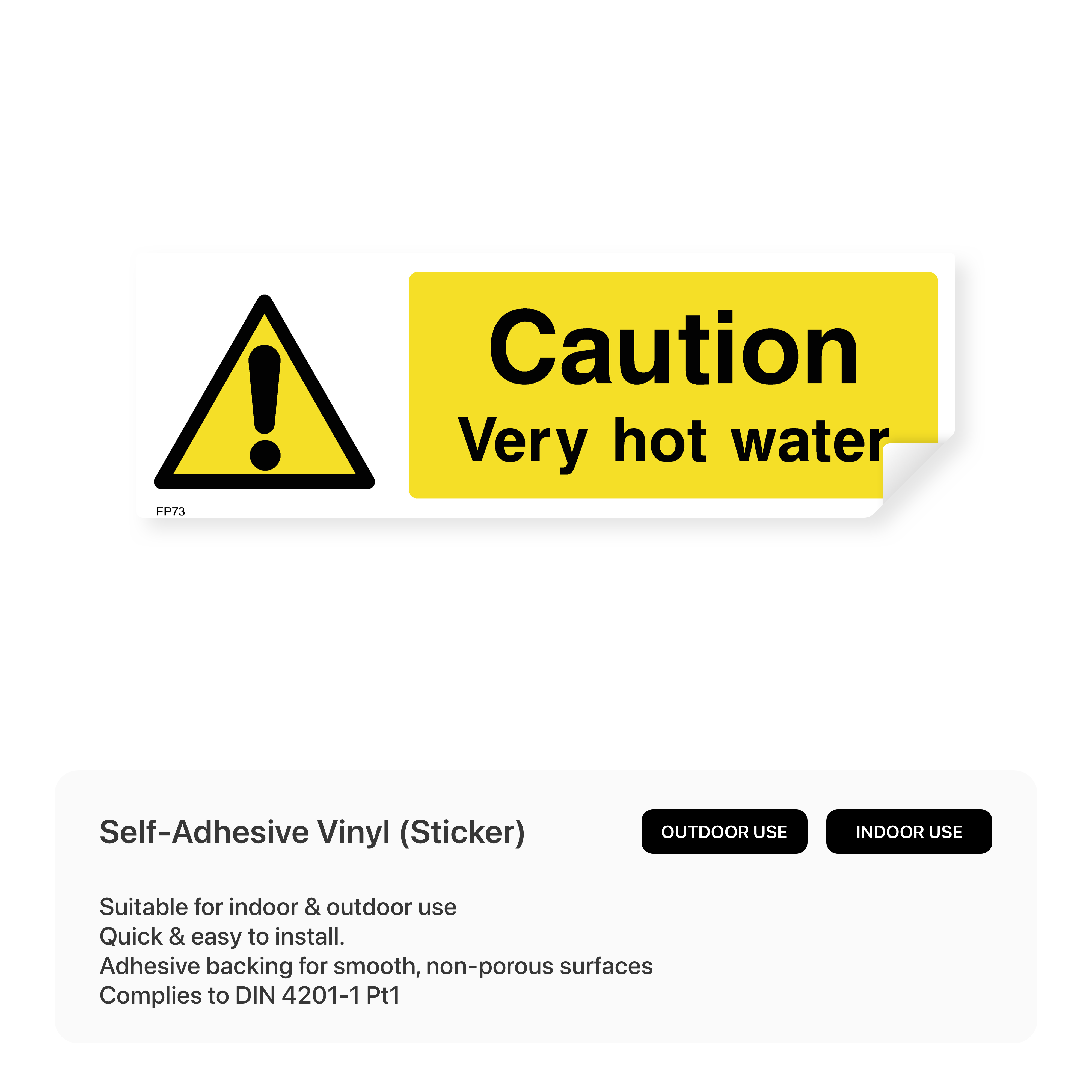 Prevent burns and accidents with our "Caution - Very hot water" sign. This sign clearly warns individuals of very hot water, promoting caution and preventing injuries in the kitchen or food preparation area.
