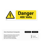 Communicate the presence of 400 volts with this clear warning sign. Help to prevent electrical accidents and promote a safe working environment. Choose from a variety of sizes and materials to suit your specific needs.
