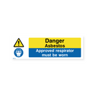 Protect workers from asbestos exposure with this critical danger sign. It clearly warns of the presence of asbestos and mandates the use of approved respirators to prevent inhalation of hazardous fibres. Ideal for construction sites, renovation projects, and any environment where asbestos may be present.