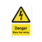 Warn of the presence of bare live wires with this portrait-oriented sign. This highly visible warning helps to prevent electrical shock and injuries in workplaces where electrical work is being done.