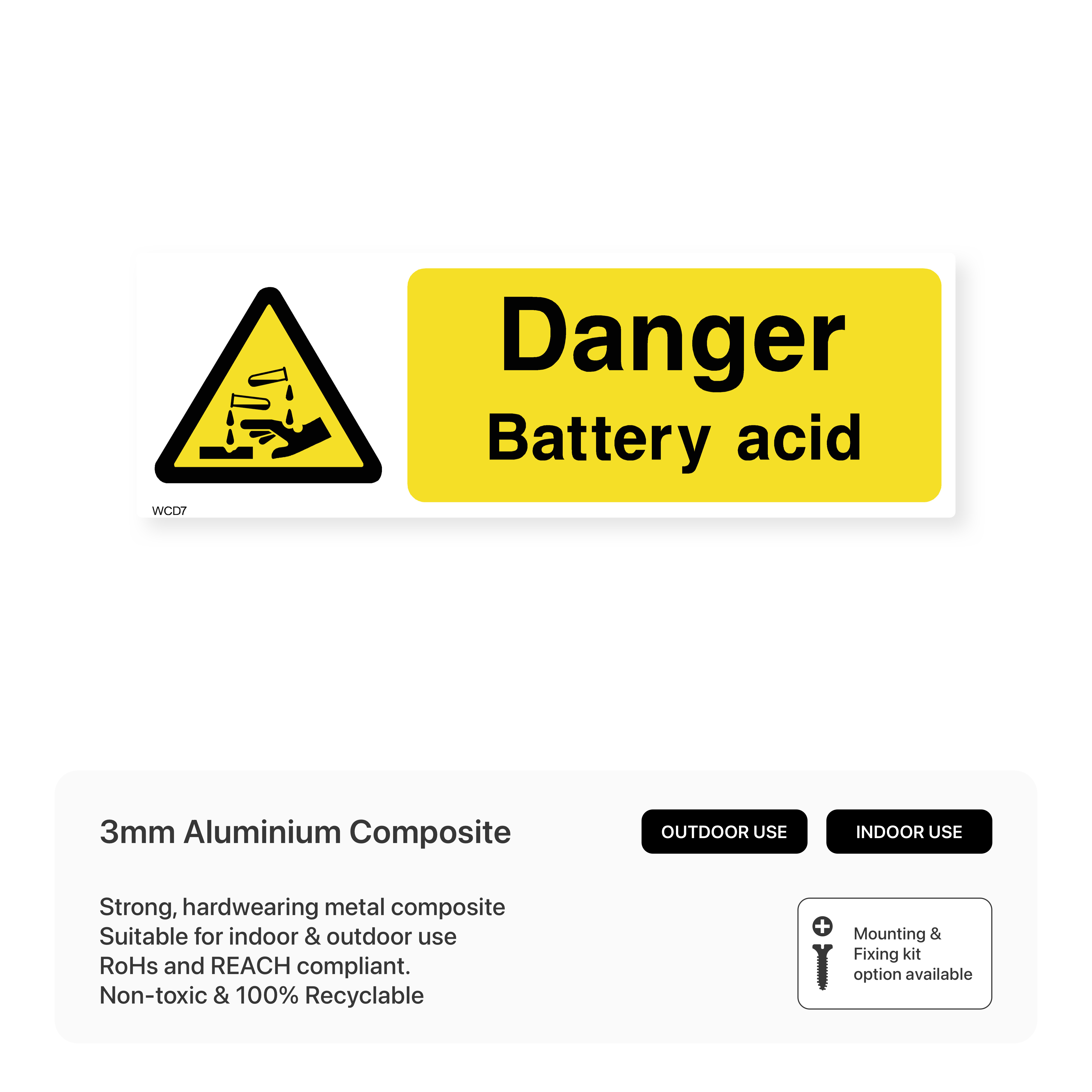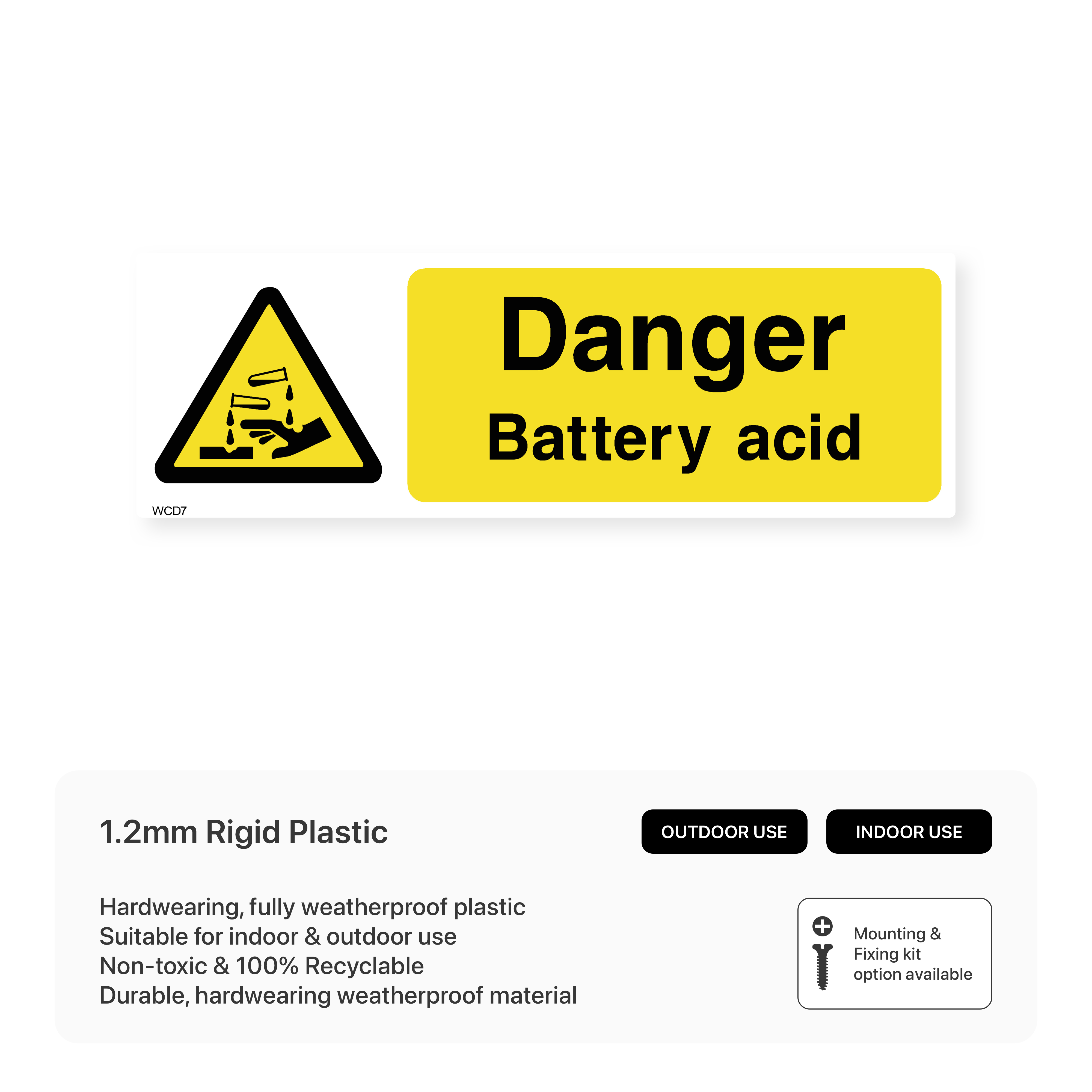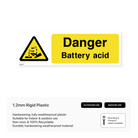 Warn of the potential dangers of battery acid with this clear and visible sign. Help to prevent accidents and injuries in workplaces where batteries are handled or stored.