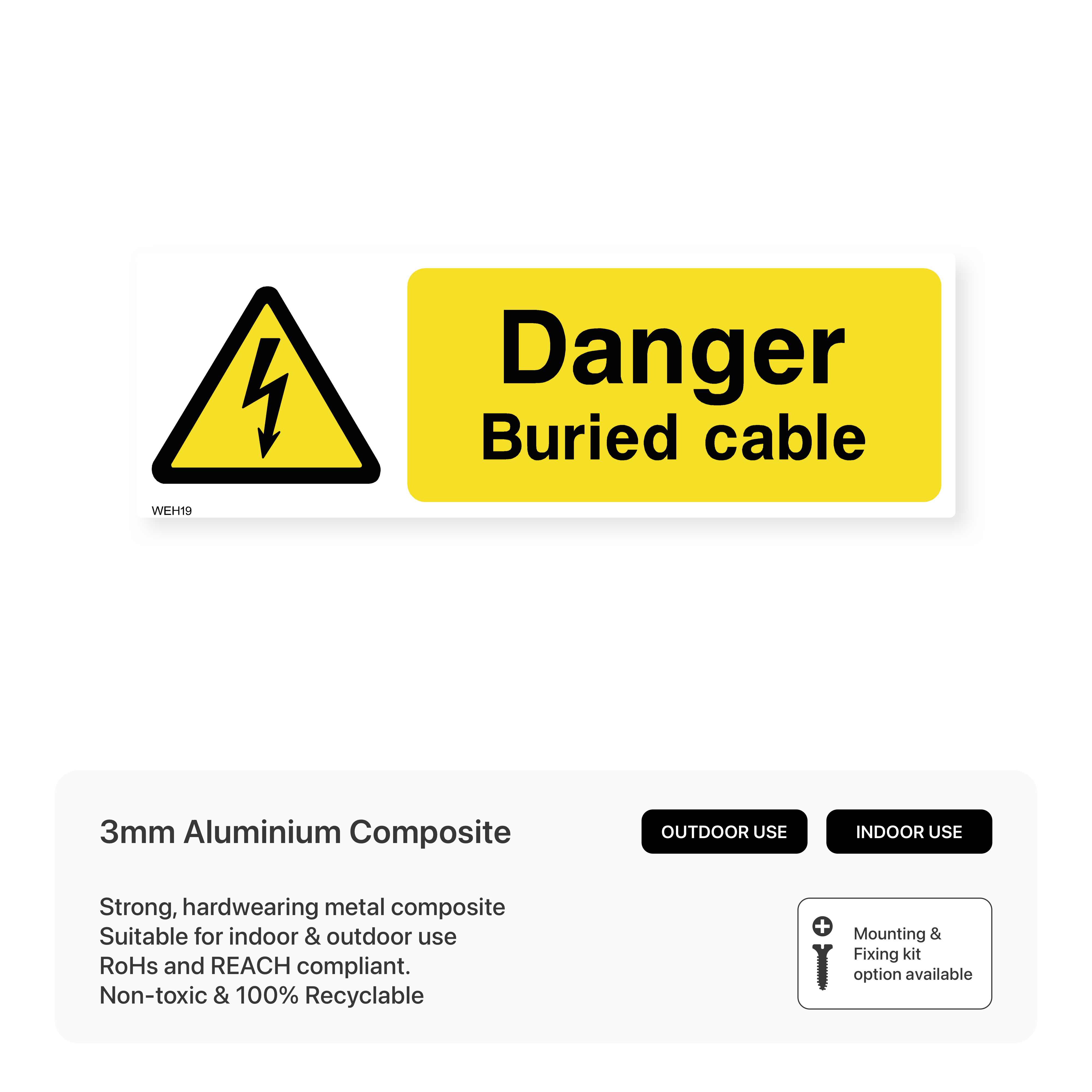 Alert workers and the public to the presence of buried electrical cables with this sign. This sign helps to prevent accidental damage and ensure the safety of everyone in the area.