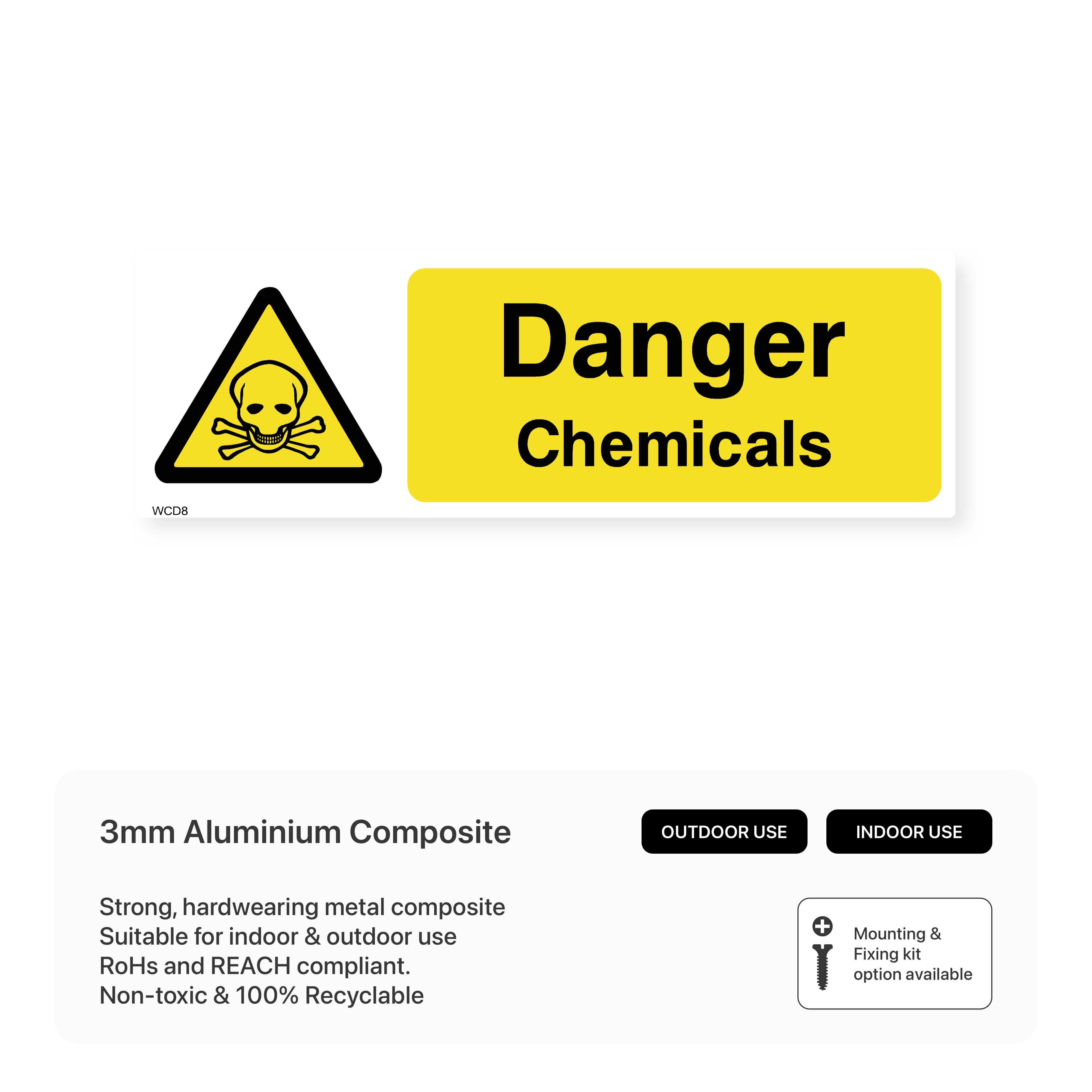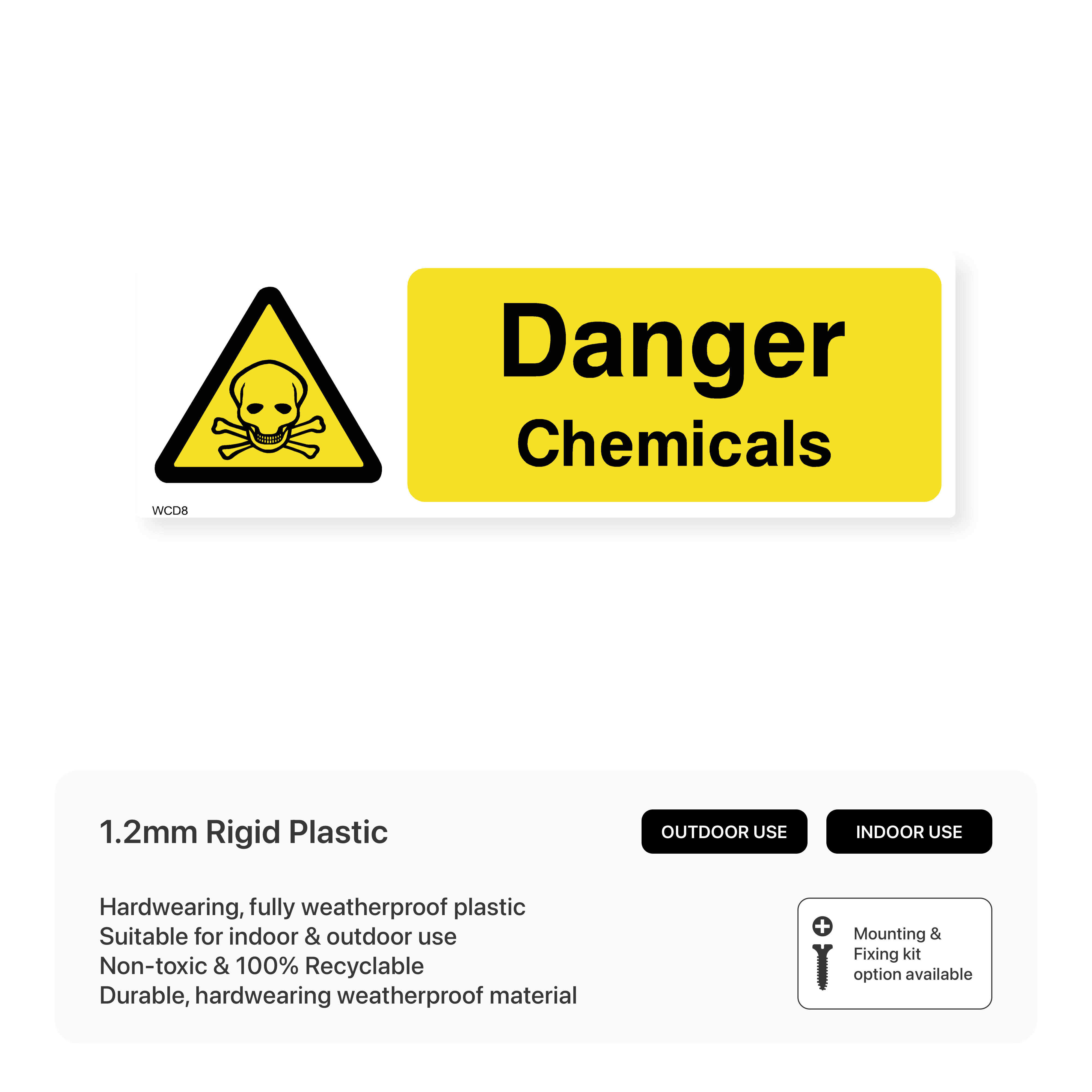 Clearly communicate the presence of chemicals with this warning sign. This sign helps to prevent accidents and injuries in workplaces where chemicals are handled or stored.