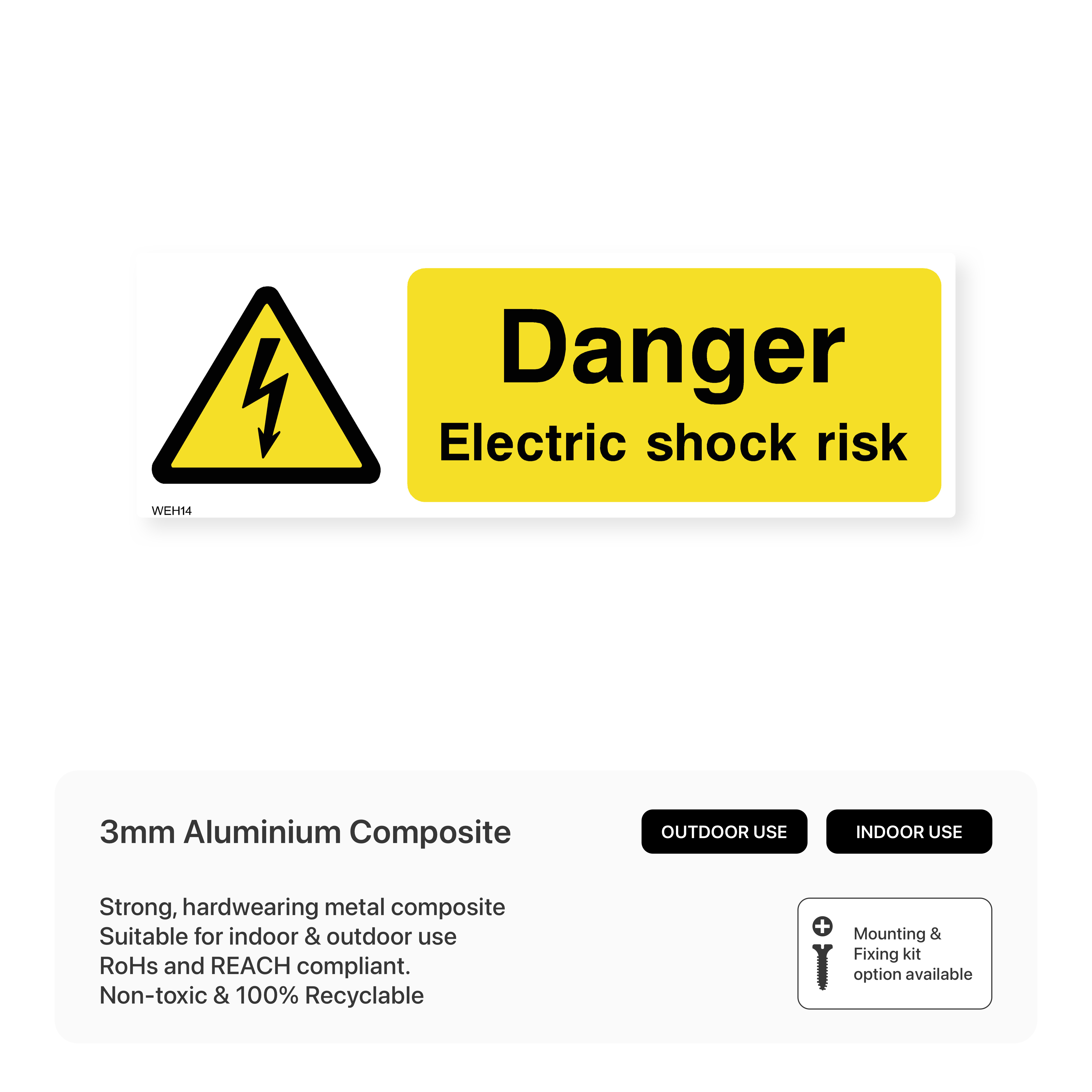 This sign warns of the risk of electric shock, helping to prevent accidents and injuries. It is suitable for use in a variety of workplaces where electrical hazards are present.