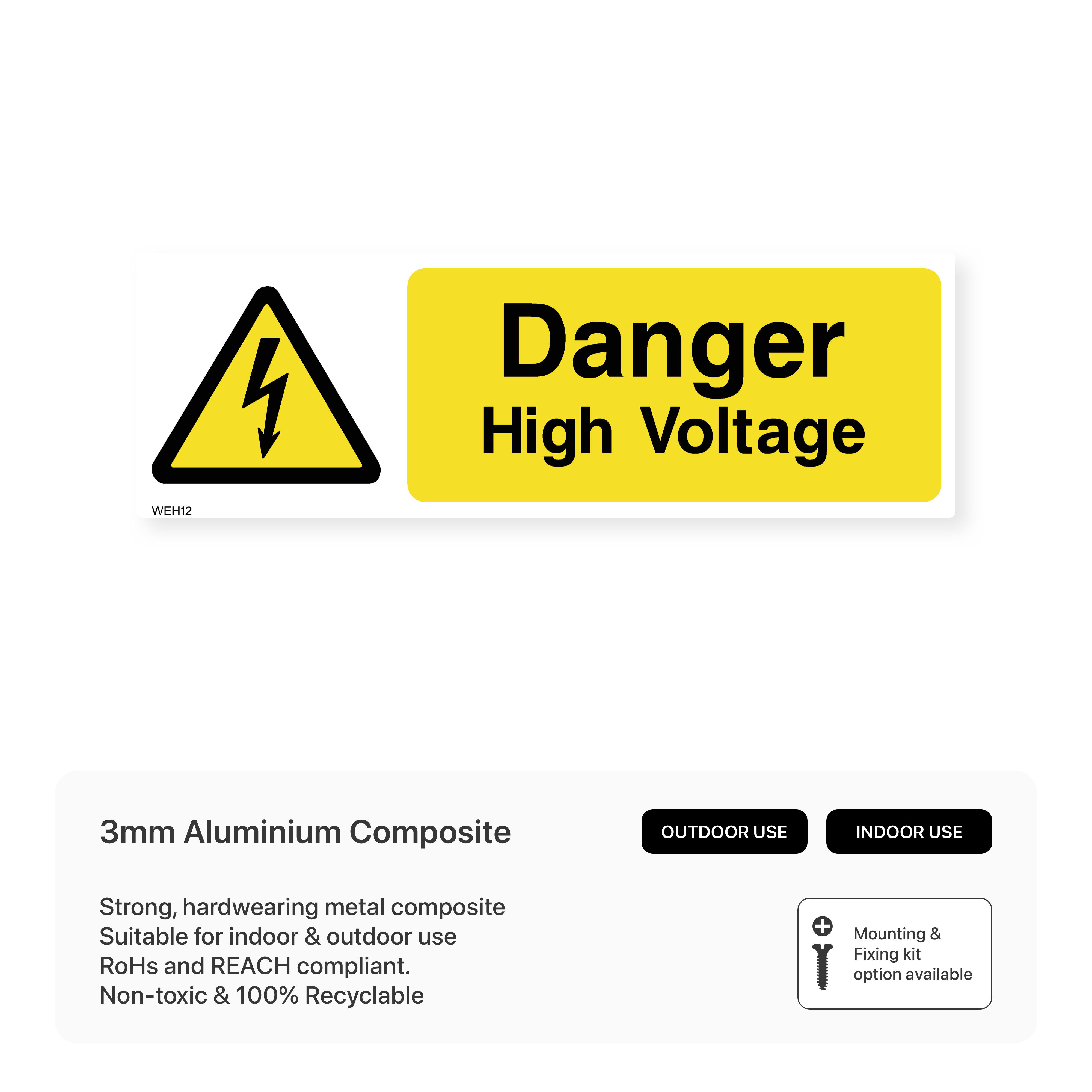 Clearly communicate the presence of high voltage with this sign. This warning helps to prevent electrical accidents and injuries in workplaces where high voltage is present. Available in various sizes and materials.