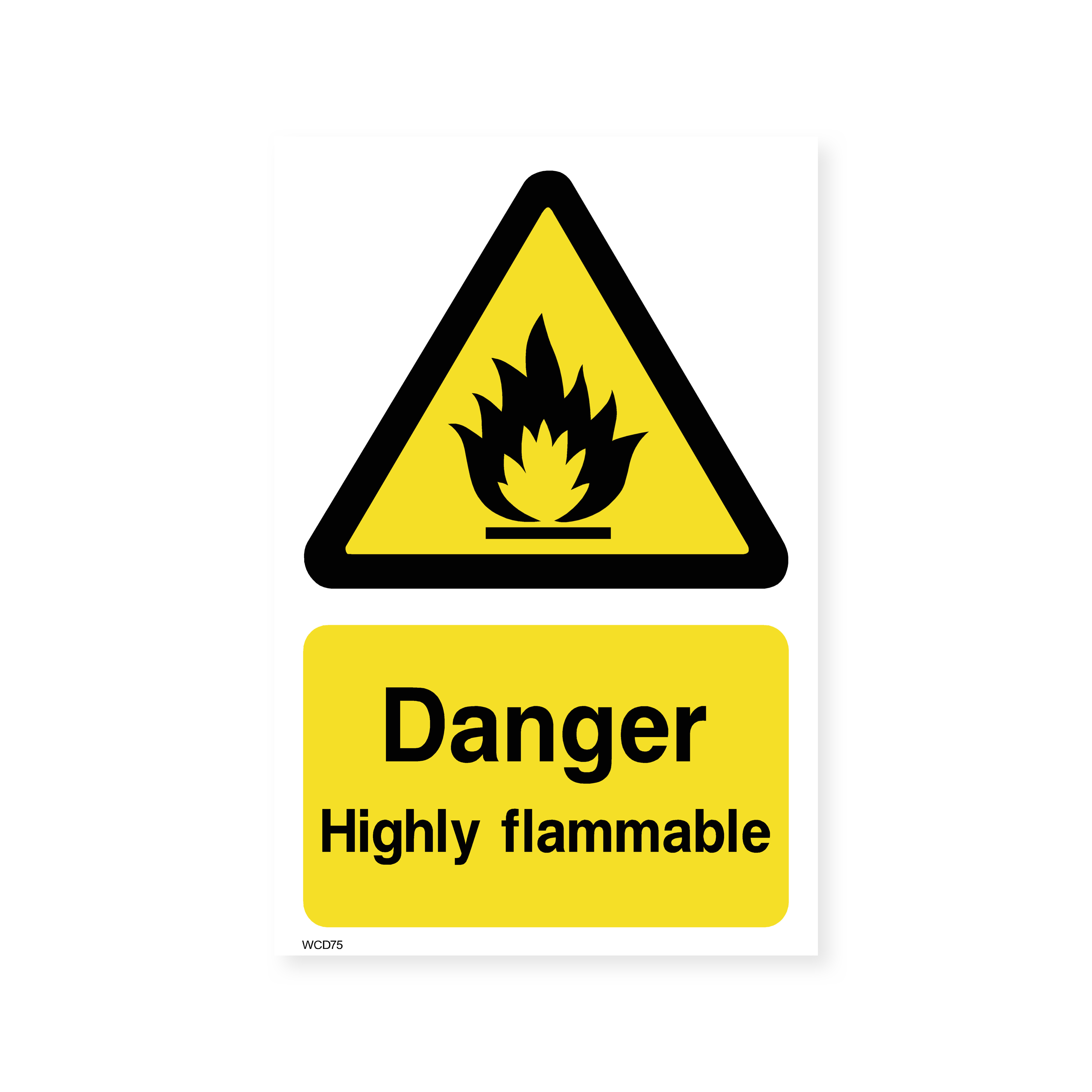 Clearly communicate the risk of fire with this portrait-oriented sign, warning of the presence of highly flammable materials. This sign helps to prevent accidents and injuries in workplaces where flammable materials are handled or stored.