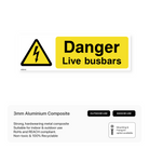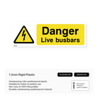 This sign warns of the presence of live busbars, a high-voltage electrical component. It helps to prevent electrical accidents and injuries in workplaces where live busbars are present.