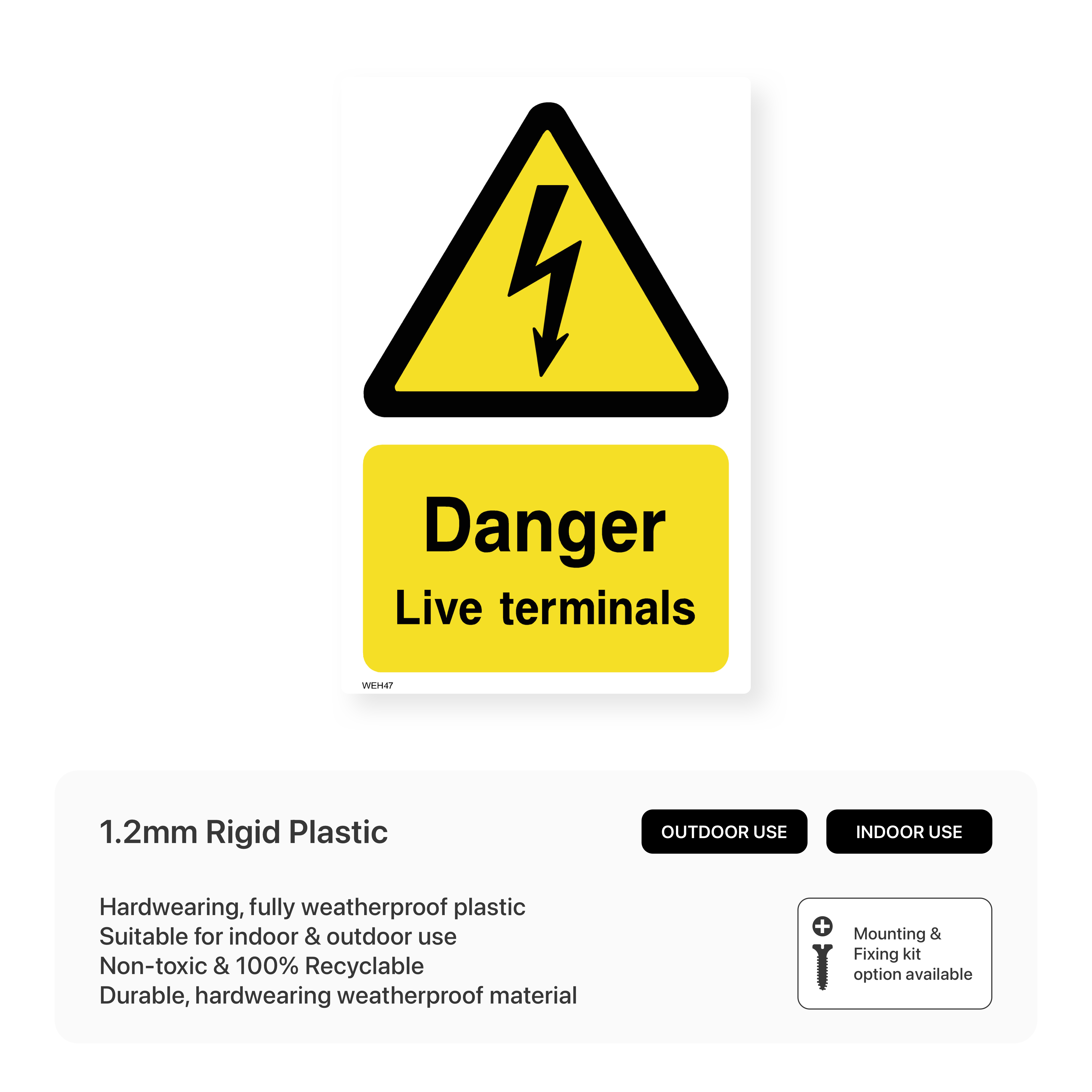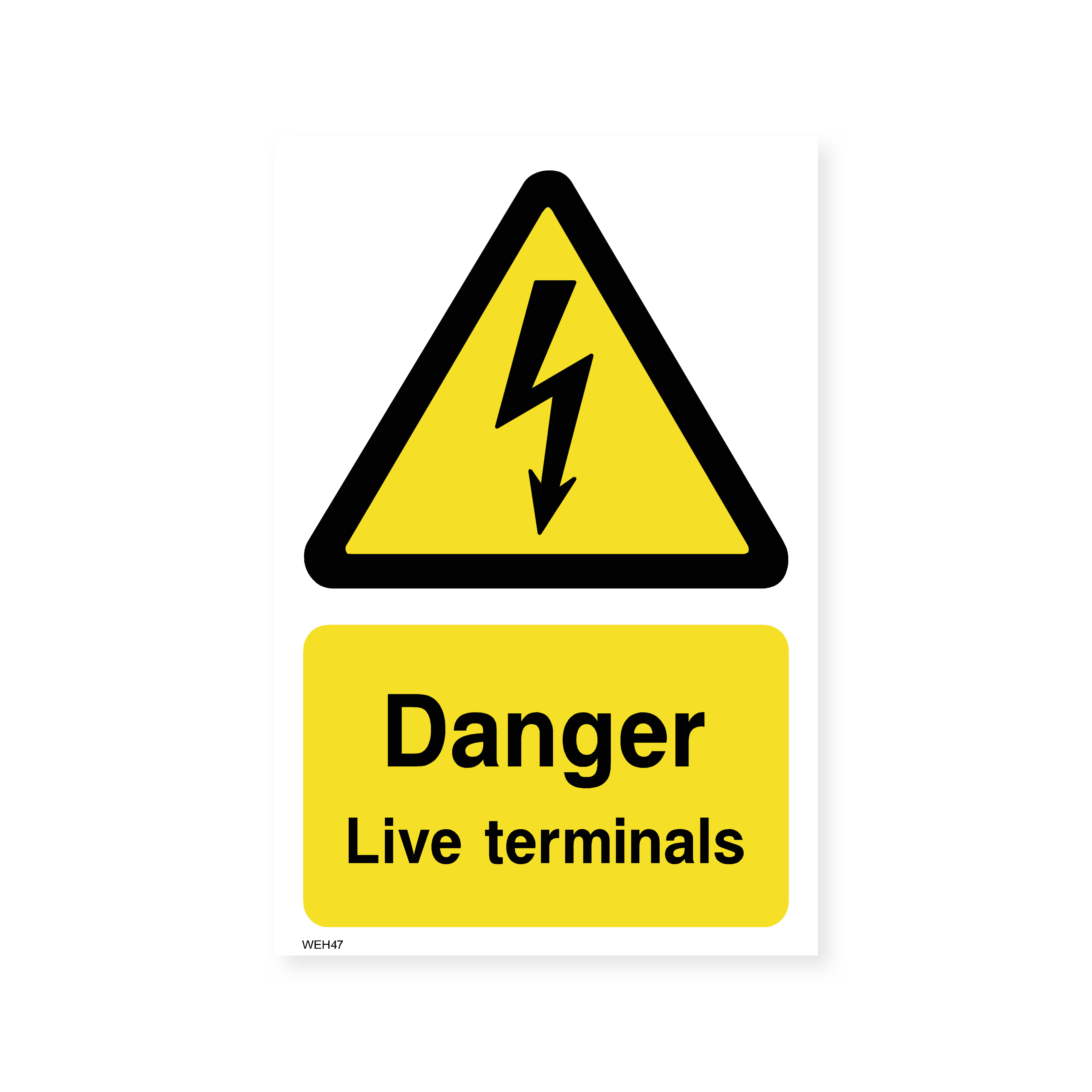 Clearly communicate the presence of live terminals with this portrait-oriented sign. This warning helps to prevent electrical accidents and injuries in workplaces where live terminals are present.