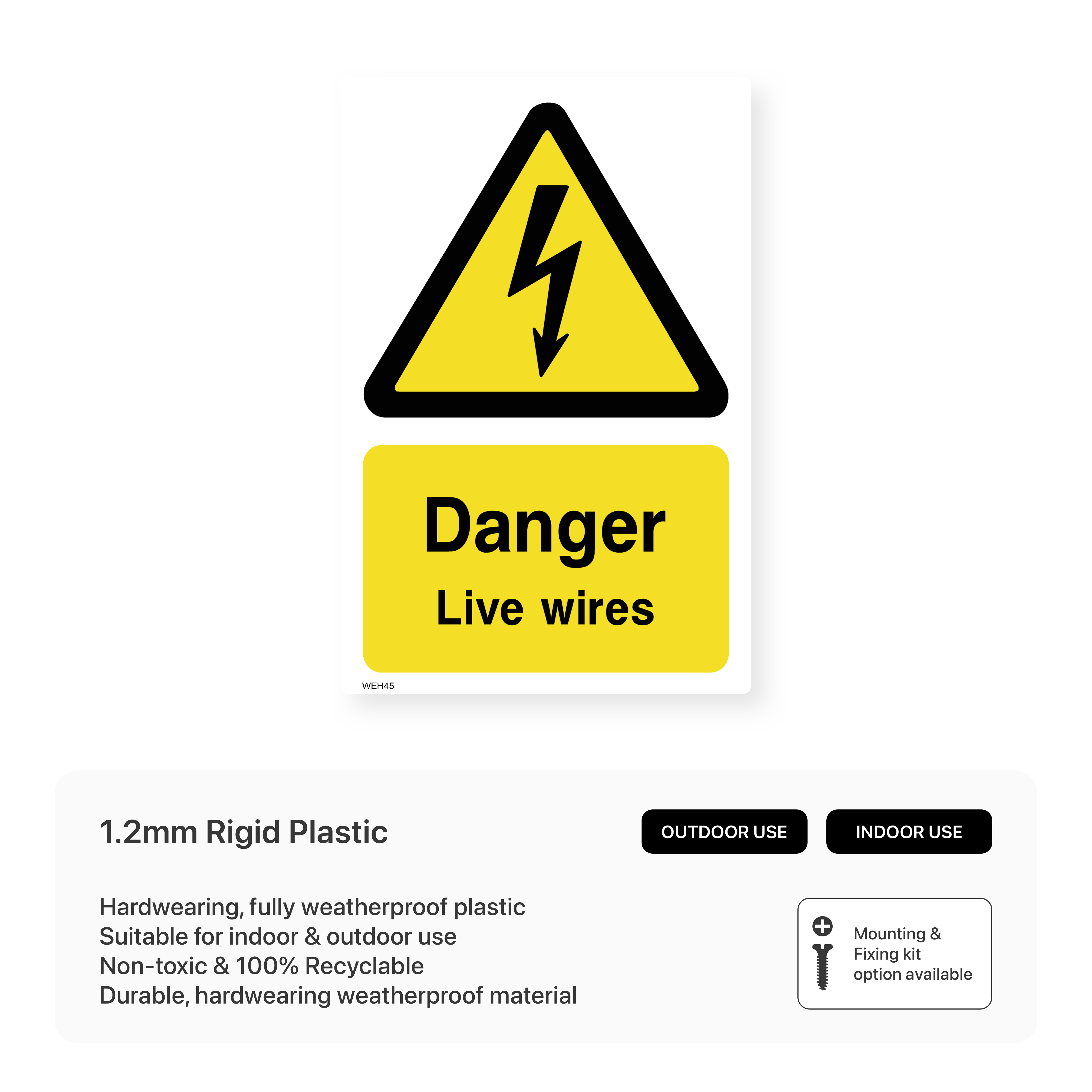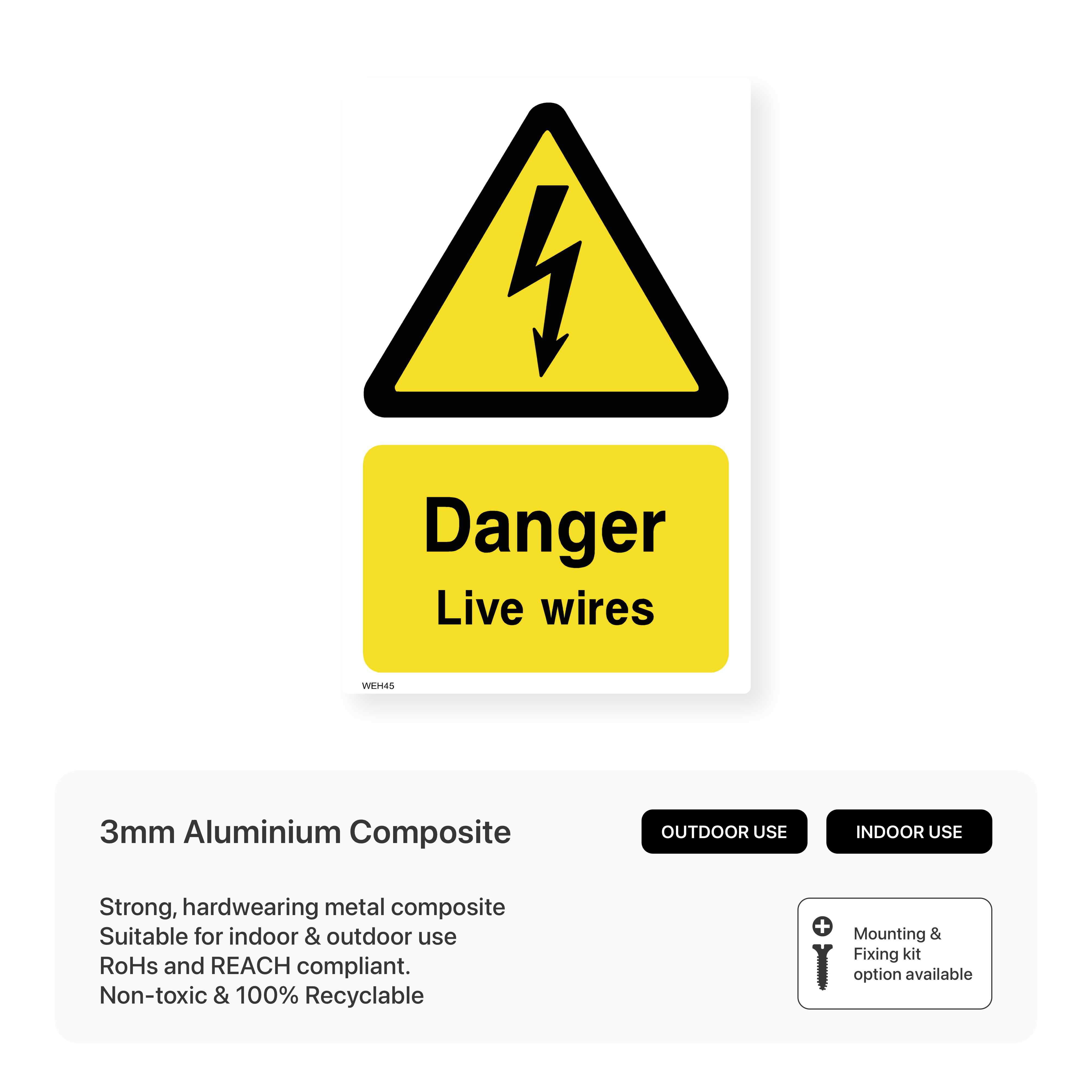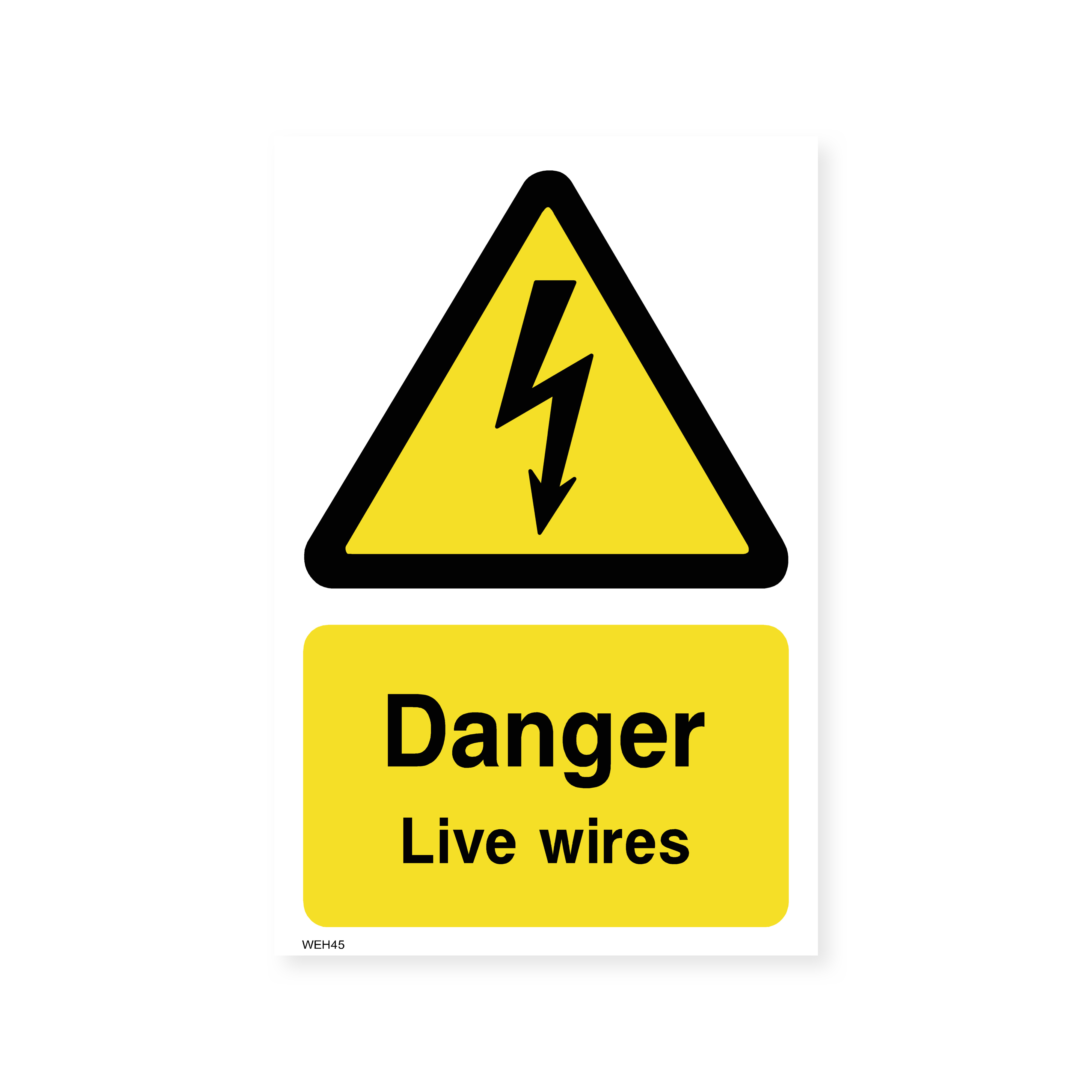 Warn of the presence of live wires with this clear and concise portrait-oriented sign. This sign helps to prevent electrical shock and injuries in workplaces where electrical work is being done.