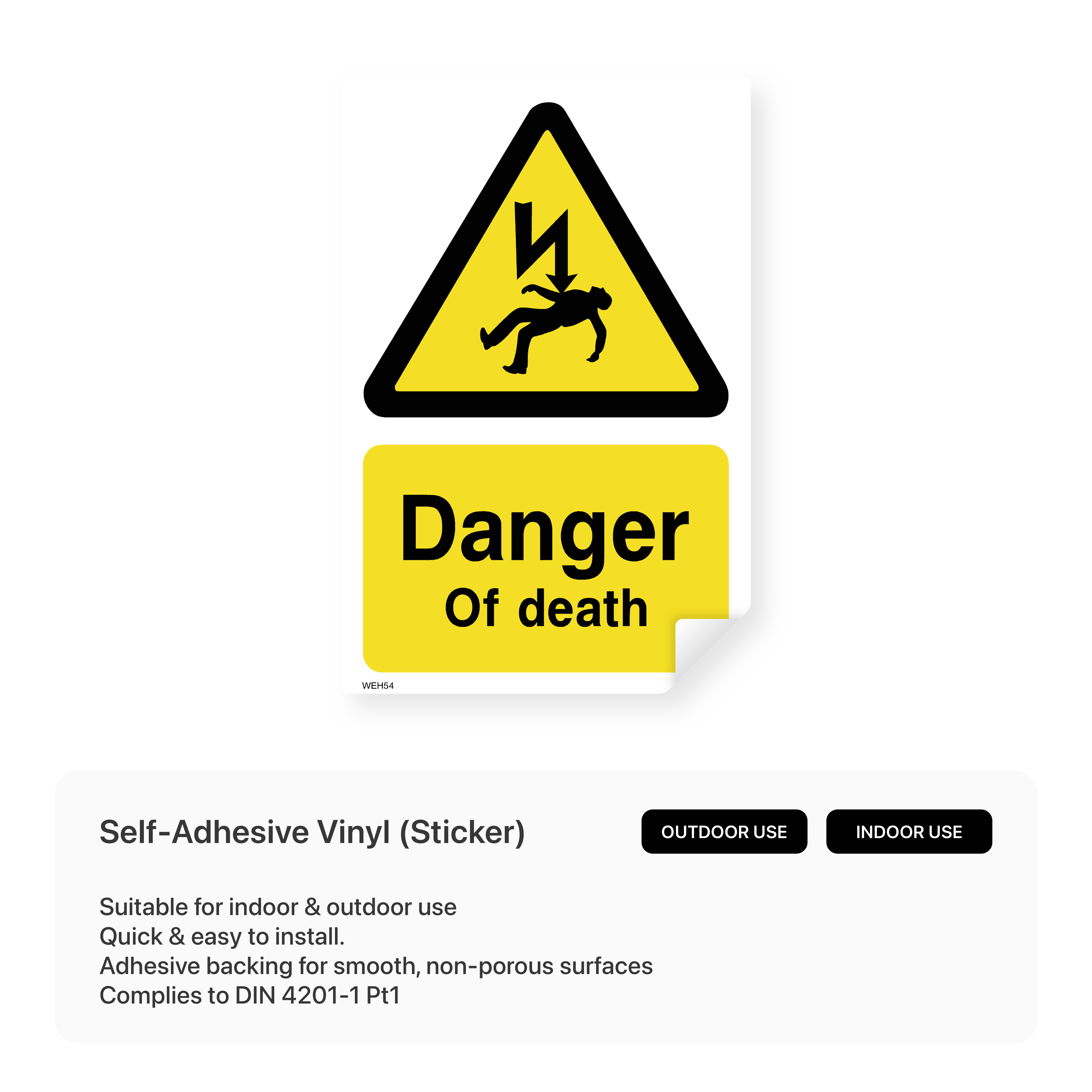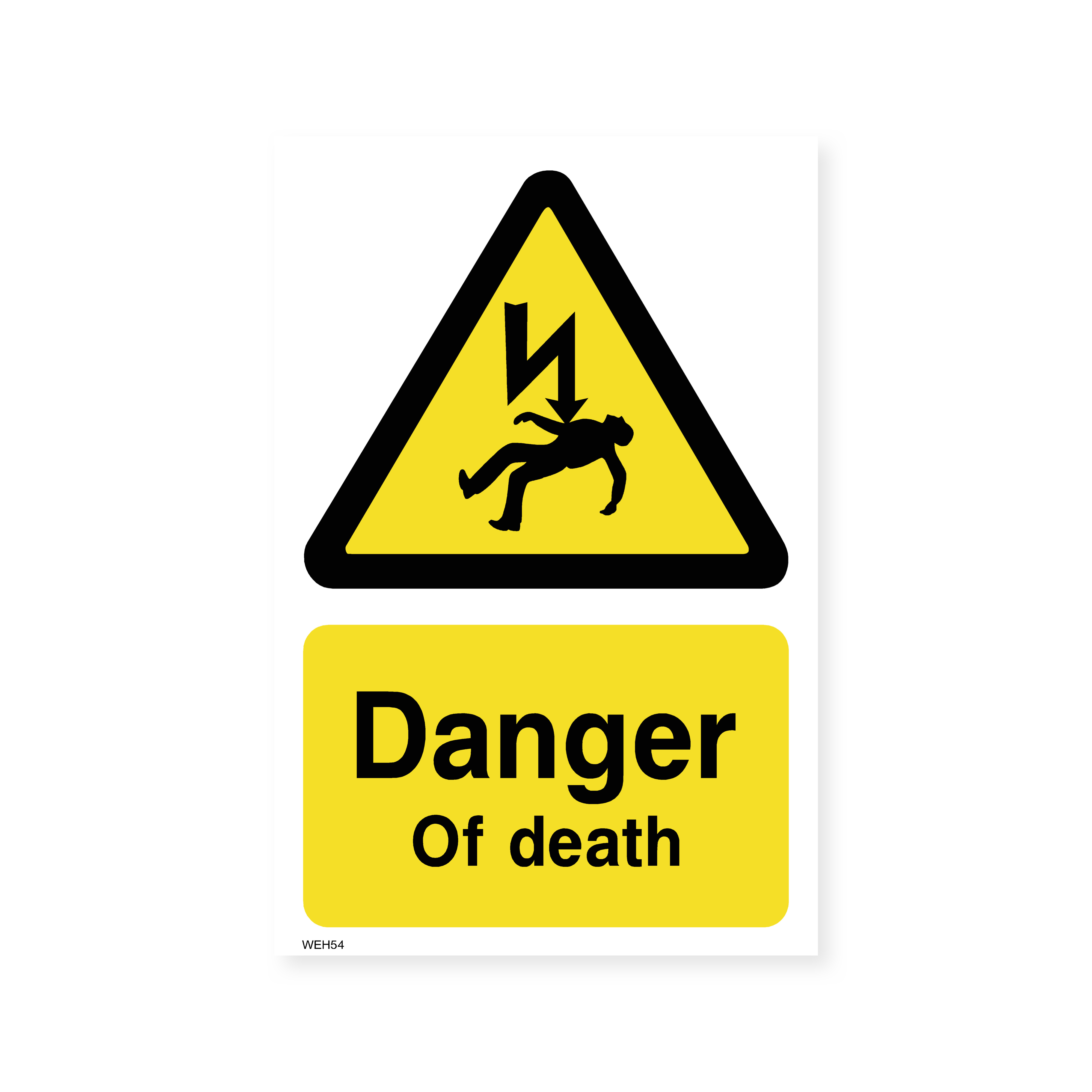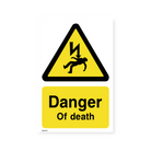 This portrait-oriented sign clearly communicates the extreme danger of electrical hazards, potentially leading to death. It serves as a stark reminder to exercise caution and follow safety procedures in areas with high voltage or live electrical equipment.