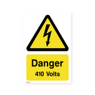 Ensure the safety of your workplace with this portrait-oriented sign, warning of the presence of 410 volts. This clear and visible sign helps to prevent electrical accidents.