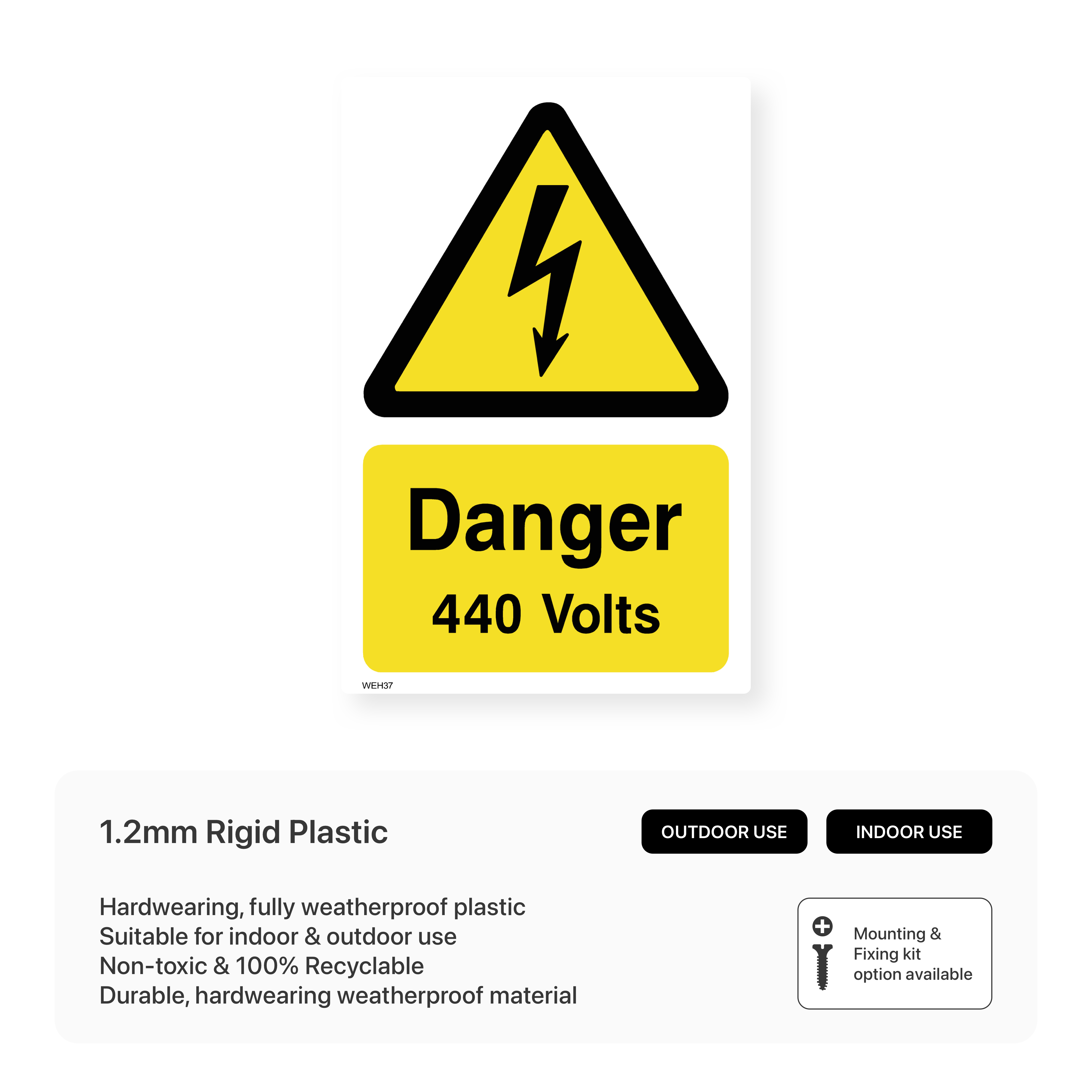 Clearly communicate the presence of 440 volts with this portrait-oriented warning sign. This sign helps to prevent electrical accidents and injuries.