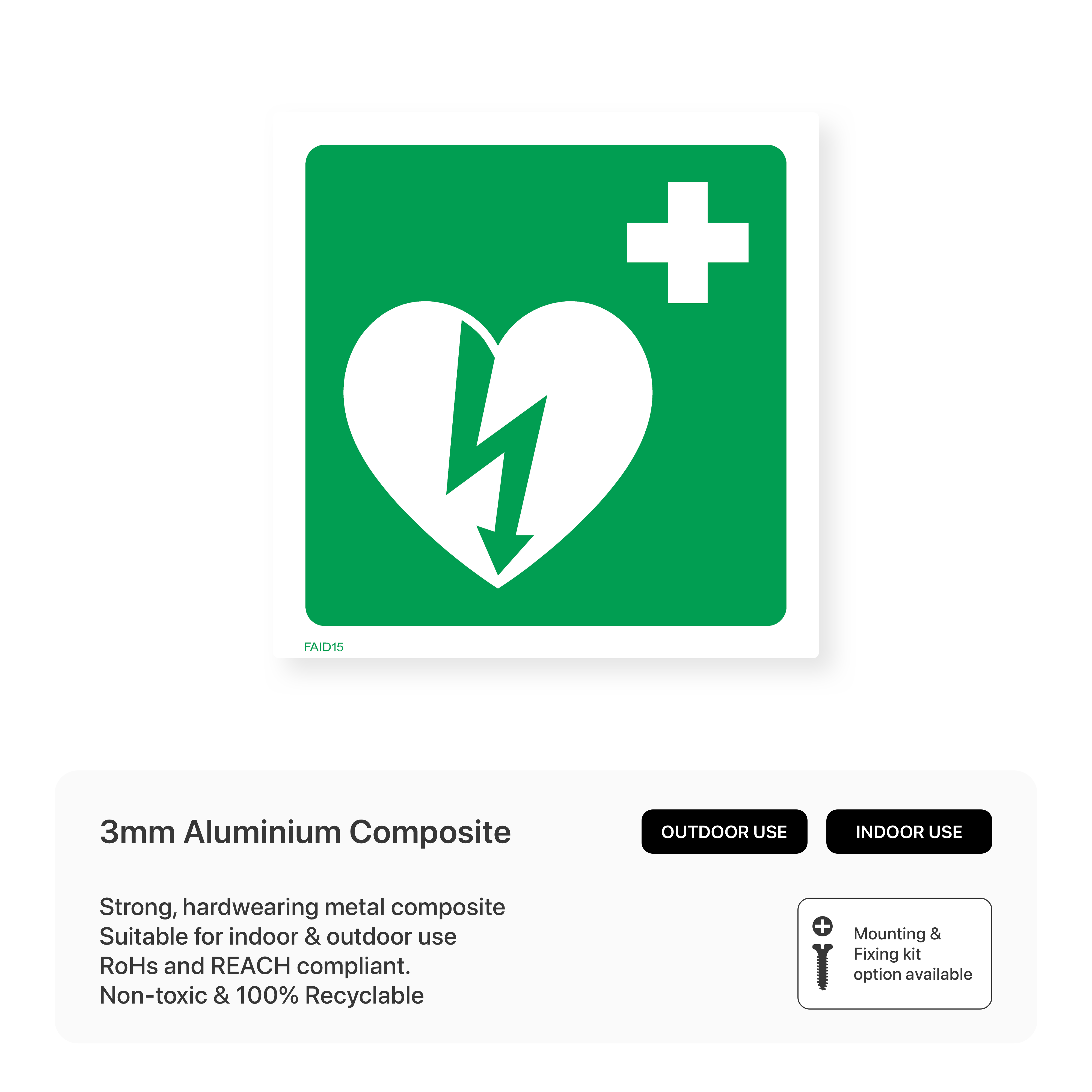 Clearly mark the location of defibrillators with our "Defibrillator" sign. This sign helps individuals quickly locate and access this life-saving equipment in case of cardiac emergencies.