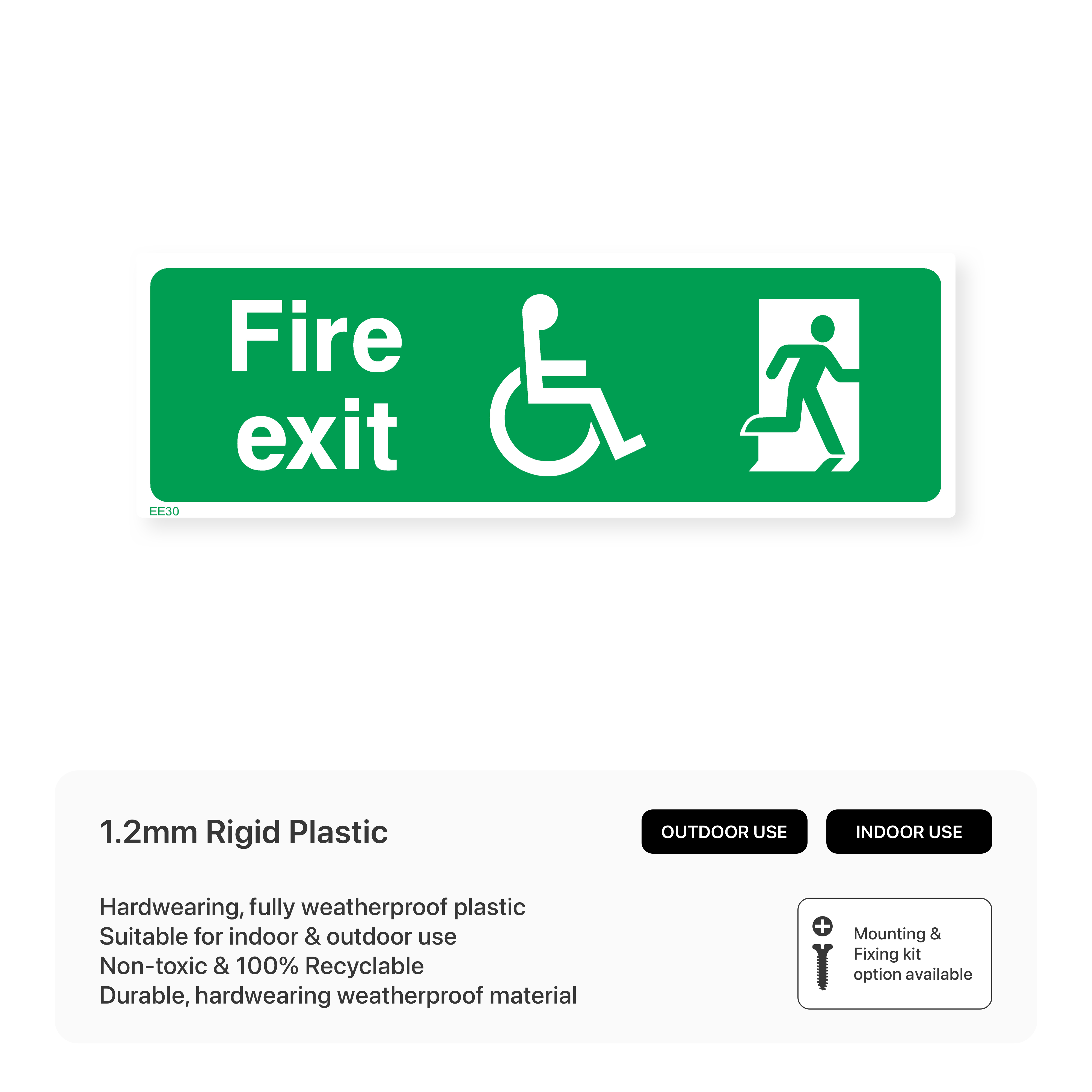 Ensure accessible fire exits for everyone with our "Disabled accessible fire exit" sign. This sign clearly marks fire exit routes that are designed to accommodate individuals with disabilities, promoting safety and inclusivity during emergencies.