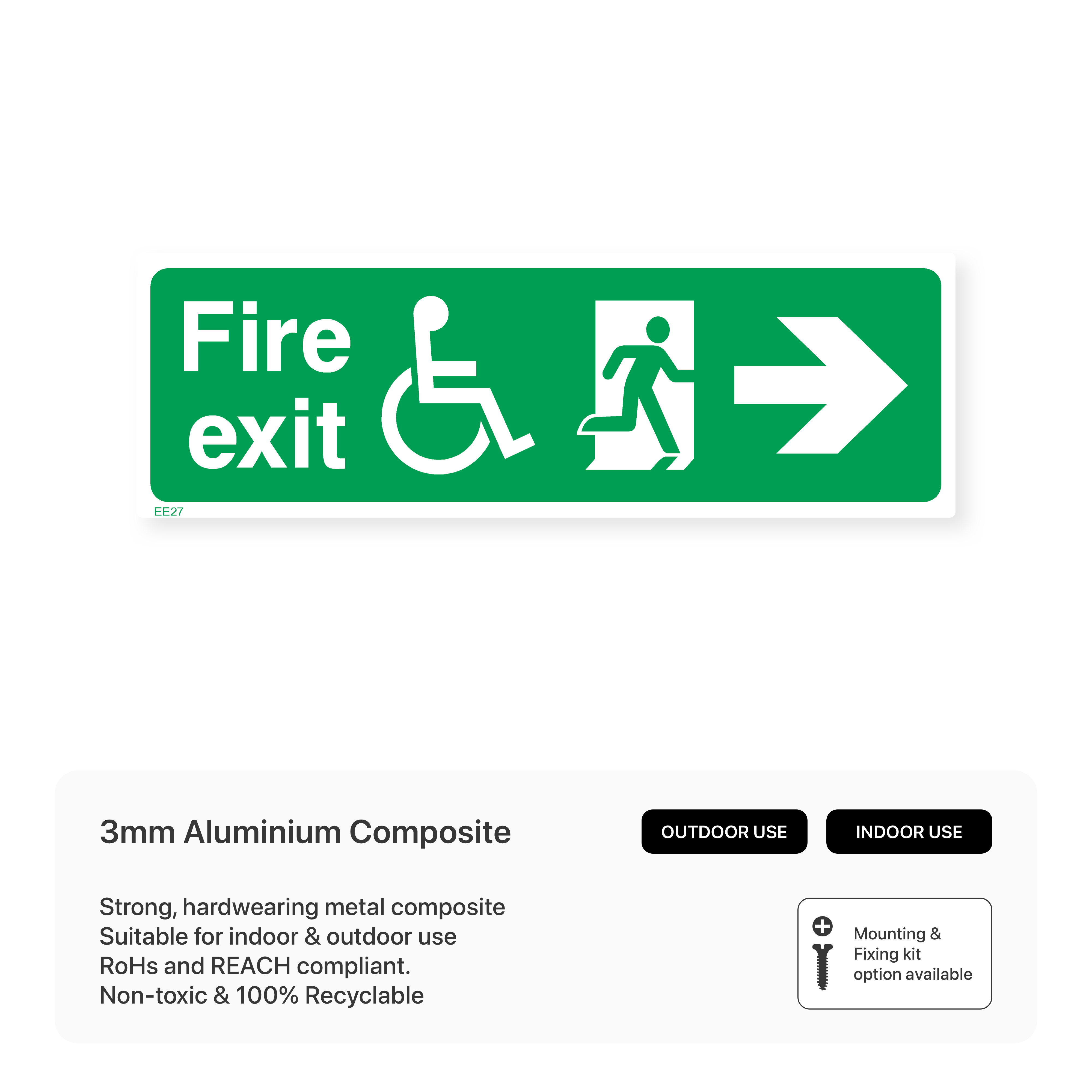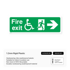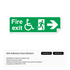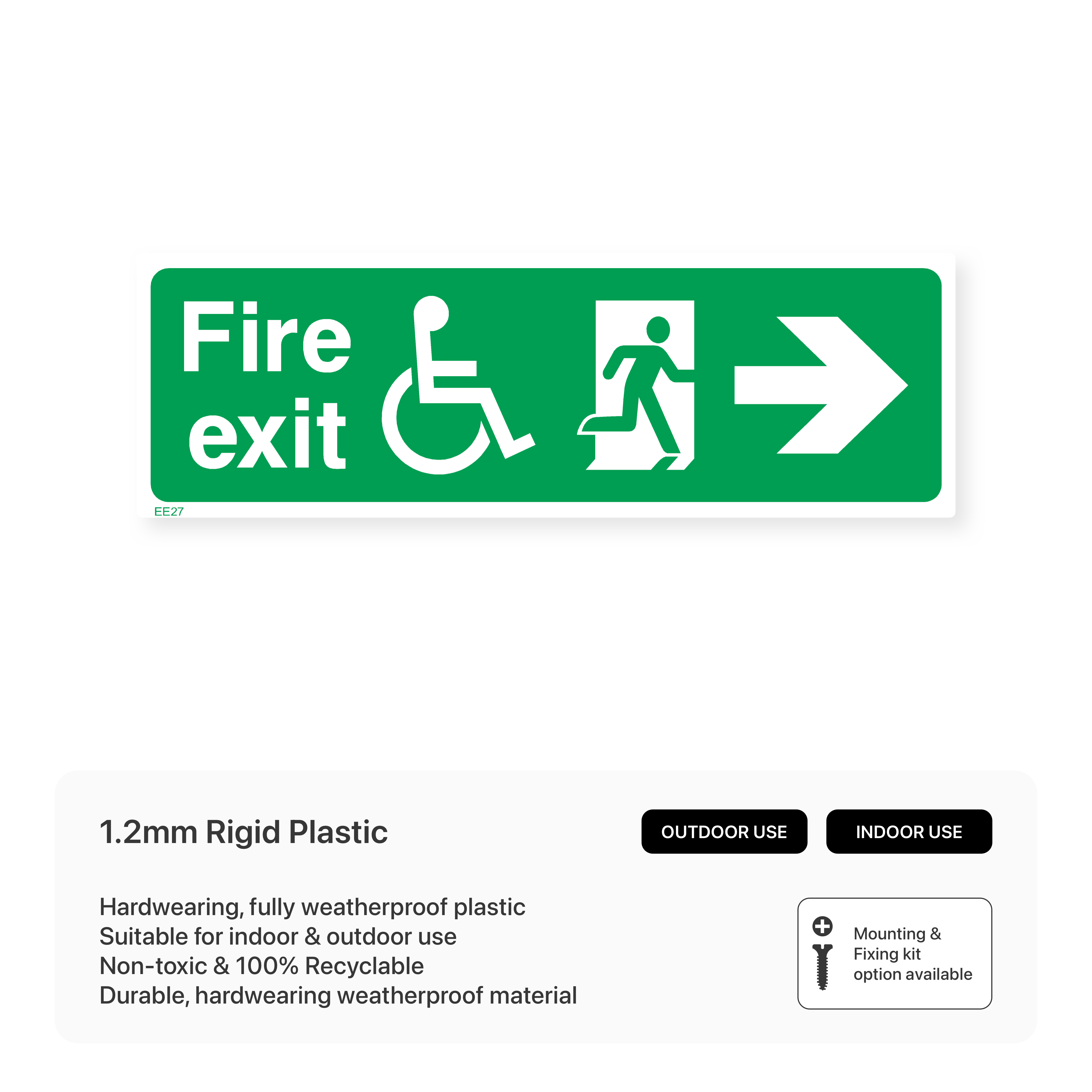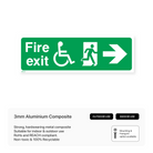 Guide individuals with disabilities to accessible fire exits with our "Disabled accessible fire exit - Arrow Right" sign. This directional sign clearly indicates the location of the accessible fire exit and the direction to access it, promoting safety and inclusivity.