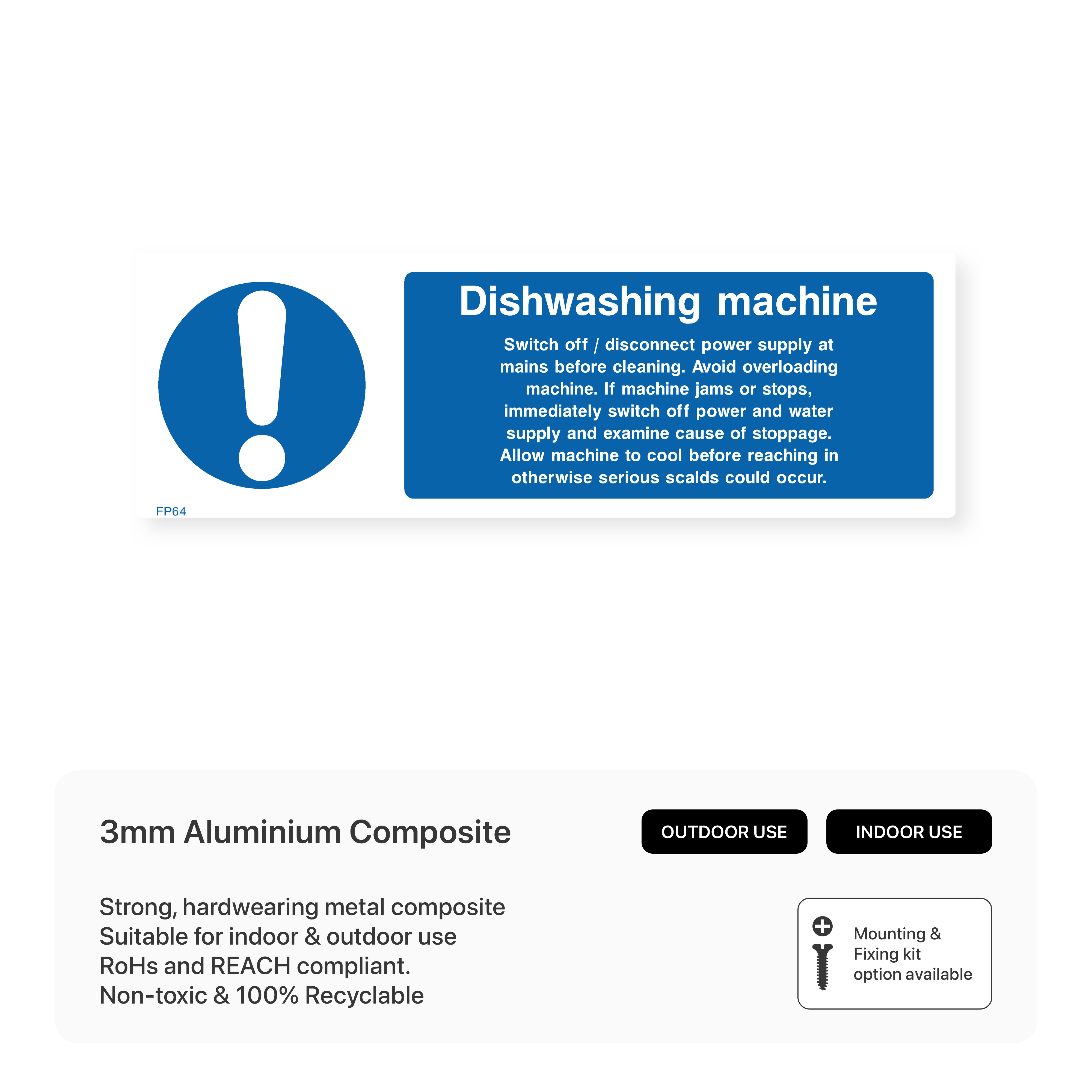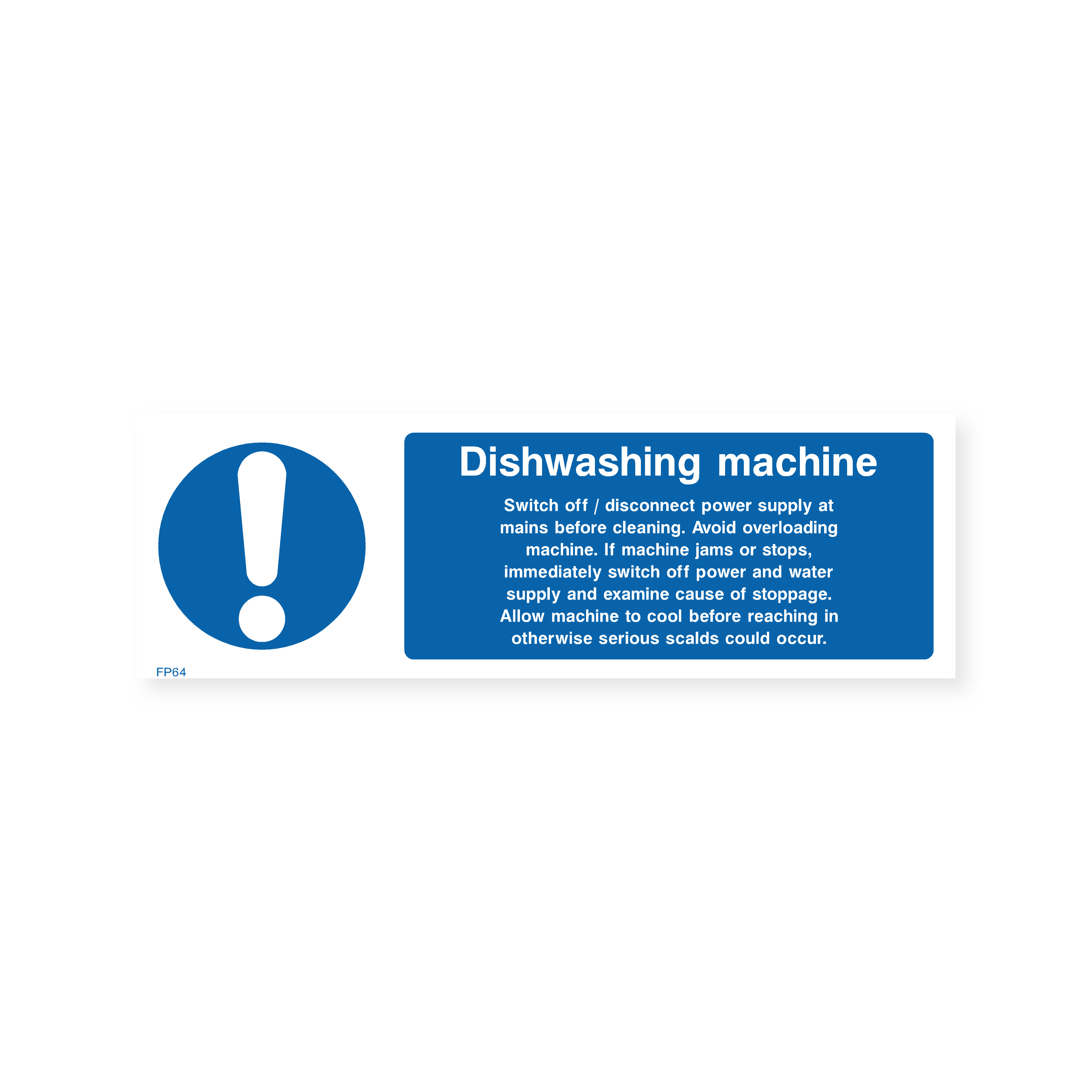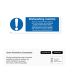 Prioritize safety in your kitchen with our "Dishwashing machine" sign. This sign reminds employees to switch off and disconnect the power supply before cleaning, preventing accidents and electrical hazards.