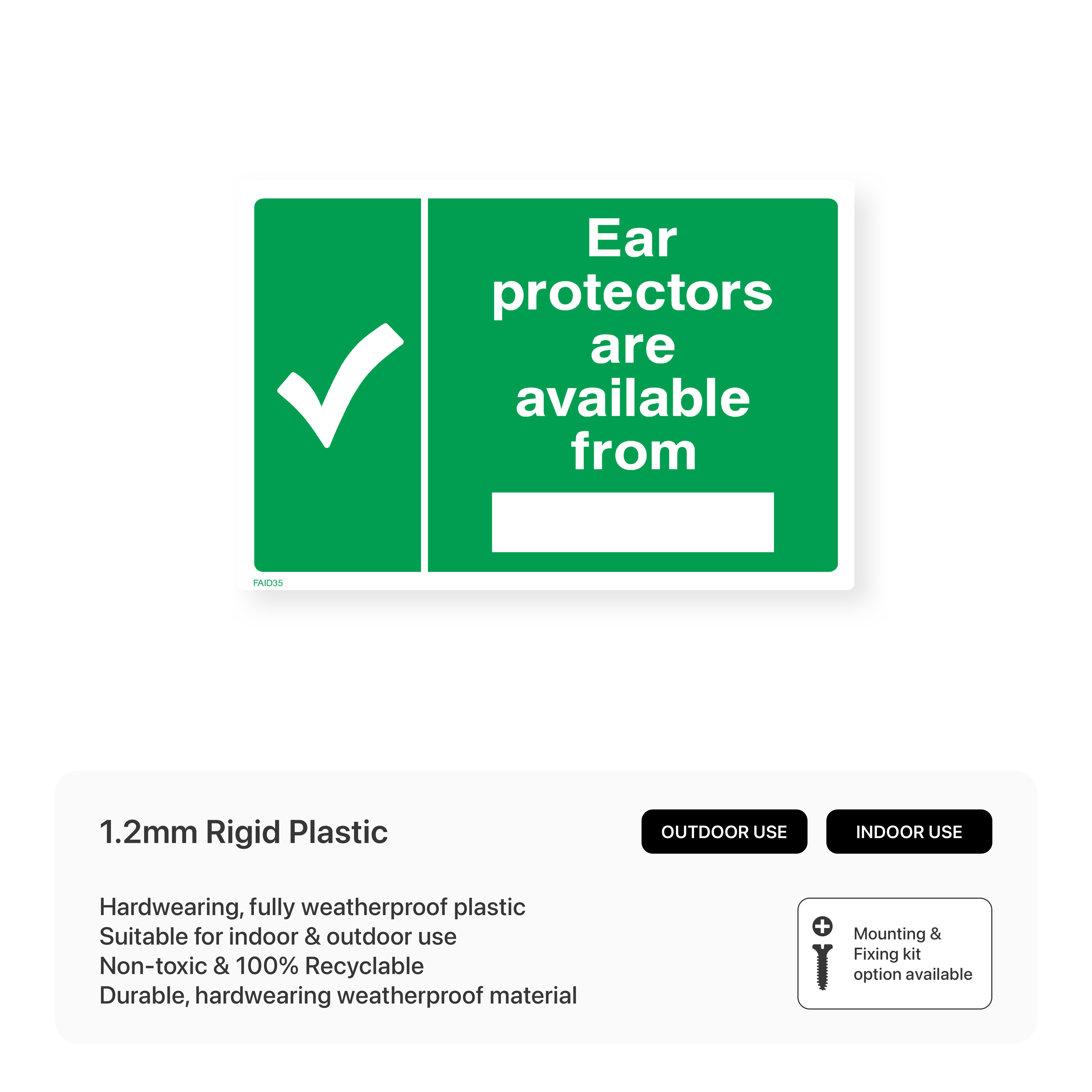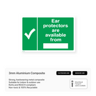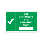 Clearly mark the location where ear protectors can be obtained with our "Ear protectors are available from" sign. This sign ensures that individuals can easily find and access ear protection when needed, promoting hearing protection in noisy environments.