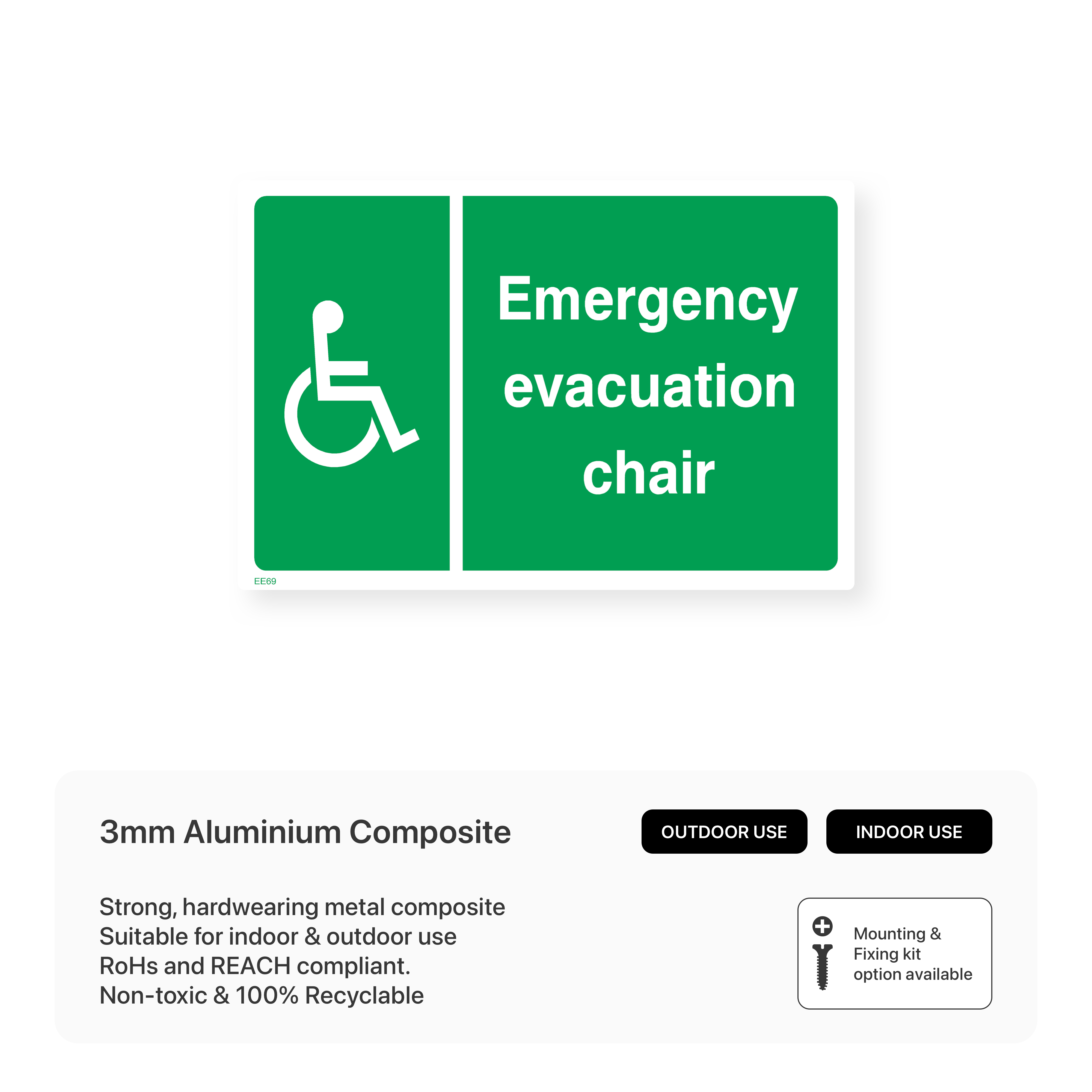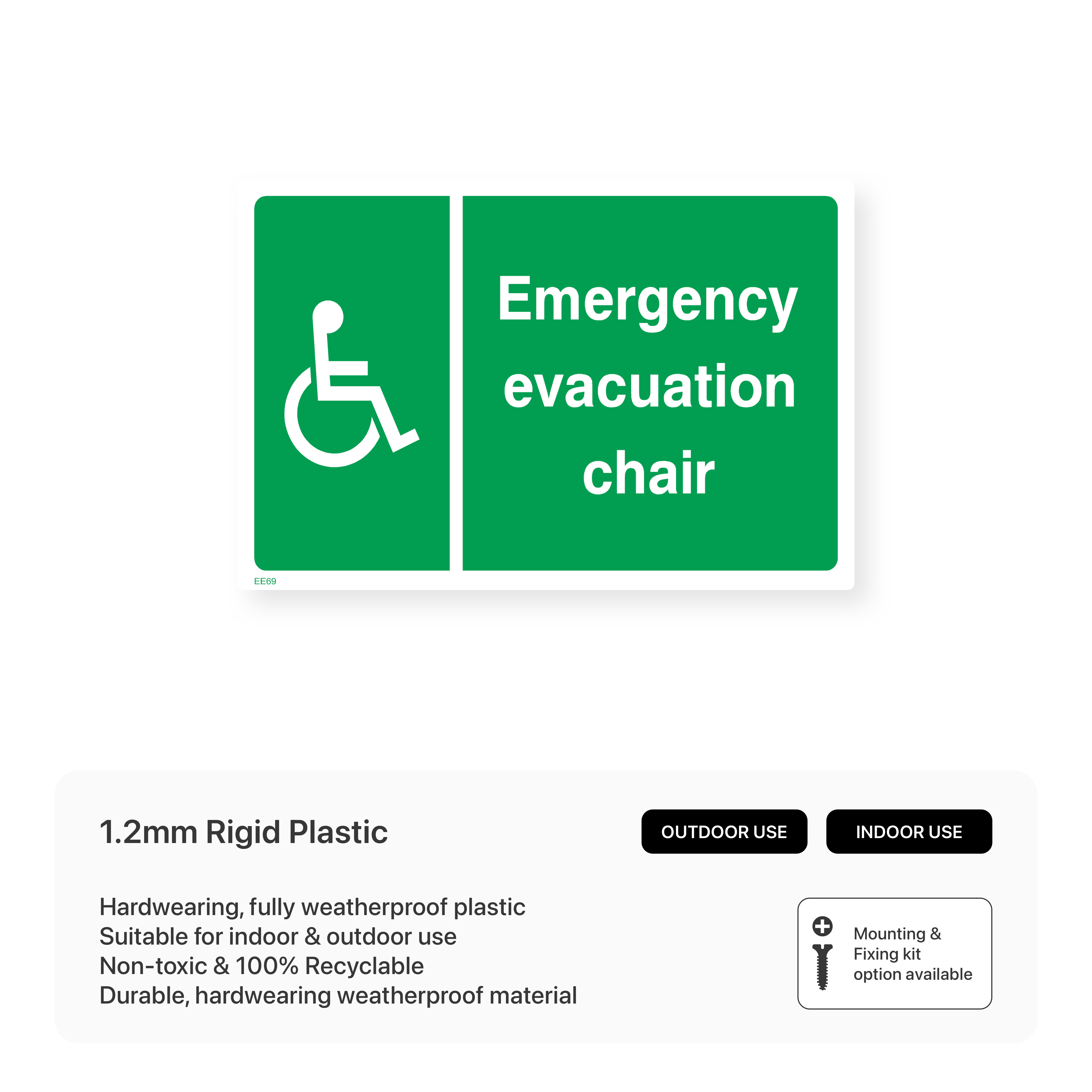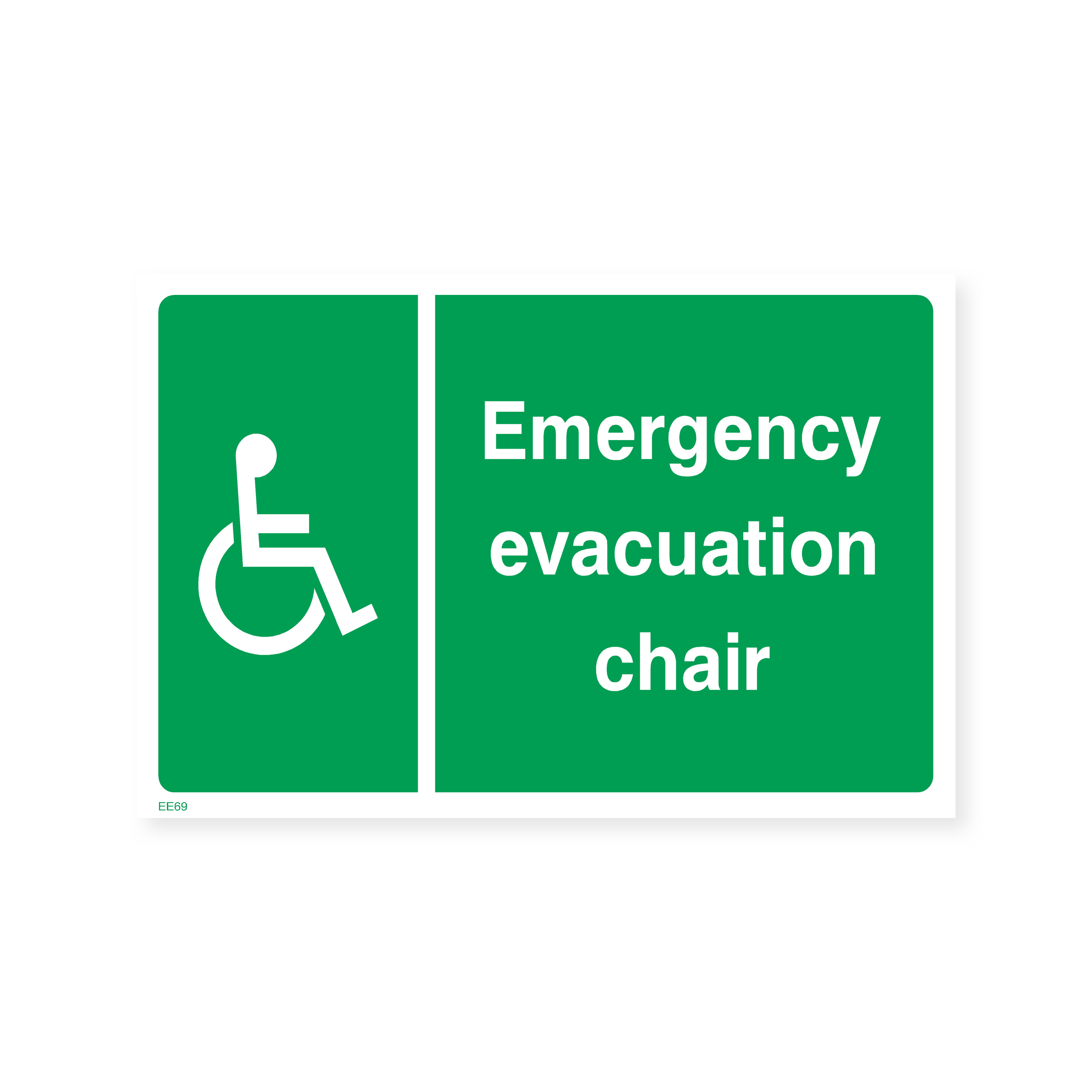 Clearly mark the location of emergency evacuation chairs with our "Emergency evacuation chair" sign. This sign helps individuals quickly locate the chair in case of emergency, ensuring a safe and efficient evacuation for those who need assistance.