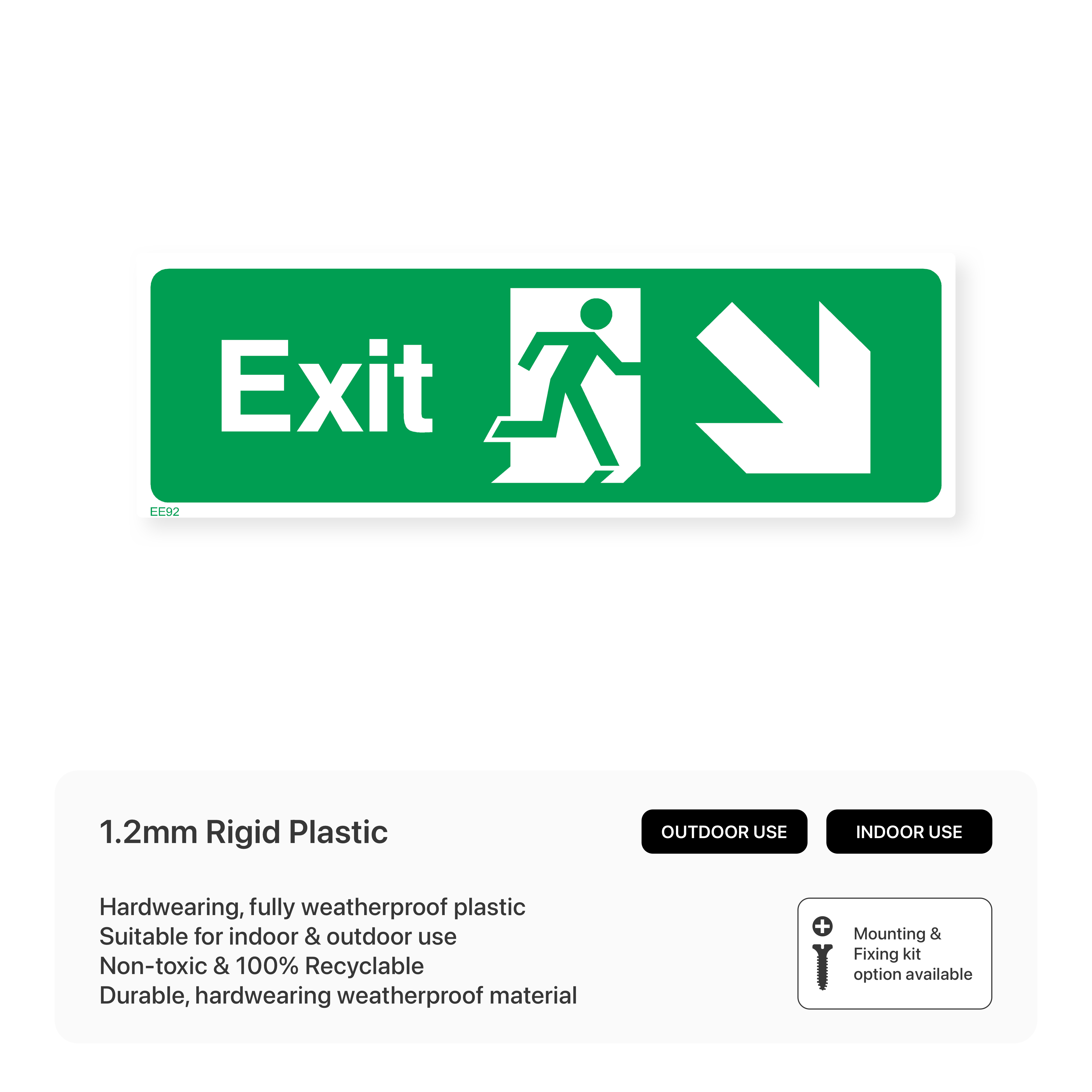 Clearly mark exit routes with our "Exit - Right Down" sign. This directional sign ensures quick and efficient evacuation during emergencies, guiding individuals towards safety.