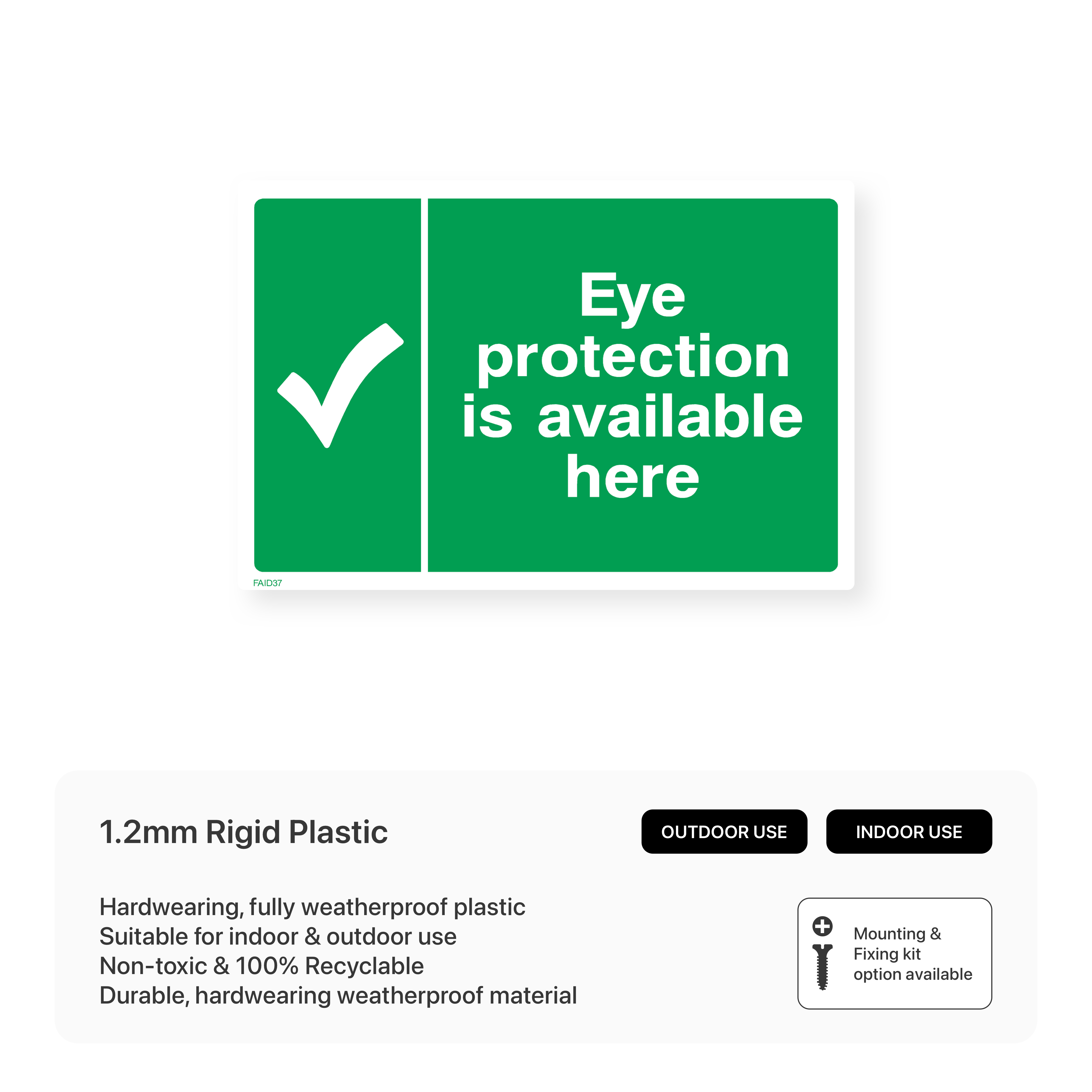 Protect workers' eyes from hazards with our "Eye protection is available here" sign. This sign clearly indicates the location where eye protection, such as safety glasses or goggles, can be obtained, promoting a safe working environment.