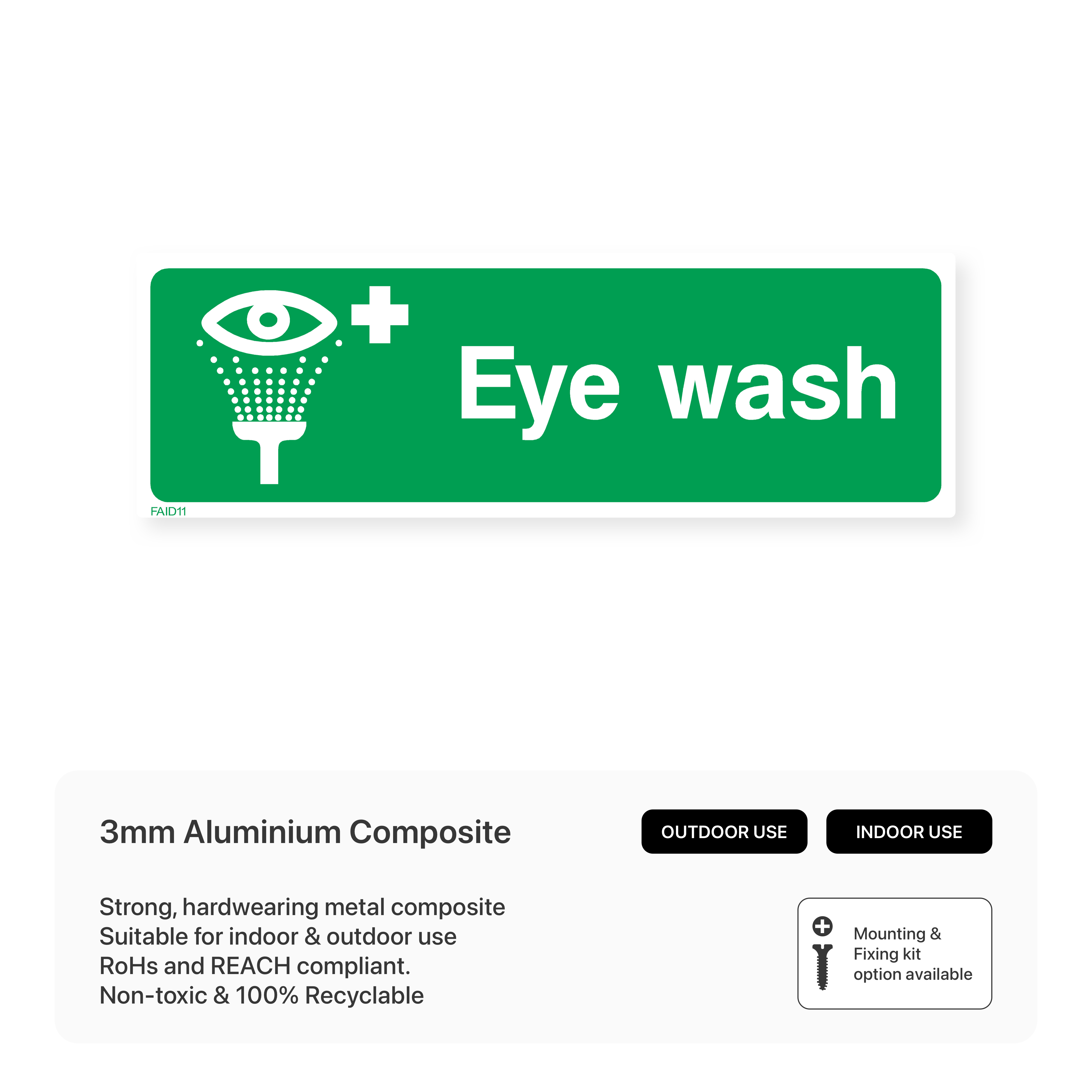 Clearly mark the location of eye wash facilities with our "Eye wash" sign. This sign ensures that individuals can quickly locate and use eye wash equipment in case of eye injuries or contamination.