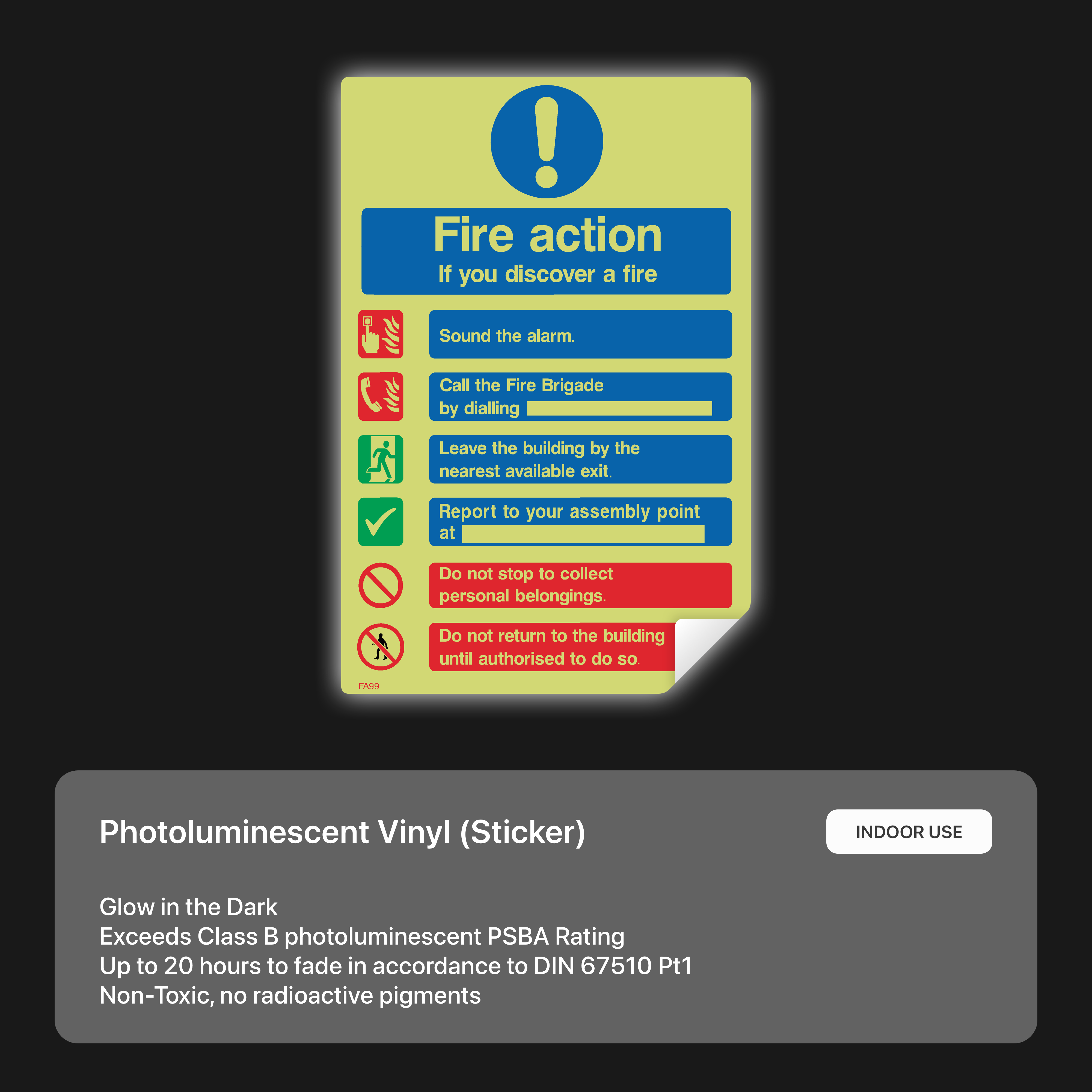 Promote safe evacuation during fire emergencies with our "Fire Action - If you discover a fire..." sign. This sign reminds individuals to prioritize their safety by immediately sounding the alarm, evacuating without collecting belongings, and not returning to the building until it is safe.