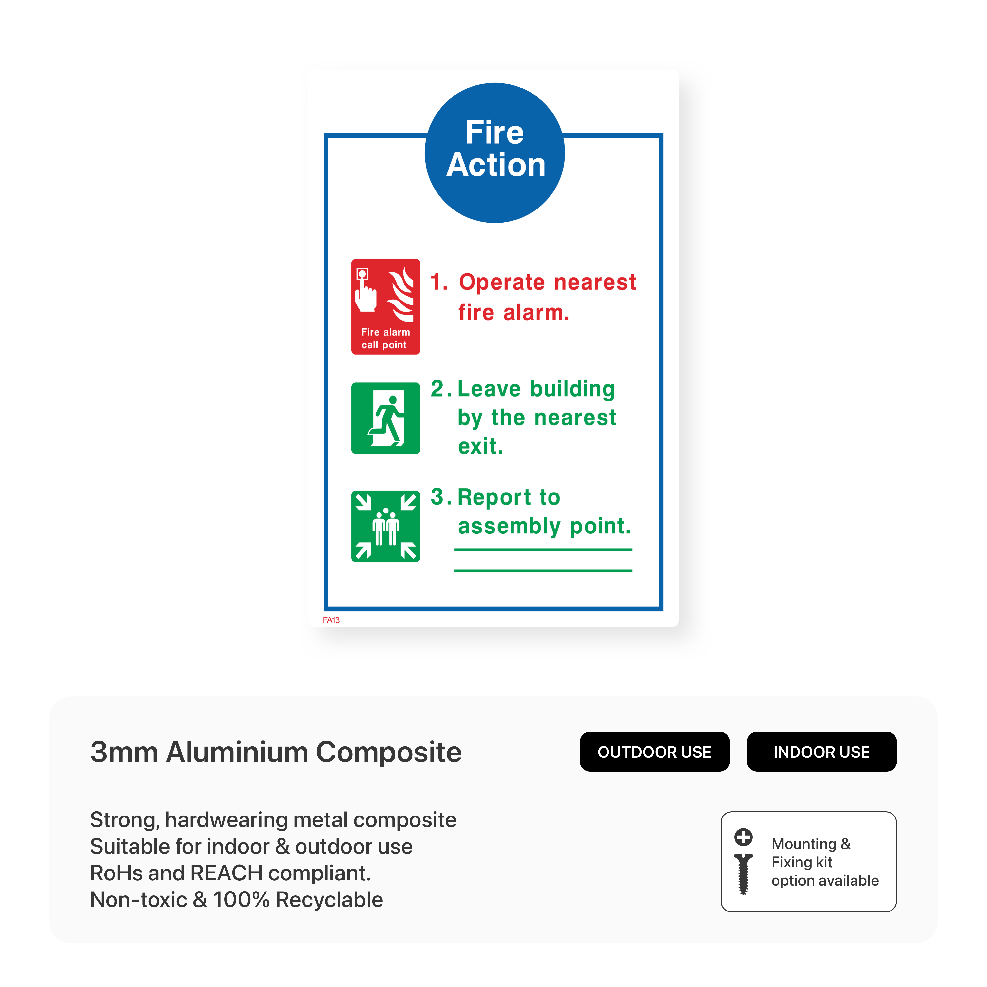 Provide clear instructions in case of fire with our "Fire Action - If you discover a fire operate nearest fire alarm point" sign. This sign guides individuals on the first steps to take upon discovering a fire, ensuring a swift response and increased safety.