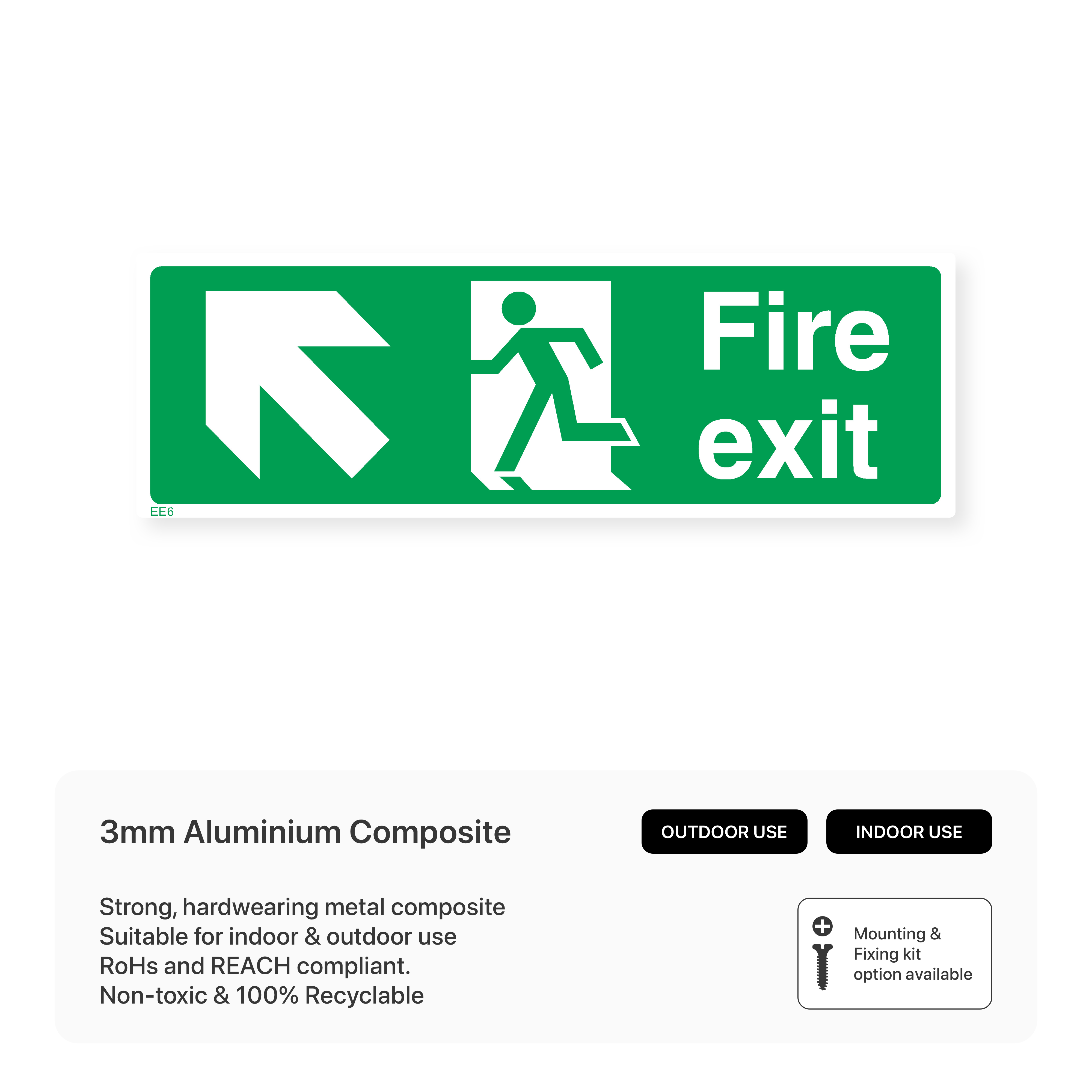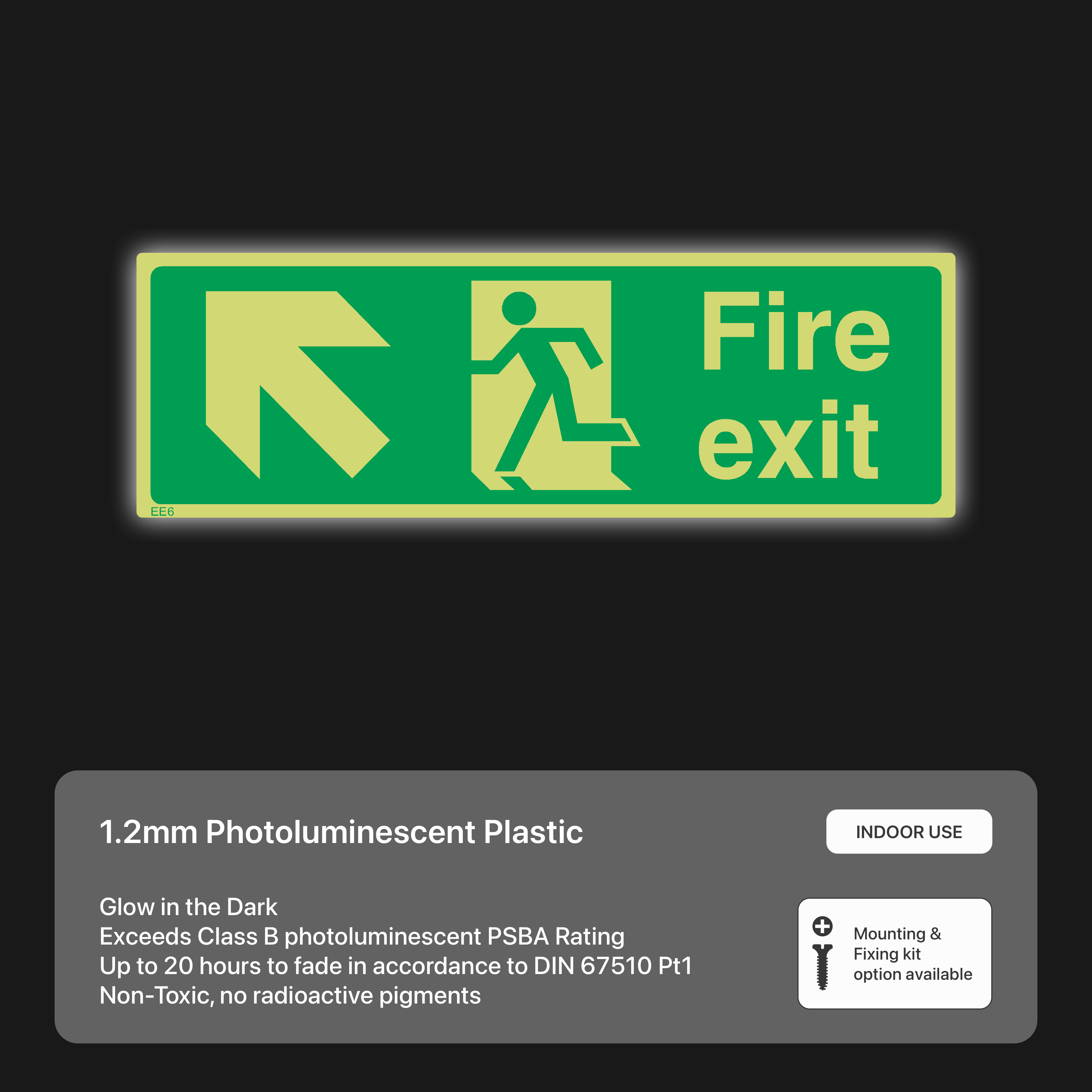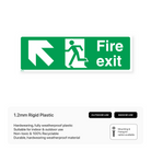 Clearly mark fire exit routes with our "Fire Exit - Left up arrow" sign. This directional sign ensures quick and efficient evacuation during emergencies, guiding individuals towards safety.