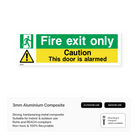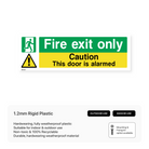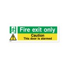 Ensure the proper use of alarmed fire exits with our "Fire exit only - Caution this door is alarmed" sign. This sign communicates the door's function and the presence of an alarm, deterring unauthorized use and ensuring security while maintaining a clear exit path.