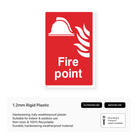 Ensure quick access to fire safety equipment with our "Fire Point" sign. This sign clearly marks the location of fire alarm call points, fire extinguishers, or other fire-fighting tools.