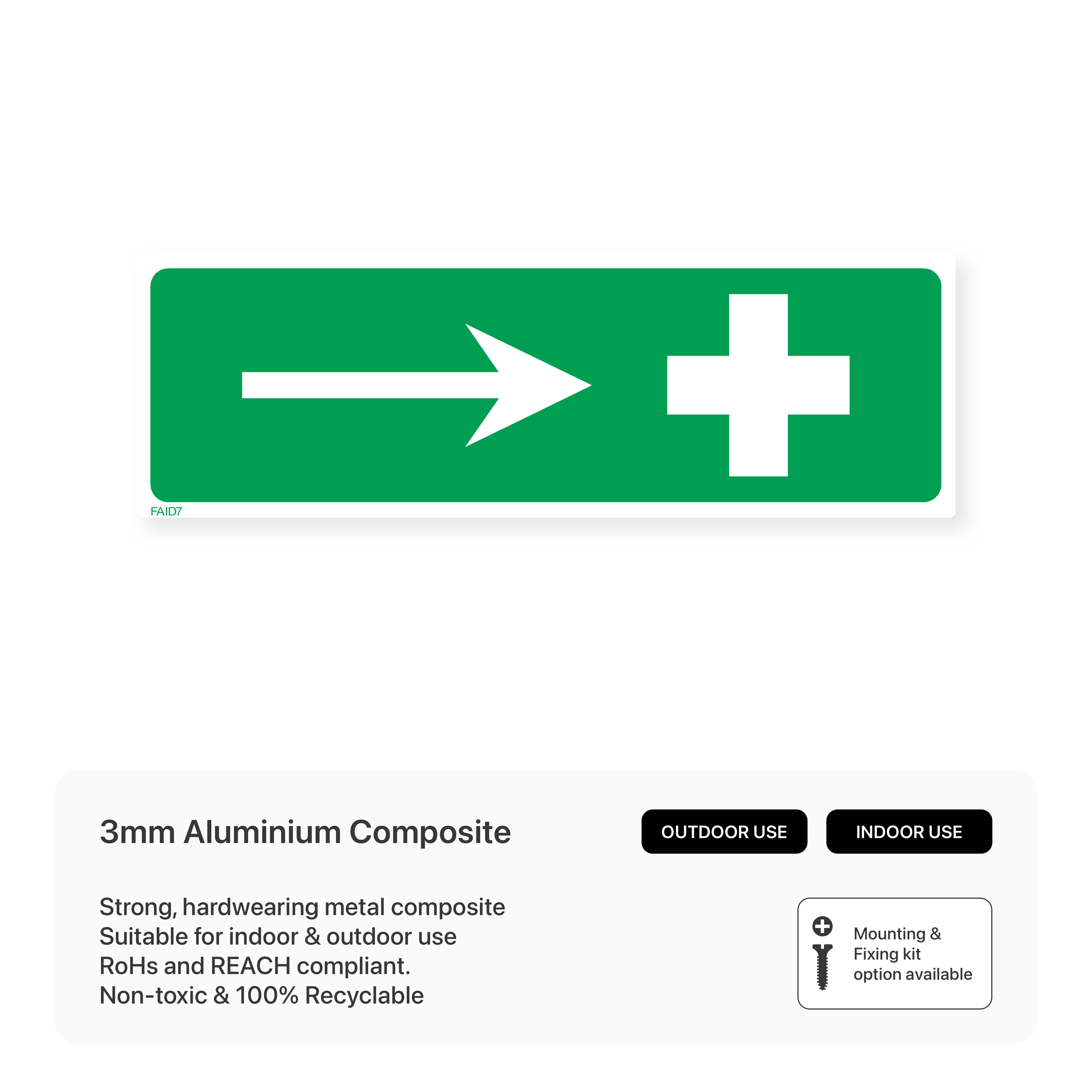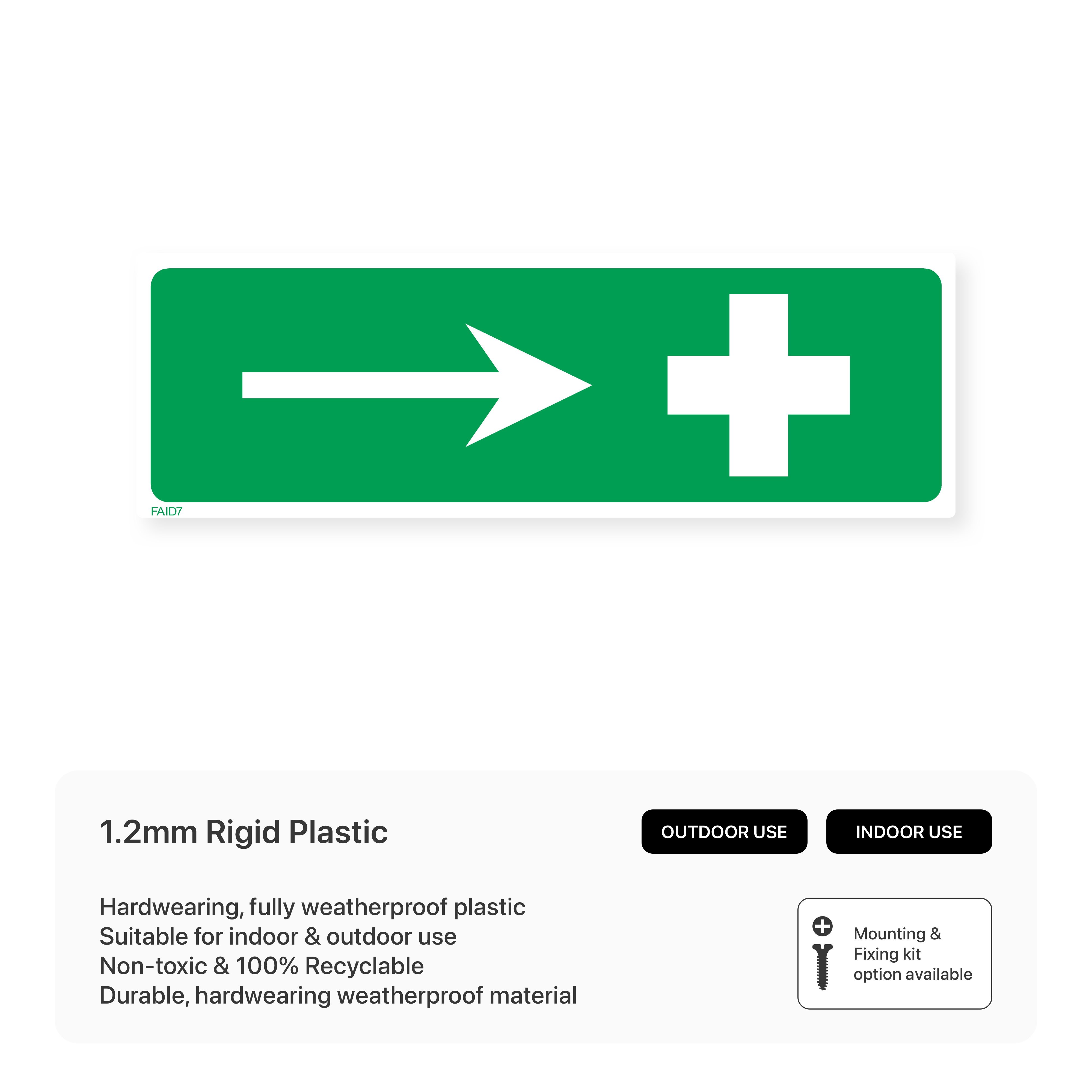 Guide individuals to the nearest first aid station with our "First aid - Arrow right" sign. This directional sign clearly indicates the direction to the right for easy navigation and access to first aid supplies.