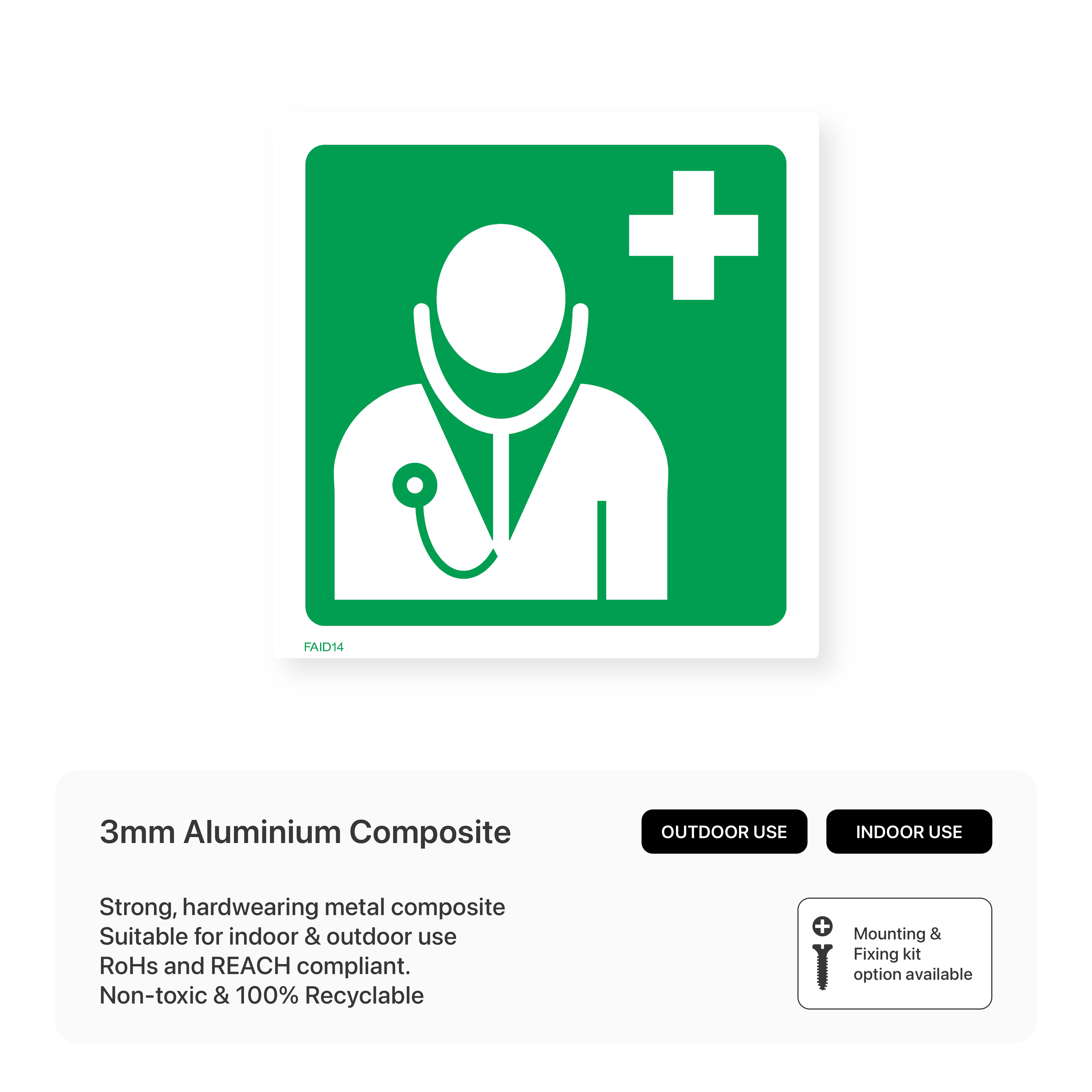 Clearly identify first aiders with our "First Aider Symbol" sign. This universally recognized symbol indicates individuals trained in first aid, ensuring that those in need can easily locate qualified personnel for assistance.