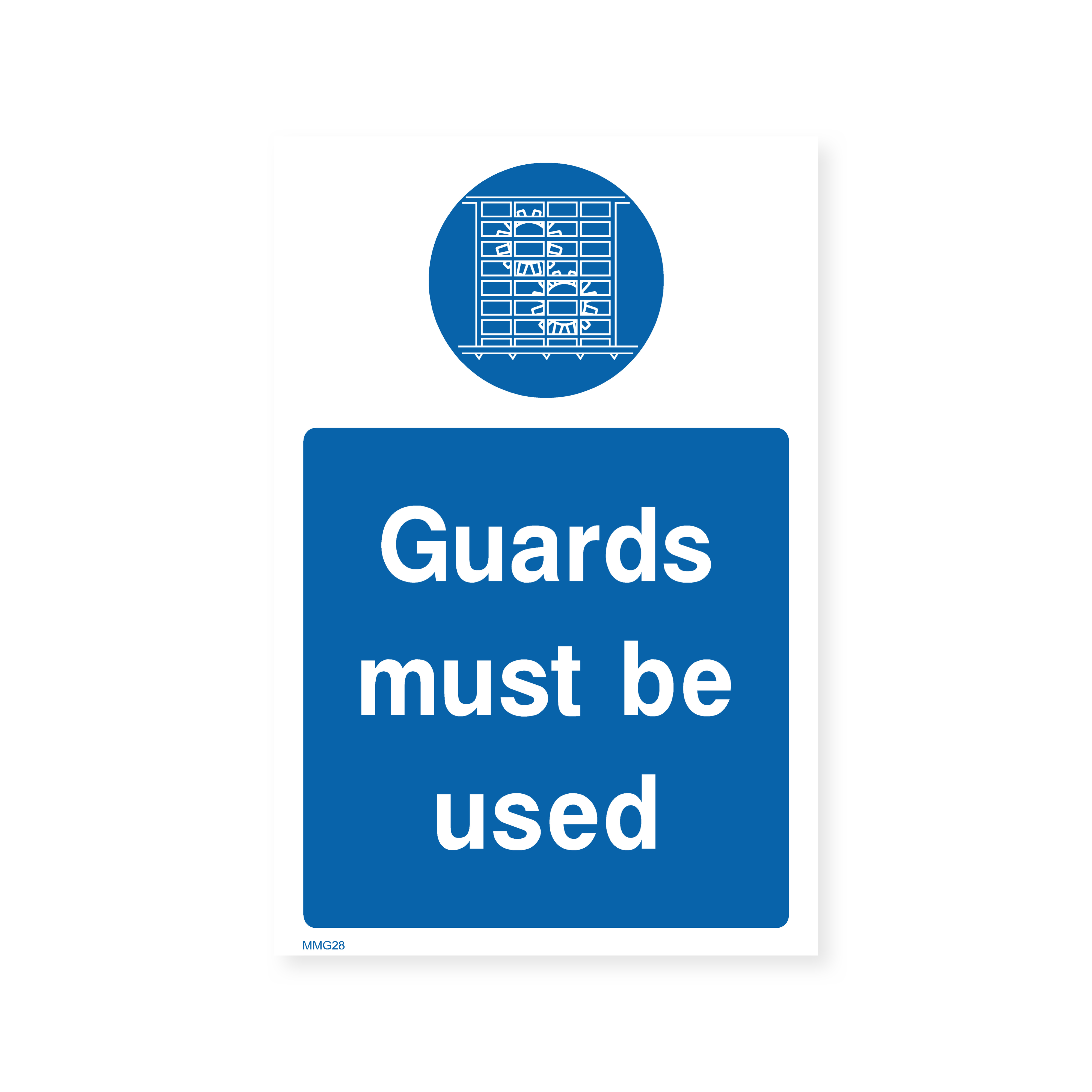 Ensure machine safety with our "Guards Must Be Used" signs. Clearly communicate the requirement to use machine guards to prevent accidents and injuries.