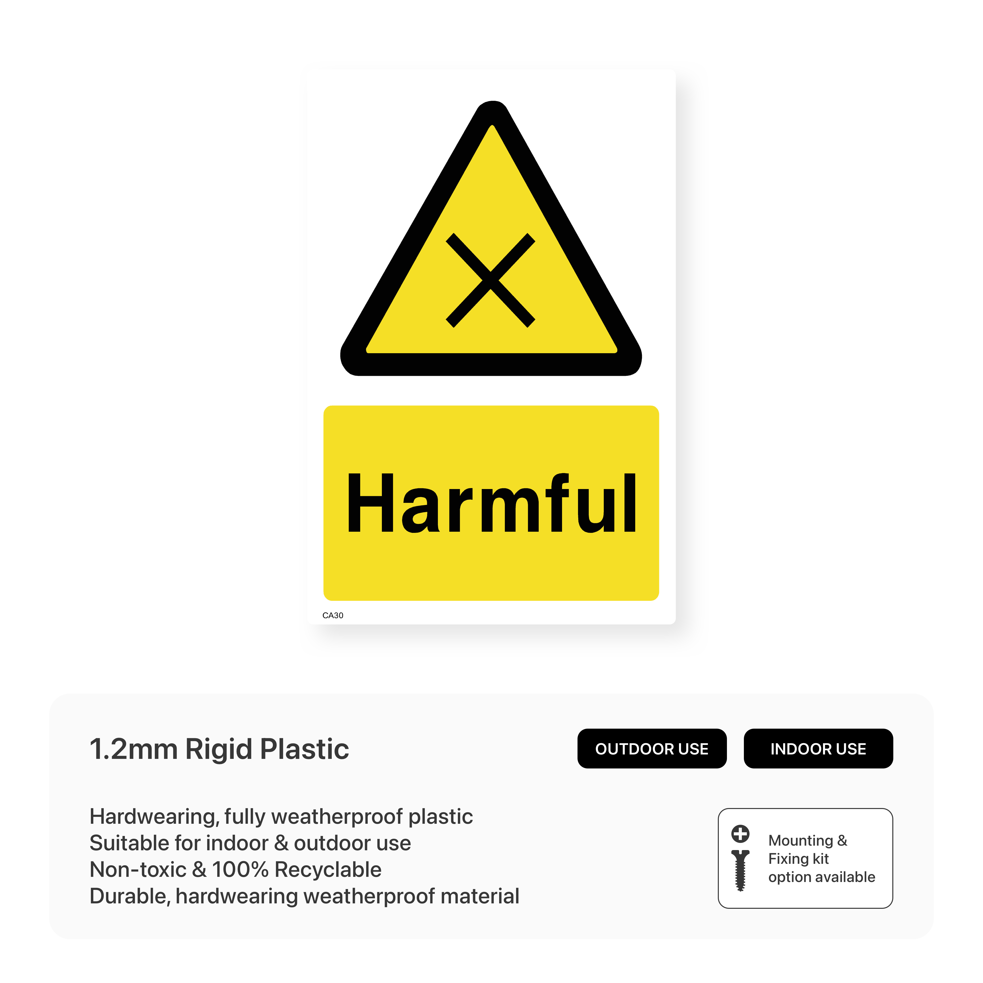 Indicate the presence of harmful substances or materials. Available in various sizes and materials, these signs help prevent accidental exposure and promote safe handling.