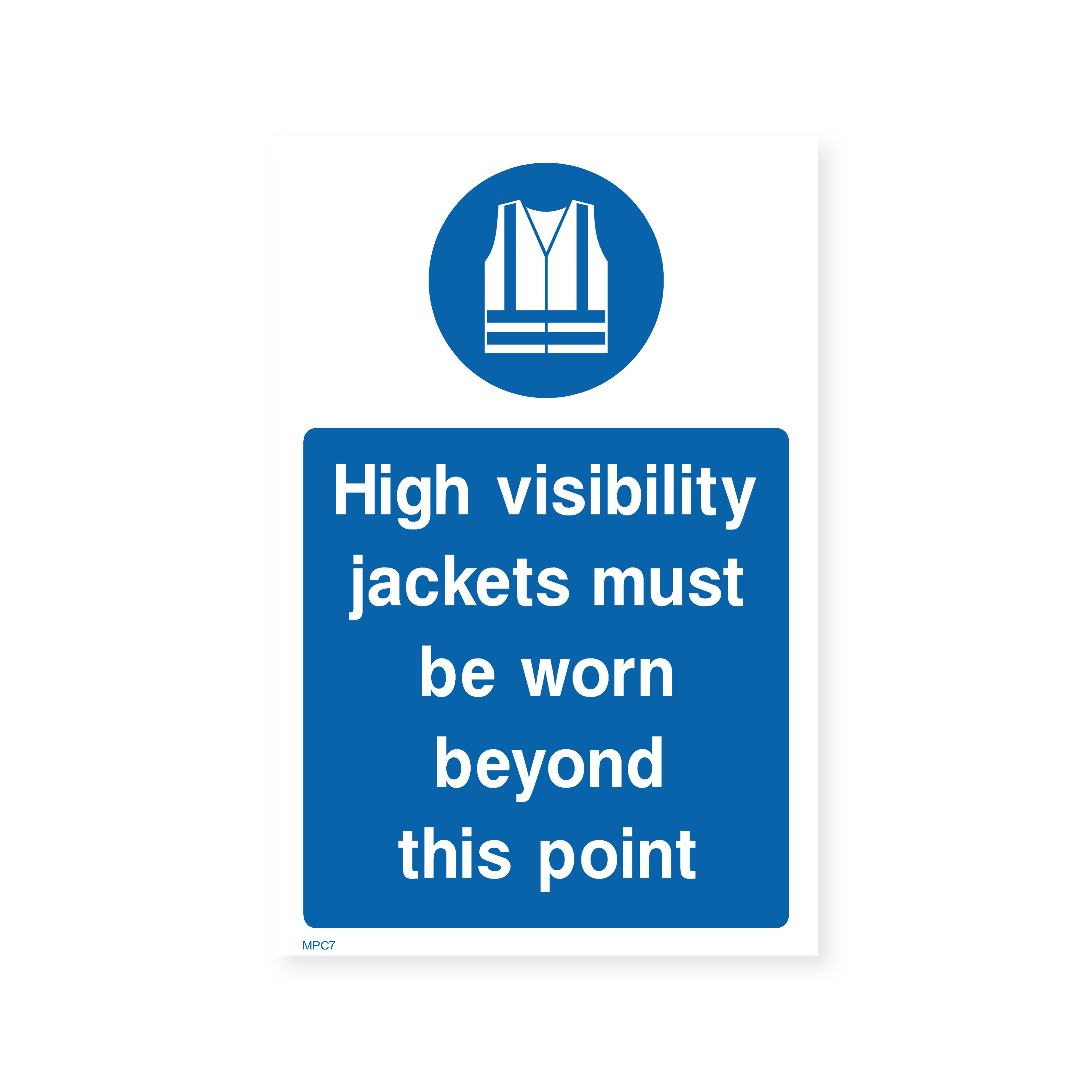 Ensure worker safety in high-risk environments with our "High Visibility Jackets Must Be Worn Beyond This Point" portrait sign. Clearly communicate the mandatory use of high-visibility jackets in designated areas to increase visibility and reduce the risk of accidents. Available in multiple sizes and materials, this sign is an essential safety measure for any workplace where visibility is a concern.