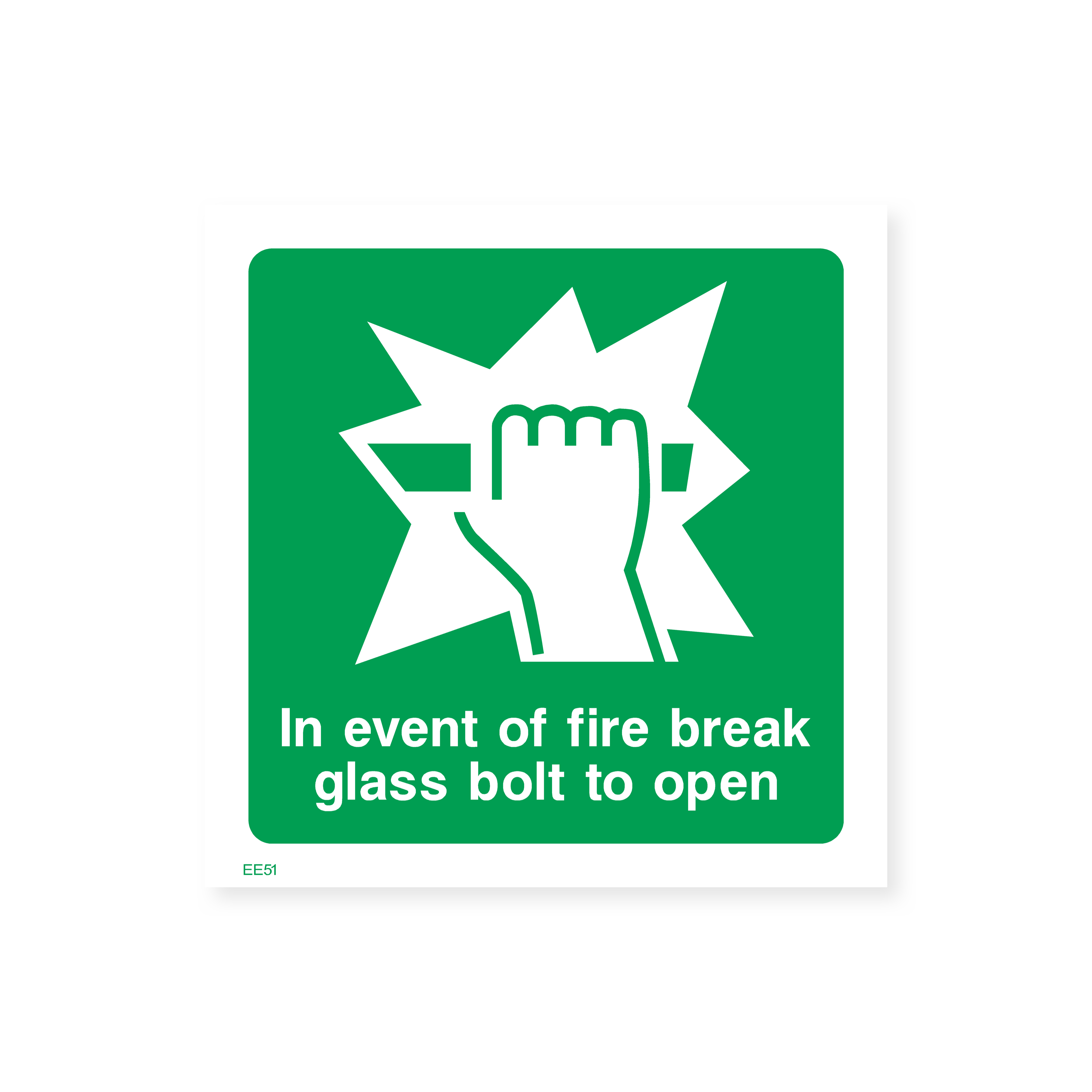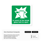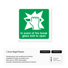 Provide clear instructions during fire emergencies with our "In event of fire - Break glass bolt to open" sign. This sign guides individuals on how to unlock and open the door in case of fire, ensuring a quick and safe evacuation.