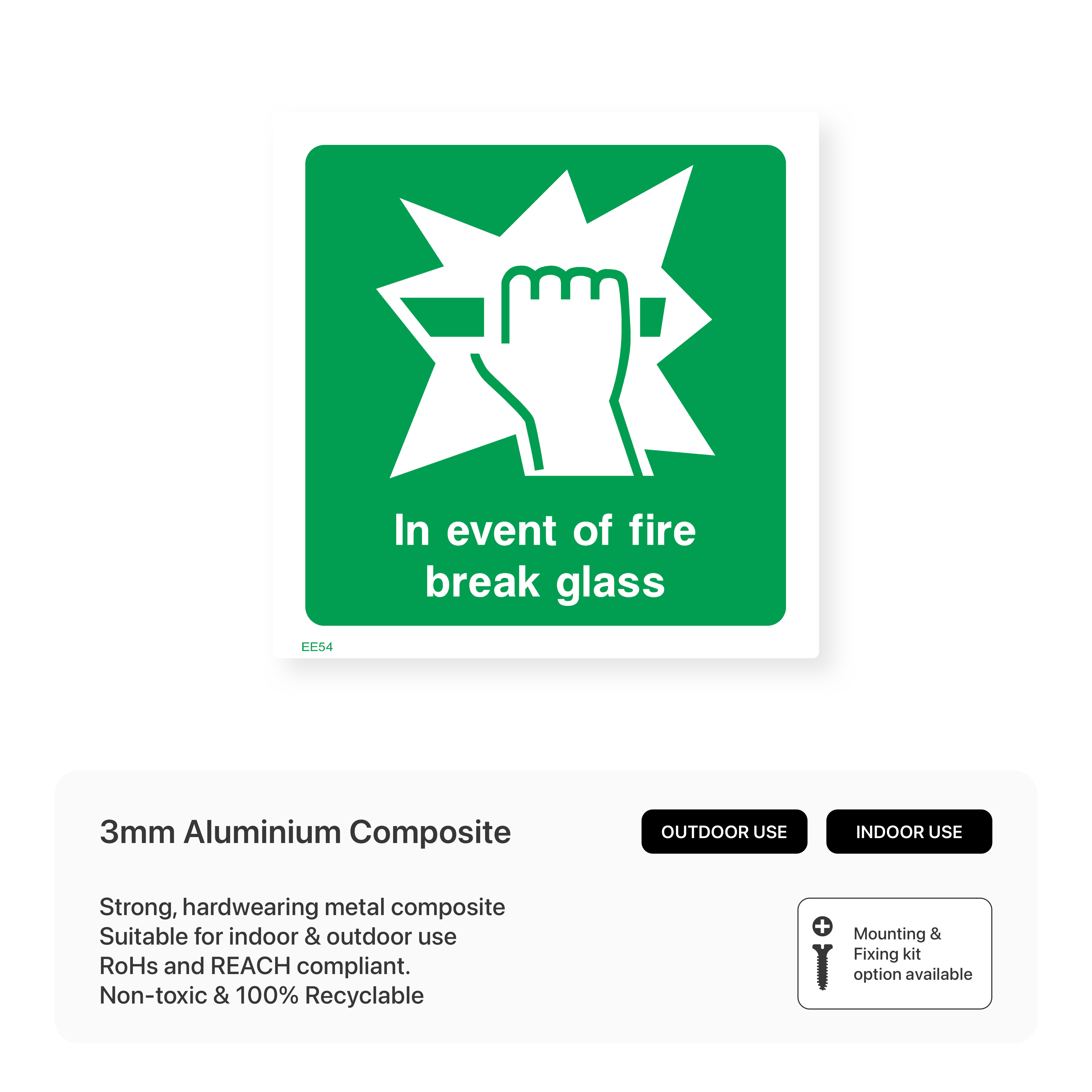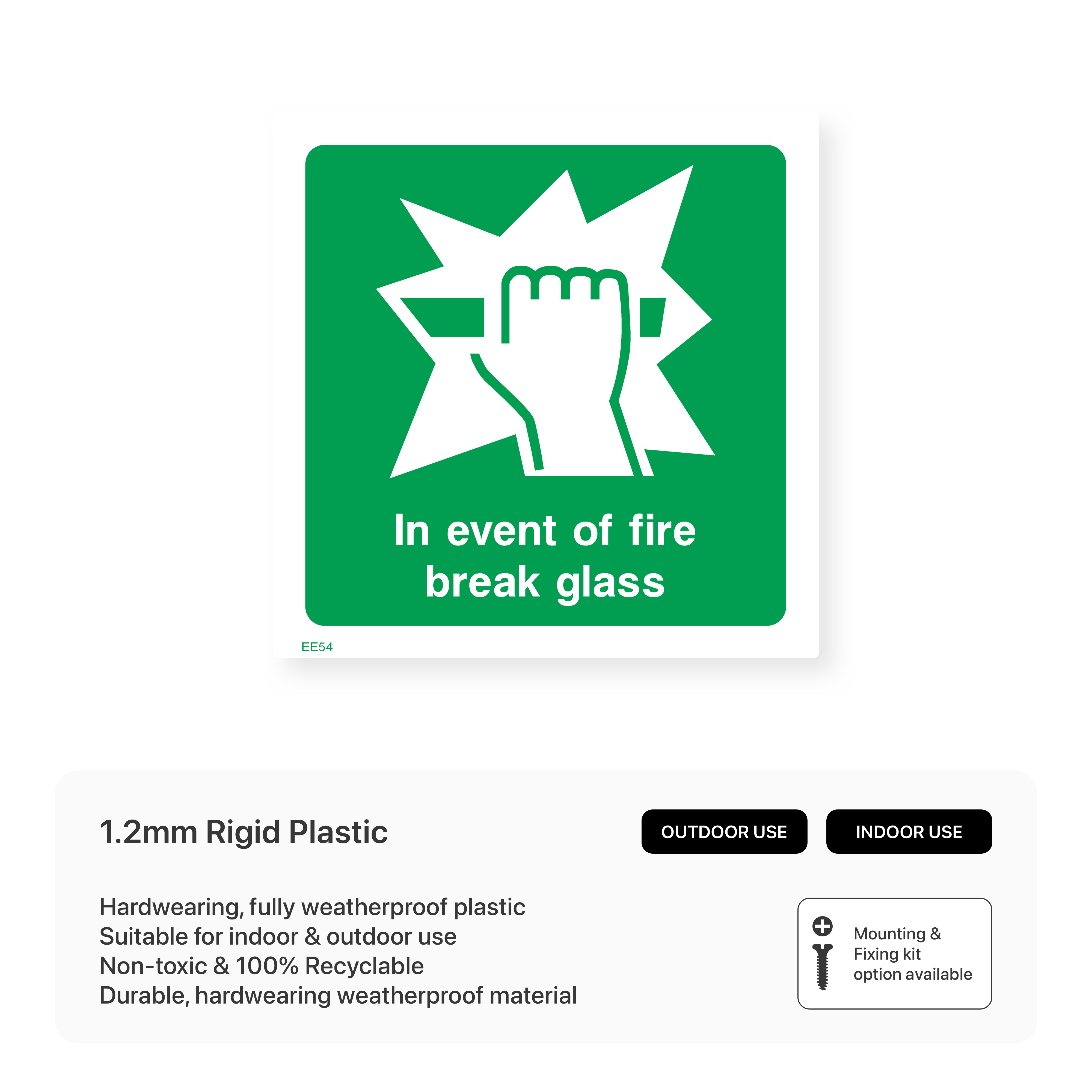 Provide clear instructions during fire emergencies with our "In event of fire - Break glass" sign. This sign indicates that the glass should be broken to access emergency equipment or exits, ensuring a quick and safe evacuation.