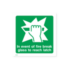 Provide clear instructions during fire emergencies with our "In event of fire - Break glass to reach latch" sign. This sign guides individuals on how to break the glass to access the door latch in case of fire, ensuring a quick and safe evacuation.