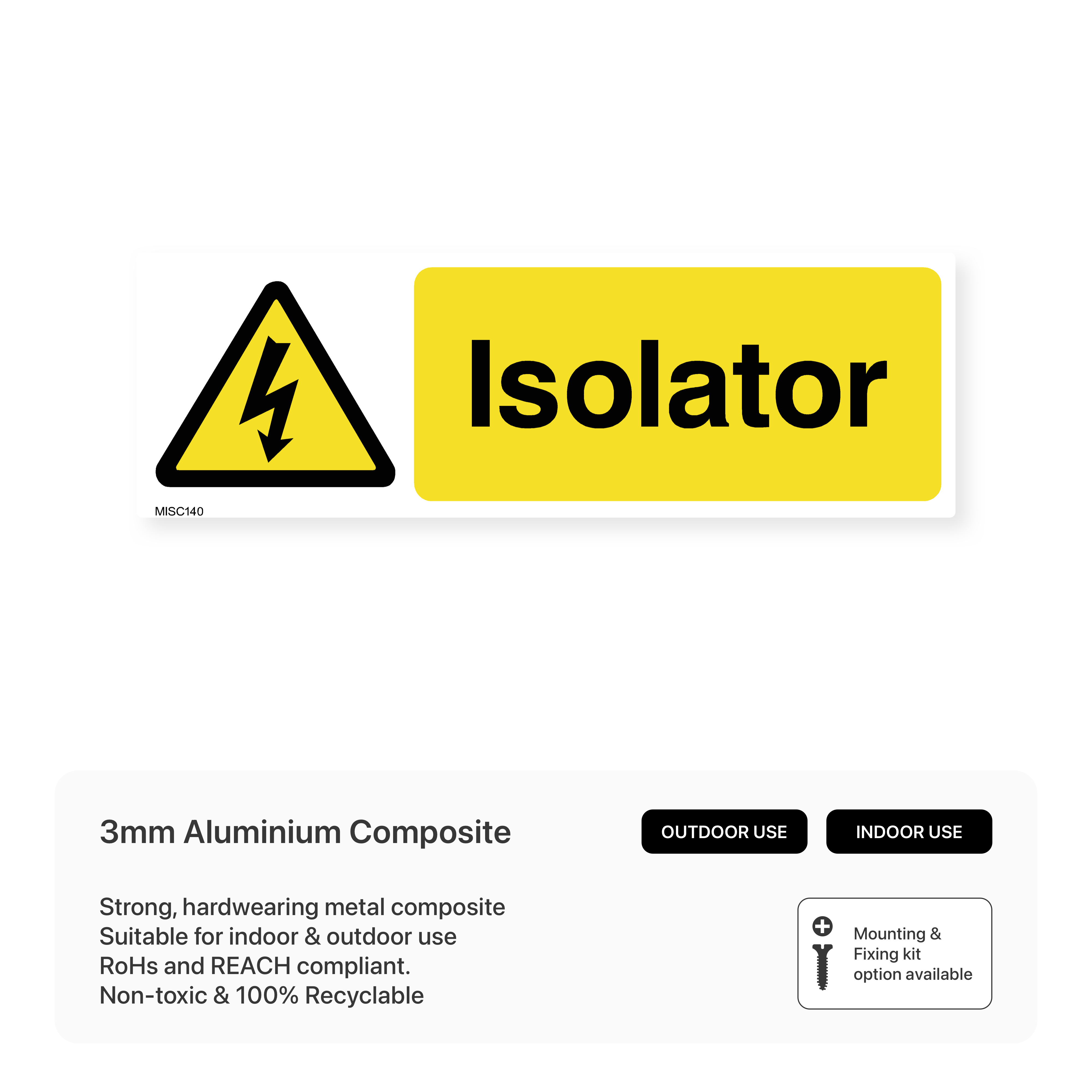 Mark electrical isolators with our clear and durable "Isolator" signs. Ensure safety and quick identification in electrical installations.