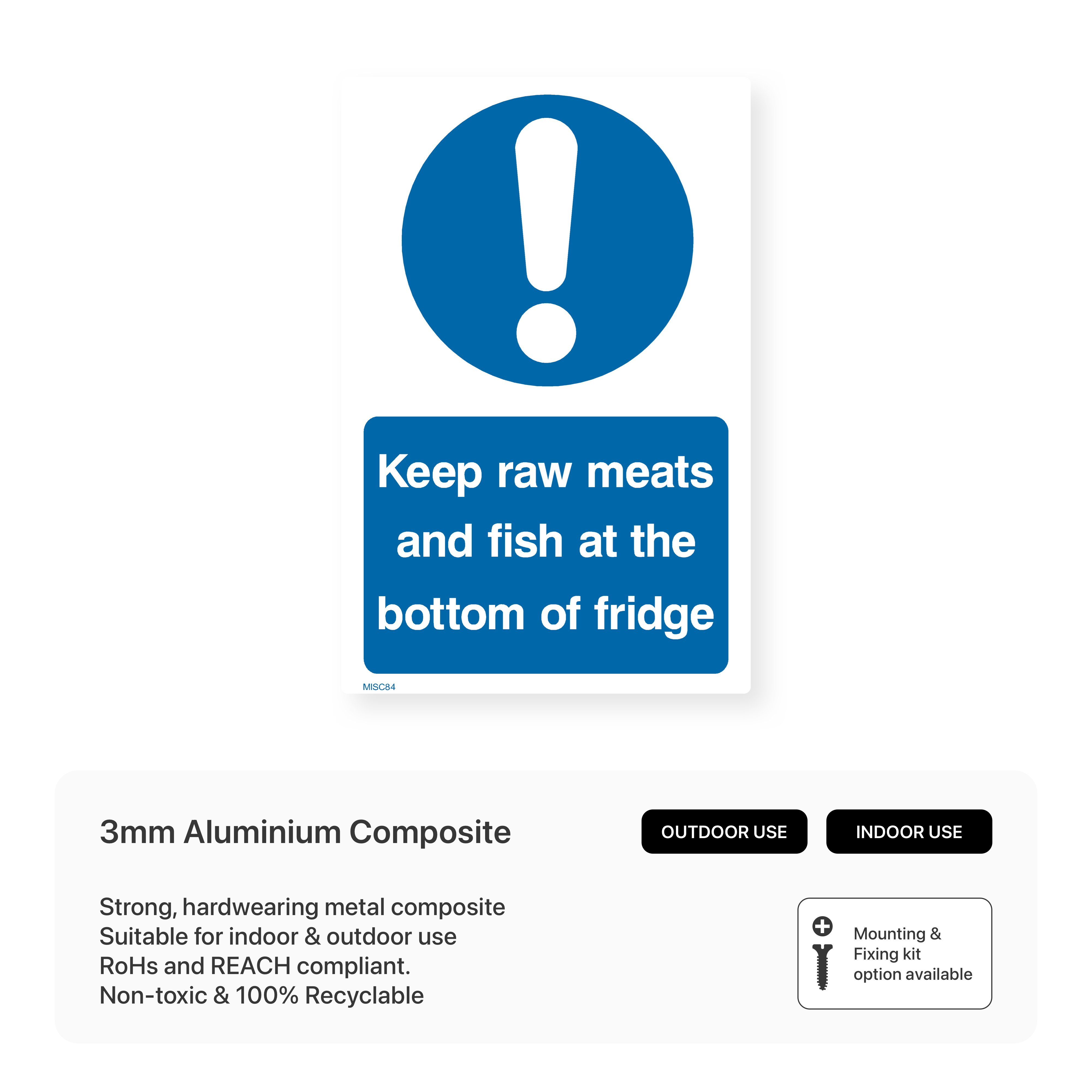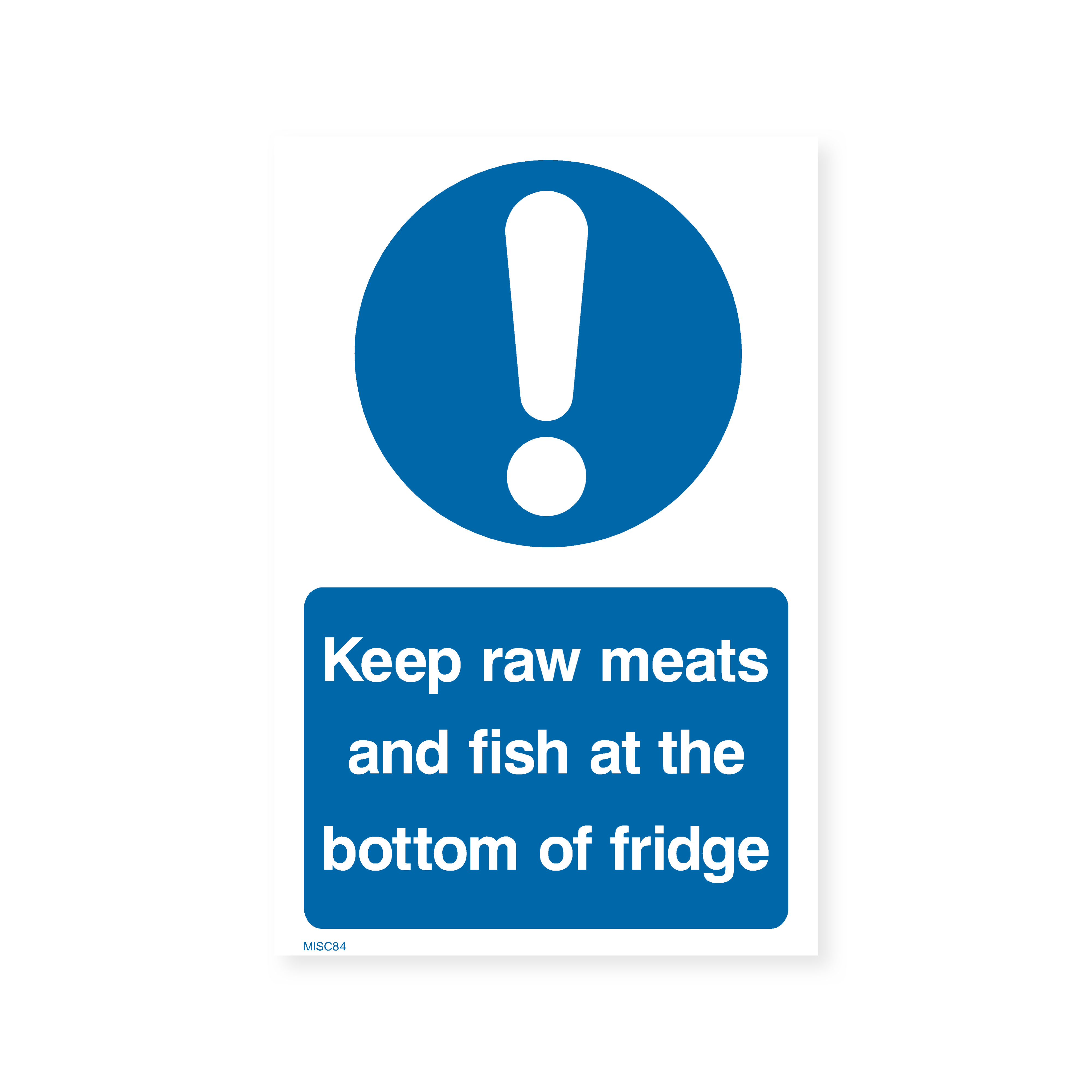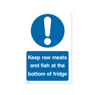 Remind staff of proper food storage practices with our "Keep Raw Meats and Fish at the Bottom of Fridge" signs. Prevent cross-contamination and ensure food safety.