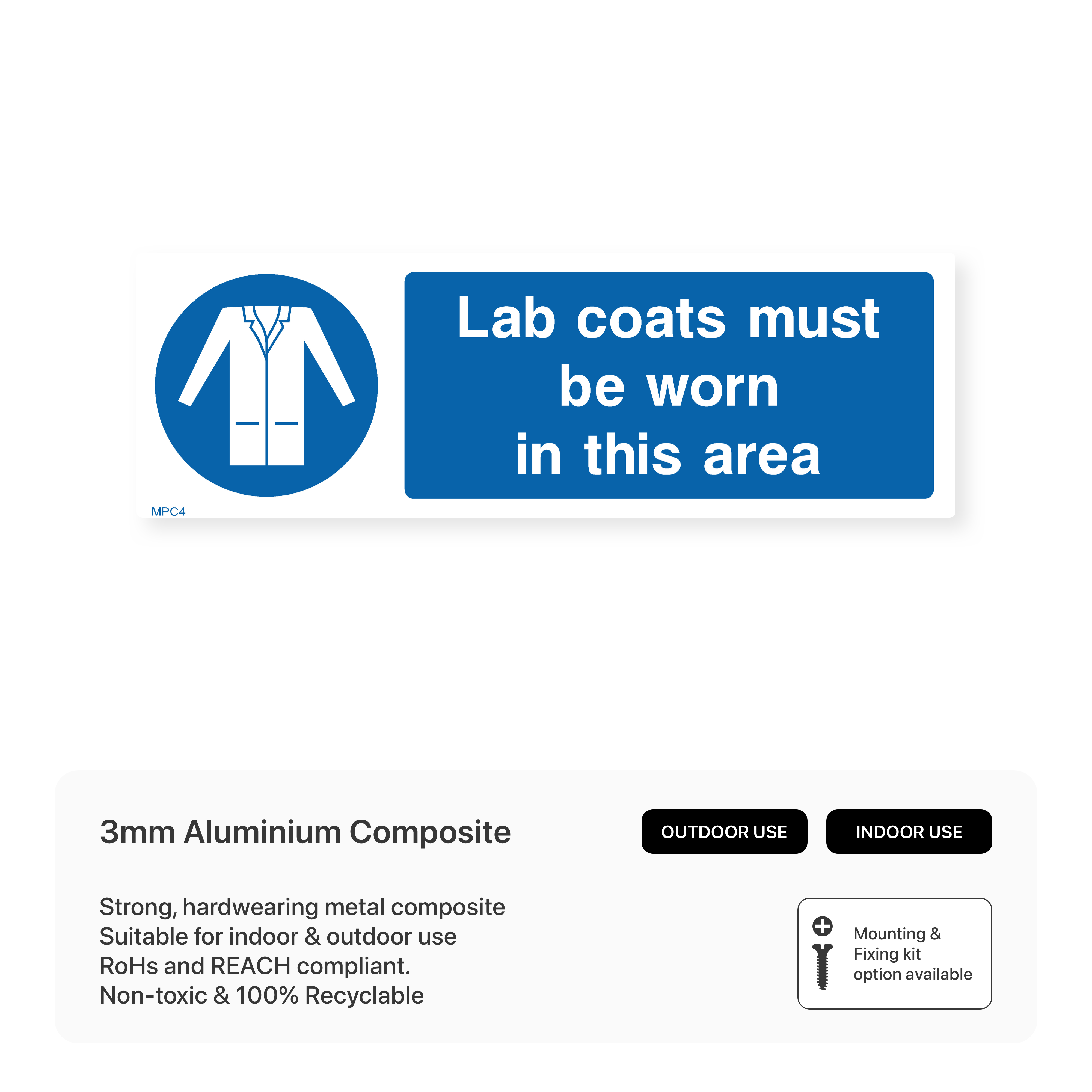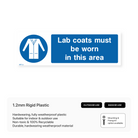 Maintain a hygienic and safe laboratory environment with our "Lab Coats Must Be Worn in This Area" sign. Clearly communicate the mandatory use of lab coats in designated areas to protect against contamination and potential hazards. Choose from various sizes and materials to suit your specific needs and ensure compliance with laboratory safety protocols.