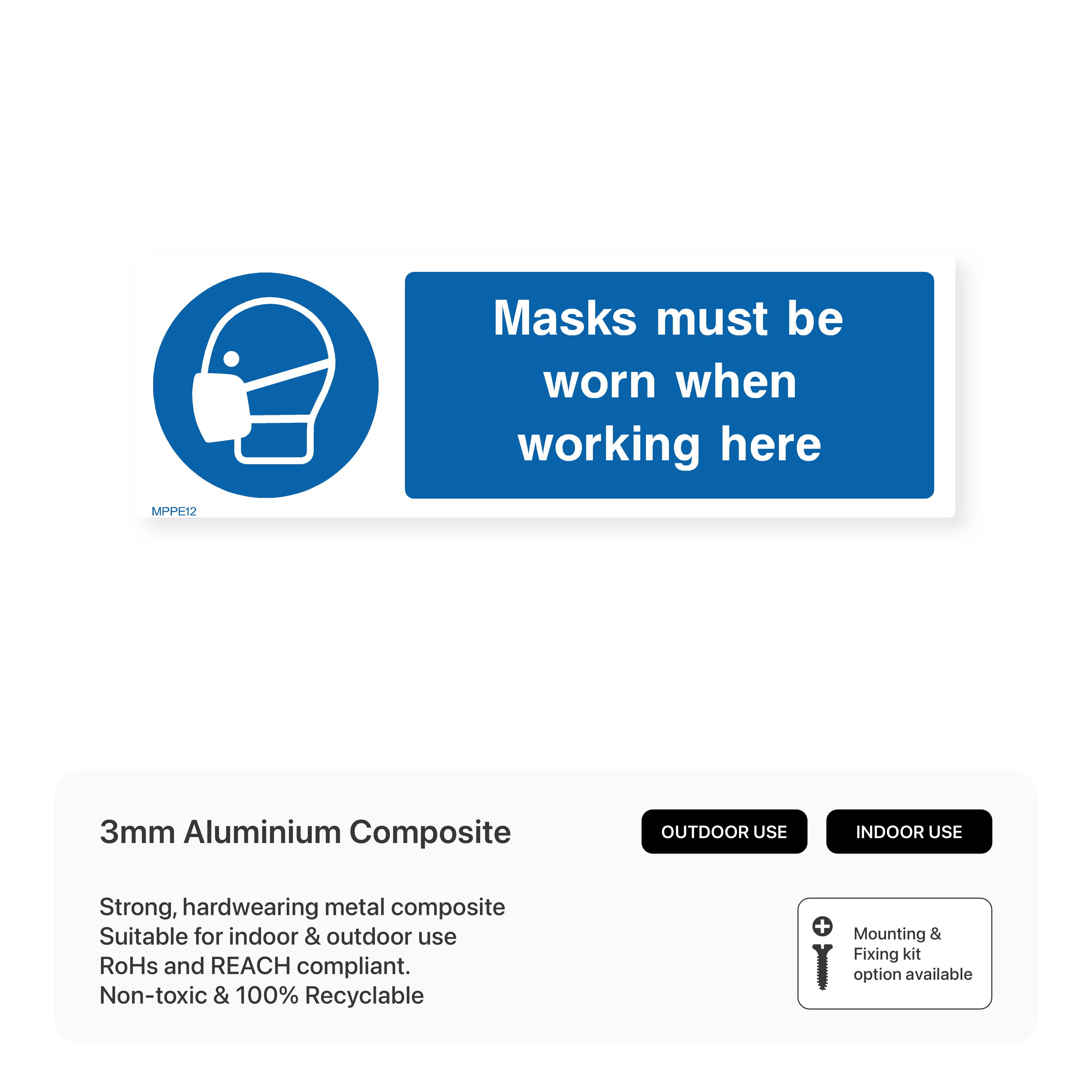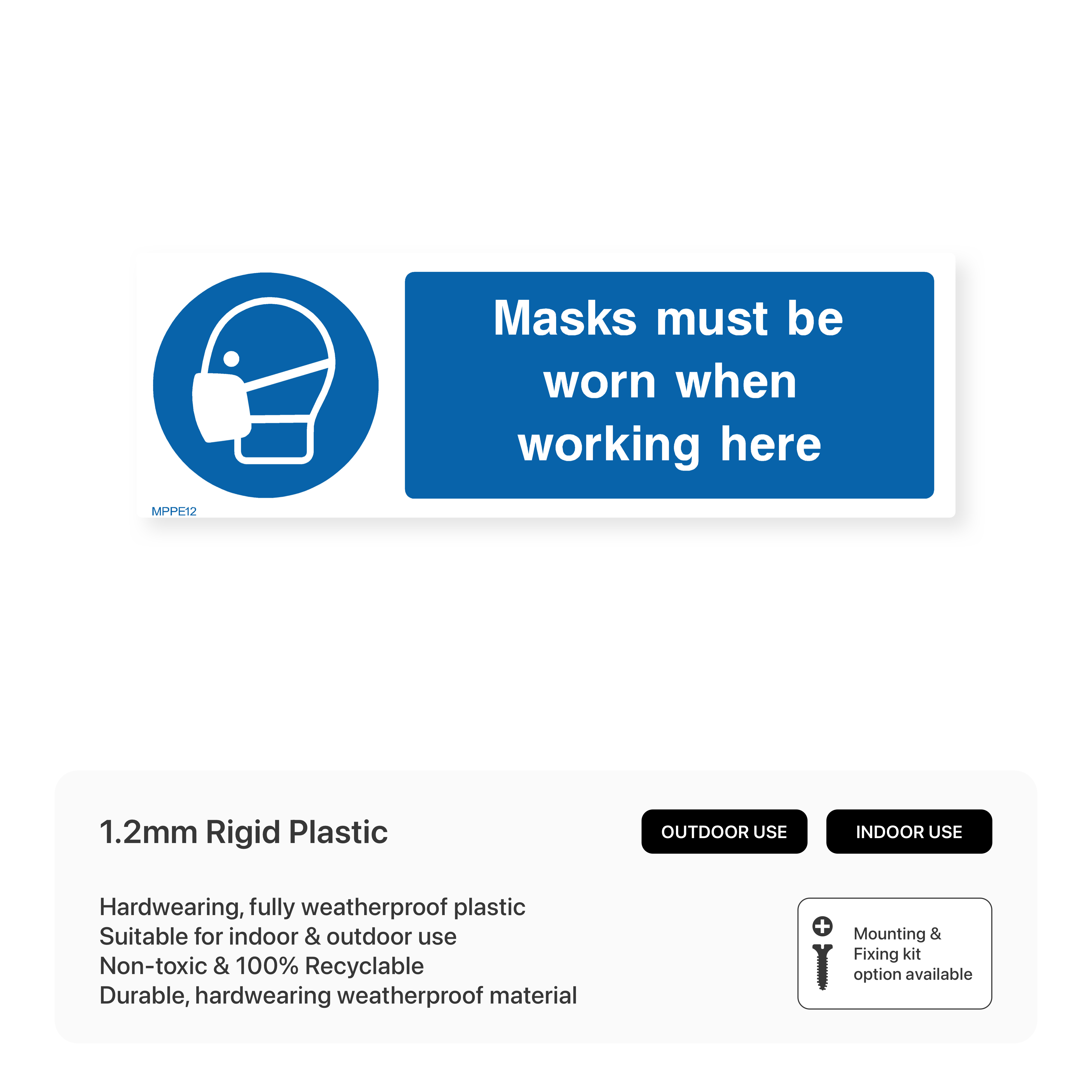 Reinforce workplace safety protocols with our "Masks Must Be Worn When Working Here" sign. This sign clearly communicates the mandatory use of masks in specific work areas to protect against airborne hazards. Ensure a safe and healthy work environment with our durable and compliant safety signage.