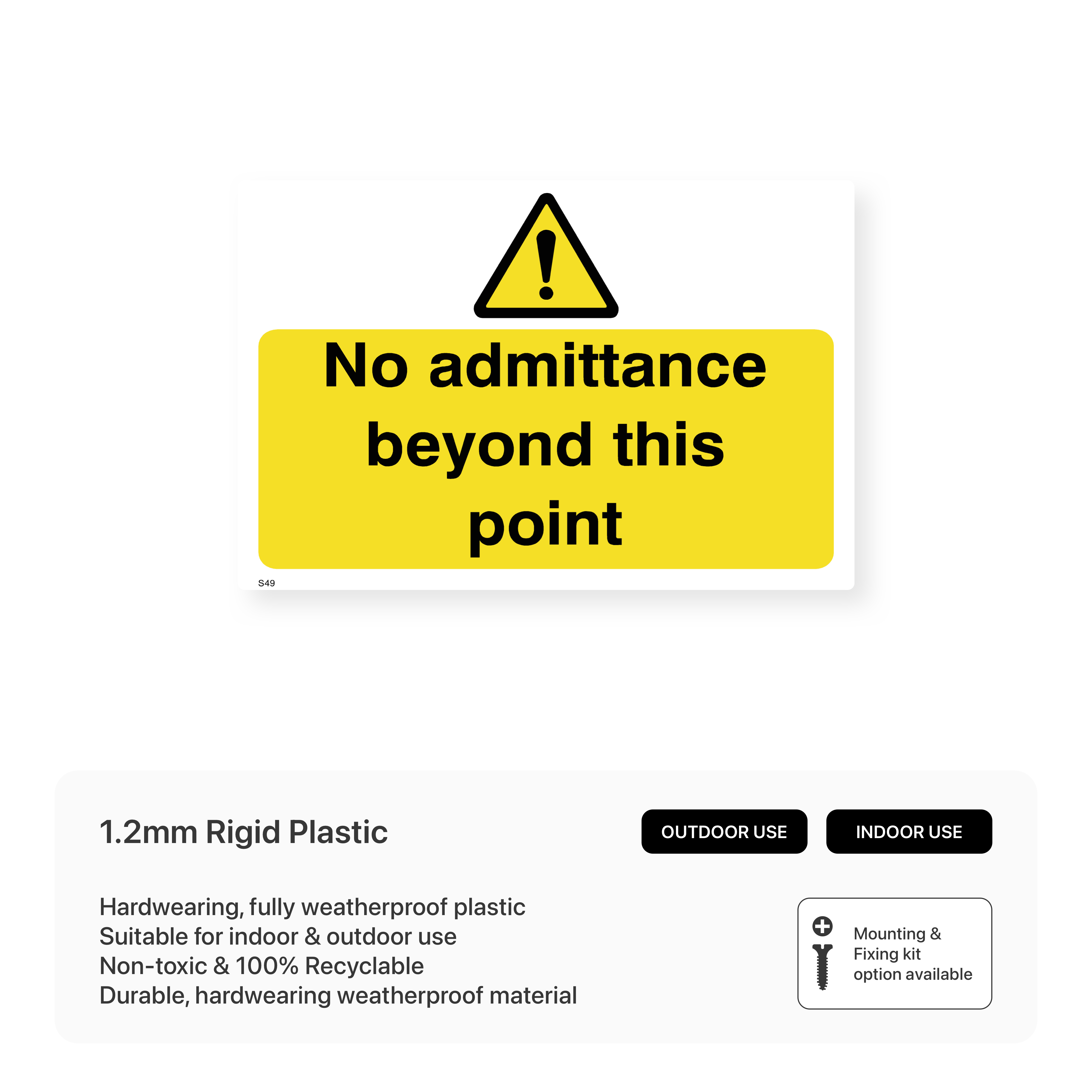Clearly mark restricted areas with this sign, effectively preventing unauthorised access and enhancing security. Choose from a variety of sizes and materials to suit your specific needs.