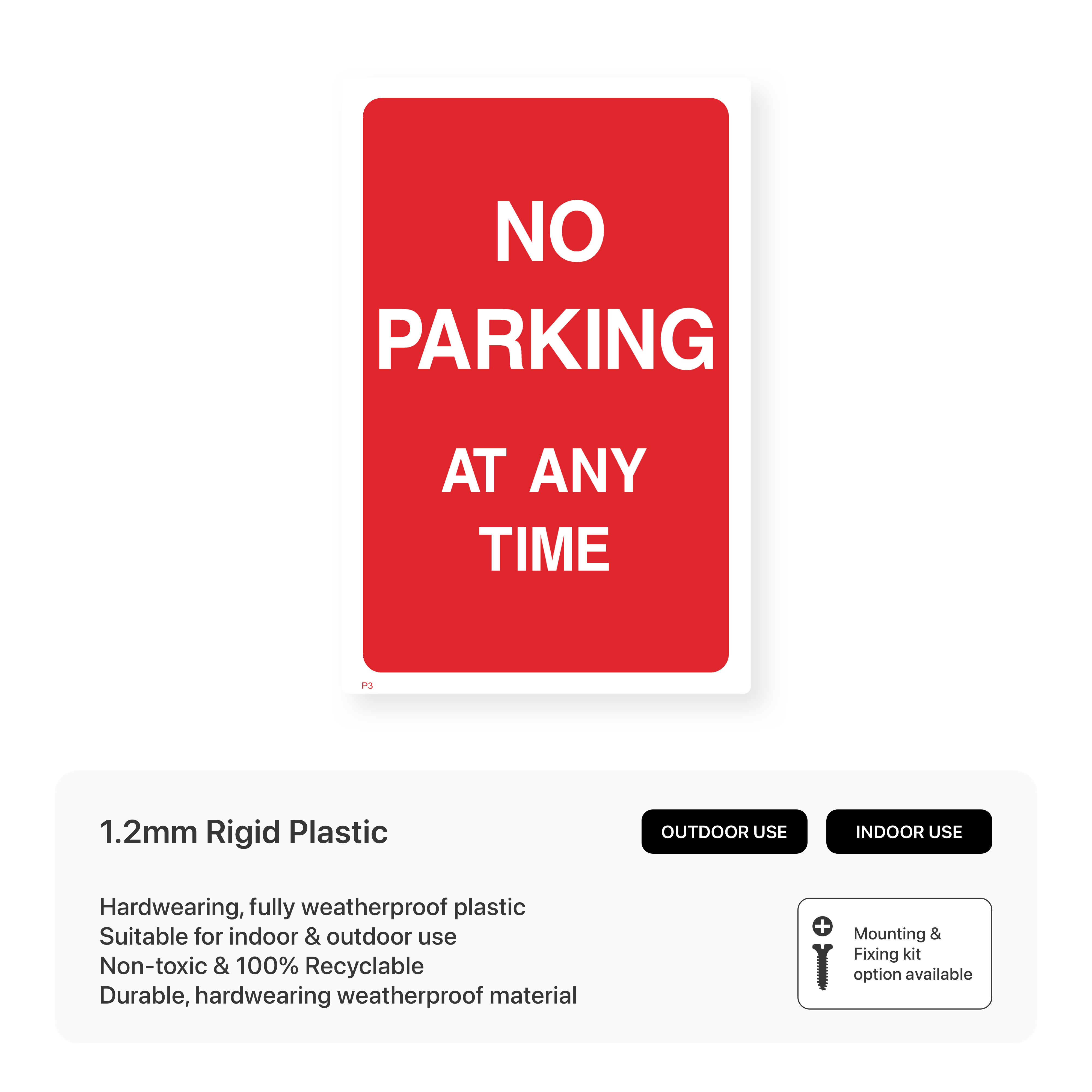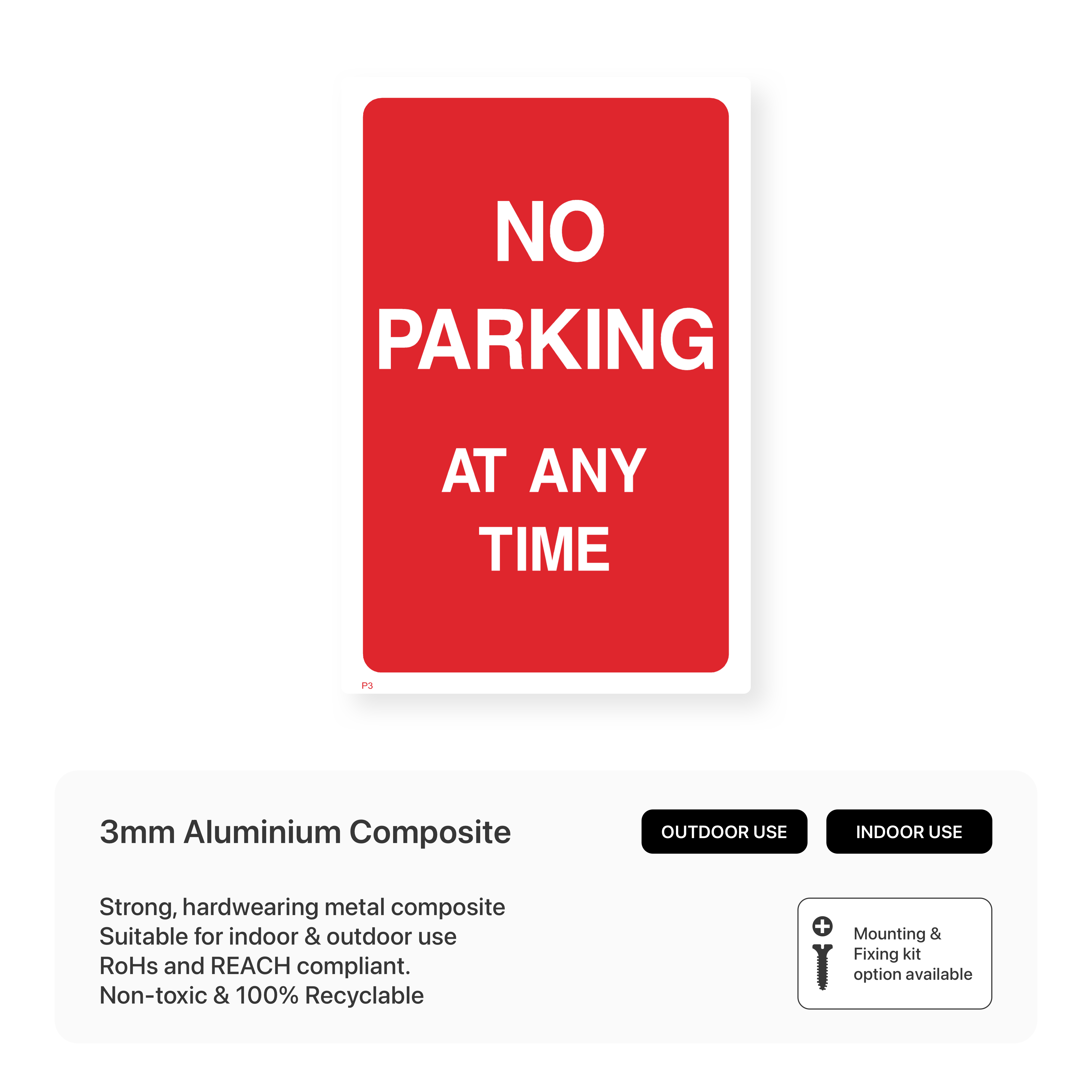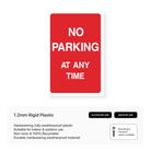 Effectively enforce parking restrictions with our "No Parking At Any Time" sign. Clearly communicate that parking is strictly prohibited in designated areas to maintain order and prevent obstructions. Choose from various sizes and materials to suit your specific needs and ensure compliance.