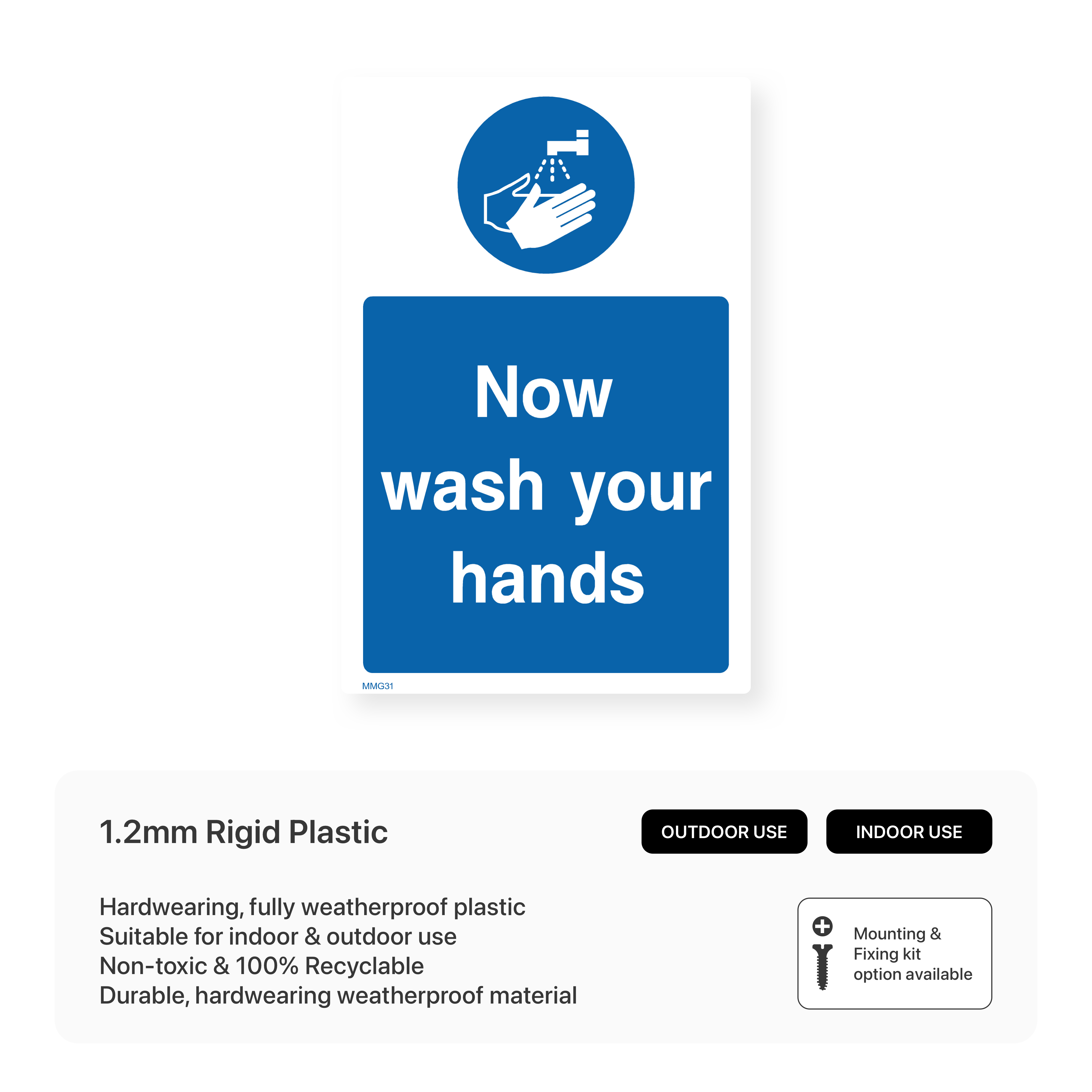 Promote hand hygiene and prevent the spread of germs with our "Now Wash Your Hands" signs. Ideal for restrooms, kitchens, and food handling areas.