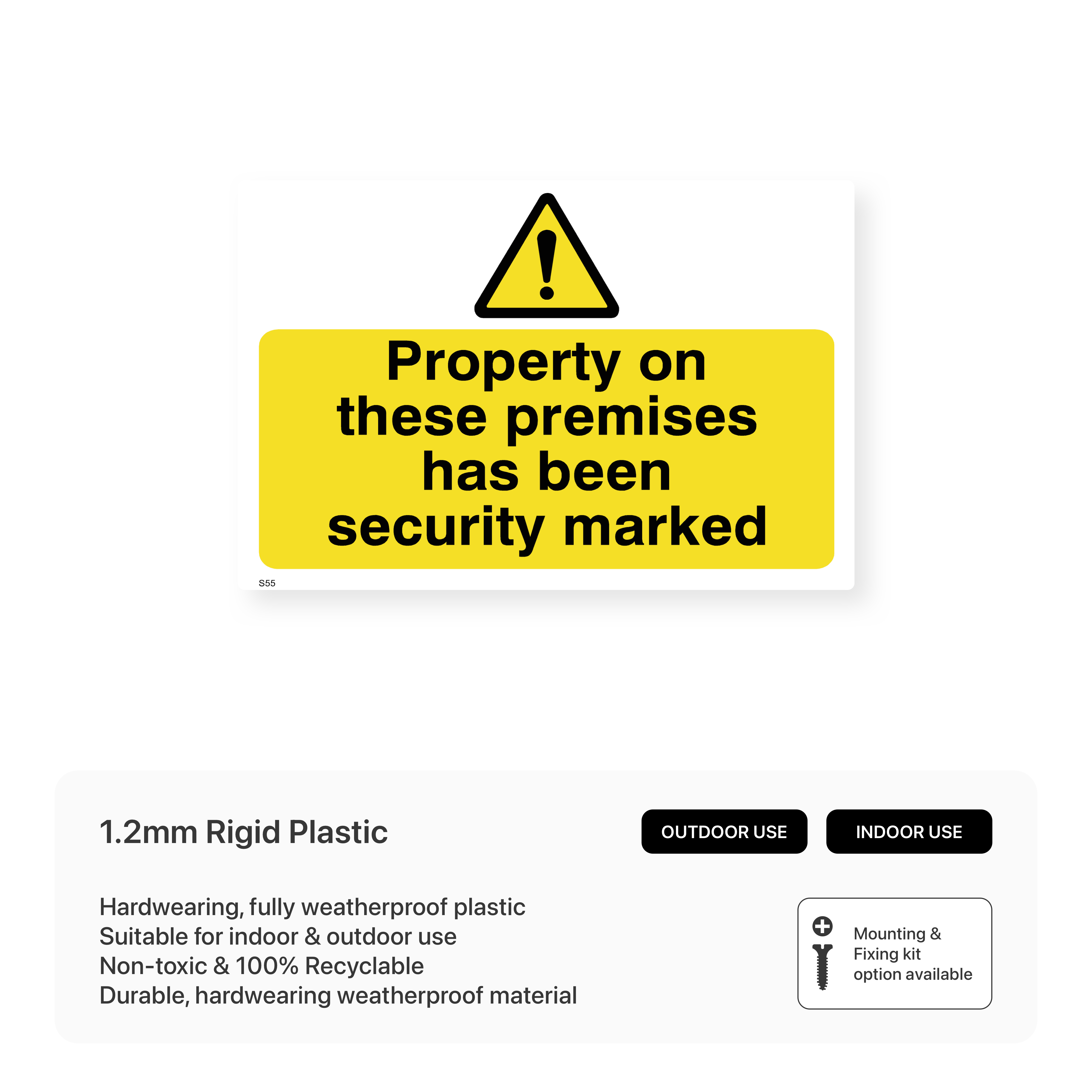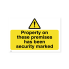 Deter theft and vandalism with this sign, informing potential thieves that property on the premises has been security marked for easy identification.