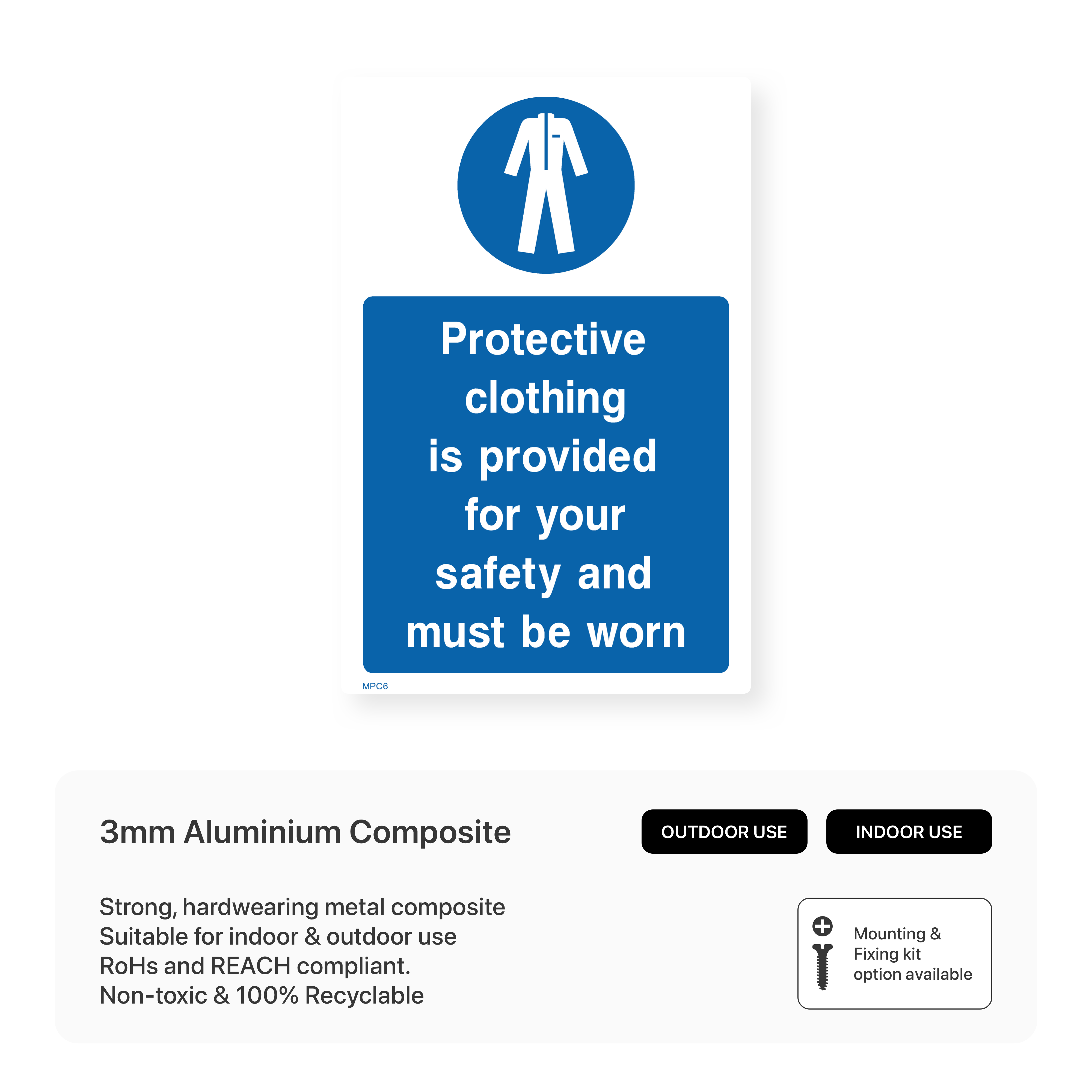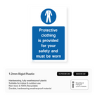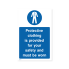 Enhance workplace safety and inform employees of the availability of protective clothing with our "Protective Clothing is Provided for Your Safety and Must Be Worn" portrait sign. Emphasise the importance of PPE and ensure your workforce is aware of the resources available to protect themselves on the job. Choose from various sizes and materials to suit your specific needs.